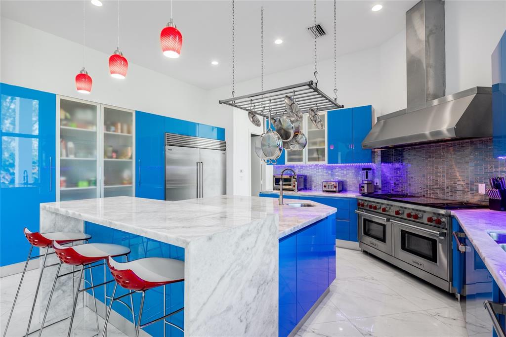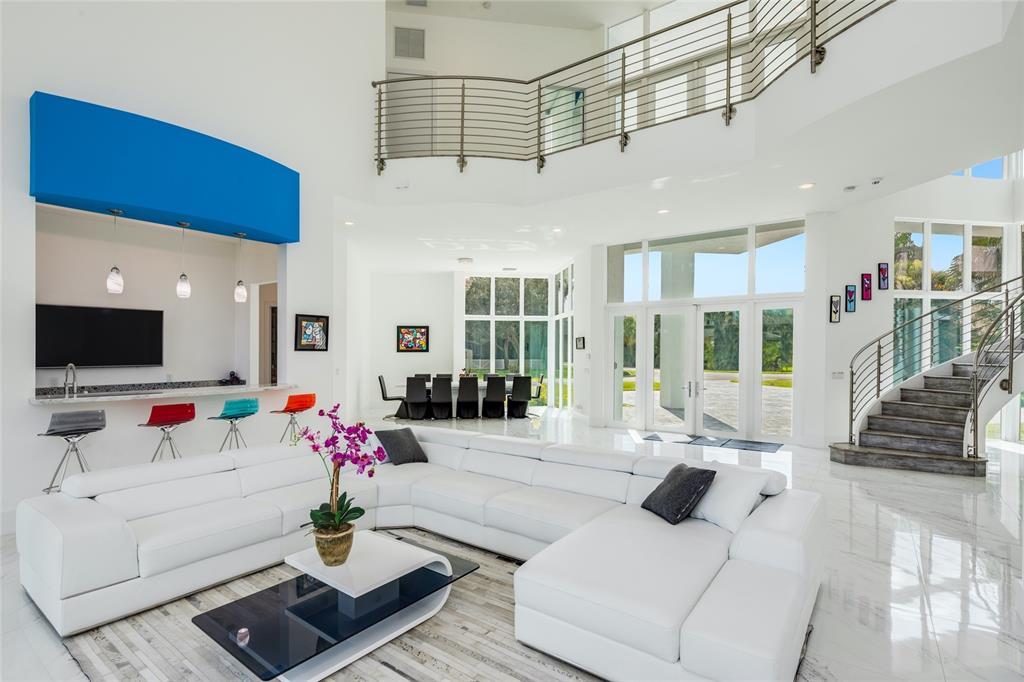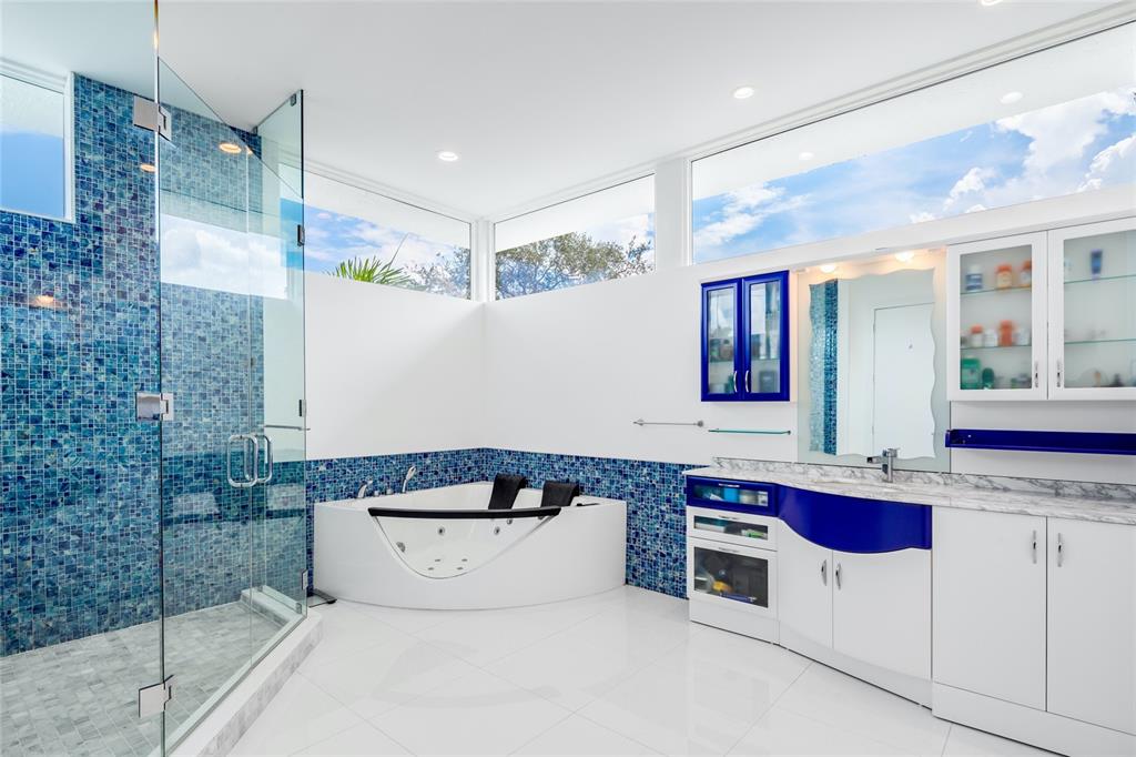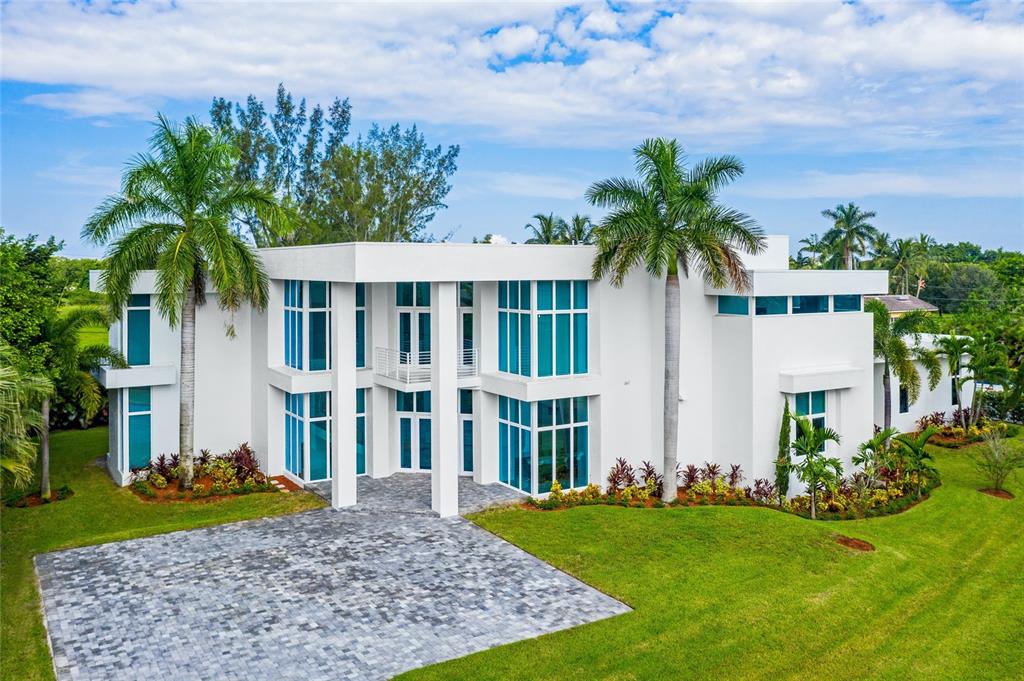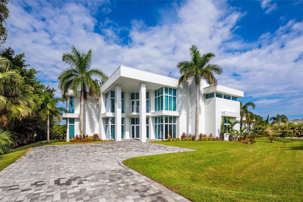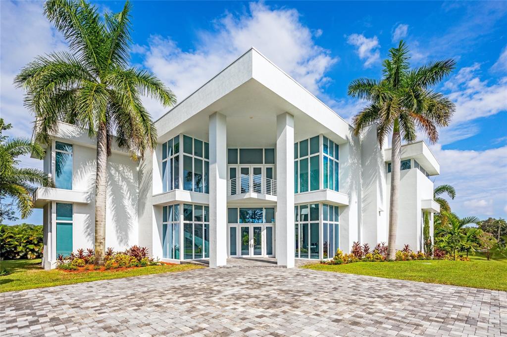 Exquisite modern custom home w contemporary finishes designed by award winning architect Maurice Menasche on builder's acre, Cul de Sac location. 5 Bedrooms (2) down, (3) up including Master, plus spacious downstairs media & theater rooms, huge covered lanai's & balconies, interior elevator. Soaring volume ceilings accent generous living spaces featuring large format porcelain tile, wide spiral staircase, low E impact glass windows, stunning wet bar, pro caliber gas kitchen w island, Wolf/Subzero appliances Italian Aran Cucine cabinetry & Calcite counters. Lavish upstairs Master Suite & bath w walk-in closets, upstairs bedrooms w en-suite baths. 6 AC's, spray foam Icynene insulation, tankless gas water heaters, California closets, Hunter Douglas window coverings. Truly unique modern home.
