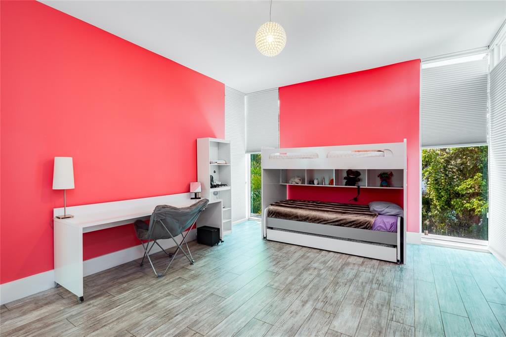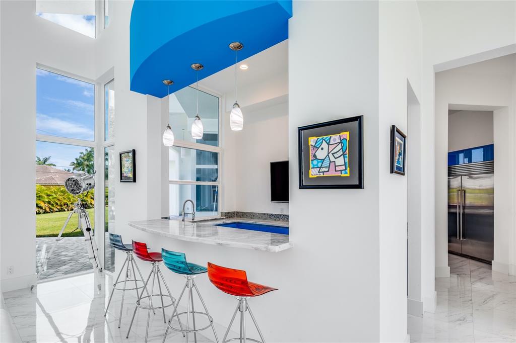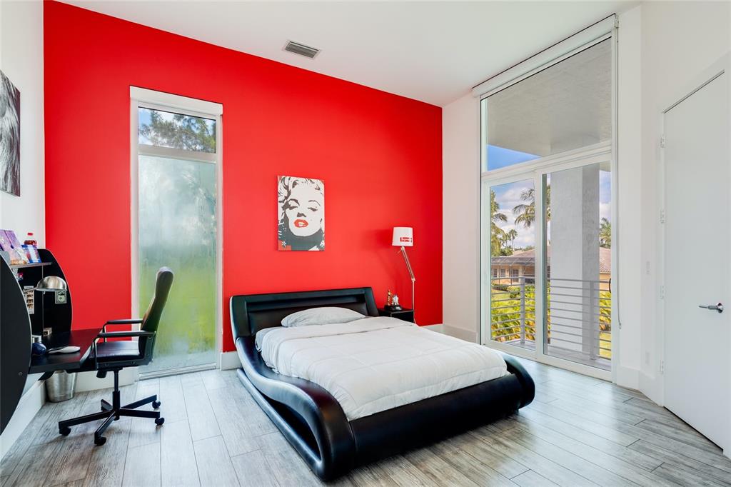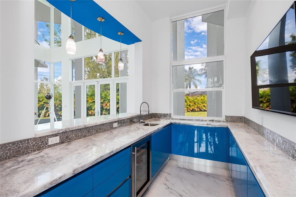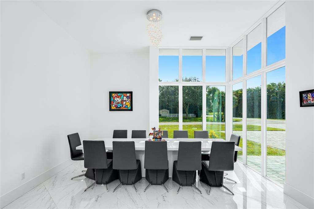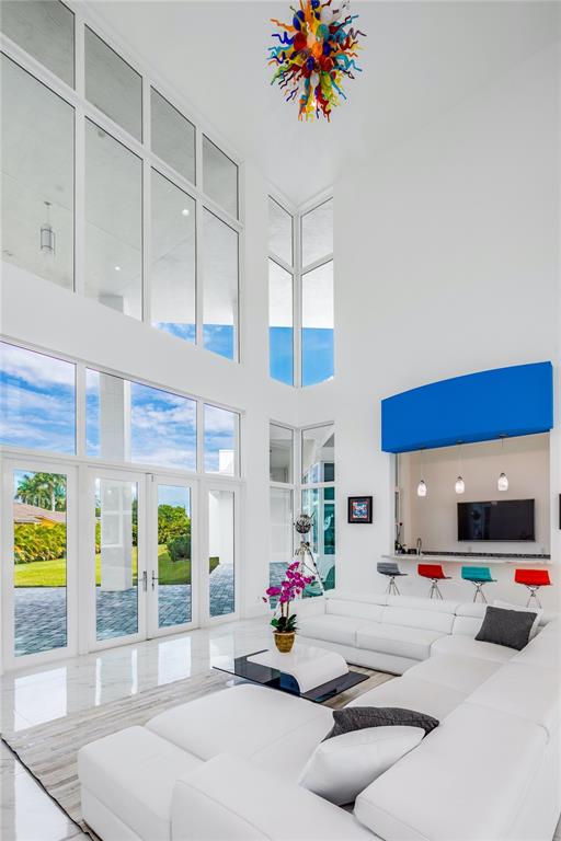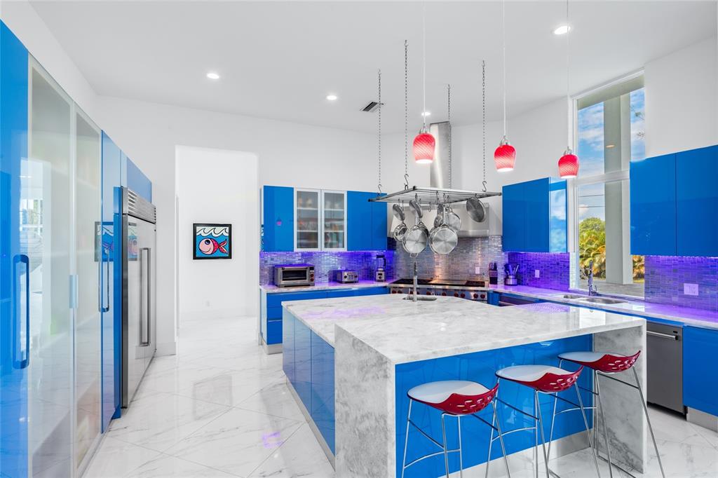 Exquisite modern custom home w contemporary finishes designed by award winning architect Maurice Menasche on builder's acre, Cul de Sac location. 5 Bedrooms (2) down, (3) up including Master, plus spacious downstairs media & theater rooms, huge covered lanai's & balconies, interior elevator. Soaring volume ceilings accent generous living spaces featuring large format porcelain tile, wide spiral staircase, low E impact glass windows, stunning wet bar, pro caliber gas kitchen w island, Wolf/Subzero appliances Italian Aran Cucine cabinetry & Calcite counters. Lavish upstairs Master Suite & bath w walk-in closets, upstairs bedrooms w en-suite baths. 6 AC's, spray foam Icynene insulation, tankless gas water heaters, California closets, Hunter Douglas window coverings. Truly unique modern home.