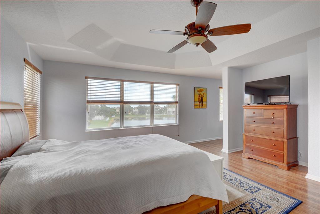 Windows, natural light and high ceilings in this updated 5 Bedroom, 4 Bath home on the lake. Open living/kitchen areas look out onto the lake. 2 new high efficiency A/C units. Double doors lead into a true master suite with 6 large windows facing the lake, and 2 separate walk in closets each measuring 8 x 7ft. Master bedroom has separate area good for office. His and her bathrooms as well as a jetted tub and new frameless shower with two entries. Updated kitchen with granite and new appliances (Samsung Refrigerator, new dishwasher and microwave). Bedrms 2 & 3 have walk in closets. New high efficiency GE hot H2O heater. 2 car garage with extra parking for 4 cars in driveway. New sprinkler pump. HOA is $145 per month. Walk one block to gym, pool, tennis courts and basketball courts