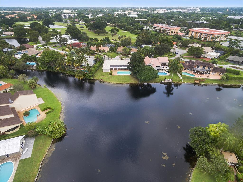 Home located in Jacaranda development on the water in Plantation, FL. Large open conceptual floorplan with four spacious bedrooms, and 3 large bathrooms with step down master suite tub and shower. Home includes formal dining and living rooms, boasts large walk-in closets, laundry room with working utility sink, cabinet storage and working surface countertops, covered patios and long private lap pool. Kitchen pass-thru outside counters and stainless appliances, both kitchen and family rooms have automatic blinds overlooking the pool, patio, lake and lushly landscaped backyard. Two car garage with circular driveway. Listed below appraised value. One of the best views in Plantation. Come make it your own