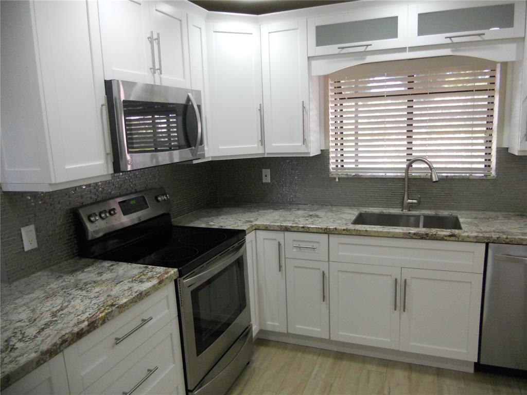 Rarely available WOODGATE corner Townhouse. Completely remodeled. Nothing to do in this home. Porcelain wood look tile and newer laminate in all bedrooms. New White Shaker Kitchen with Stainless appliances & plenty of storage. Plantation shutters complete the living room and dining room. Vaulted ceilings. All bedrooms upstairs. Double Master Closets for extra storage. Master bath has a separate dressing area and a shower. 2nd bath has a tub/shower combination. Half bath on the main floor. Large screened in patio to entertain and BBQ! This corner lot is surrounded by greenery, shrubs and trees. You will be amazed at the yard space surrounding this unit. Excellent Weston and Davie Schools. Woodgate amenities include pool, tennis & playground. Close to I75 and 595. Call Today!