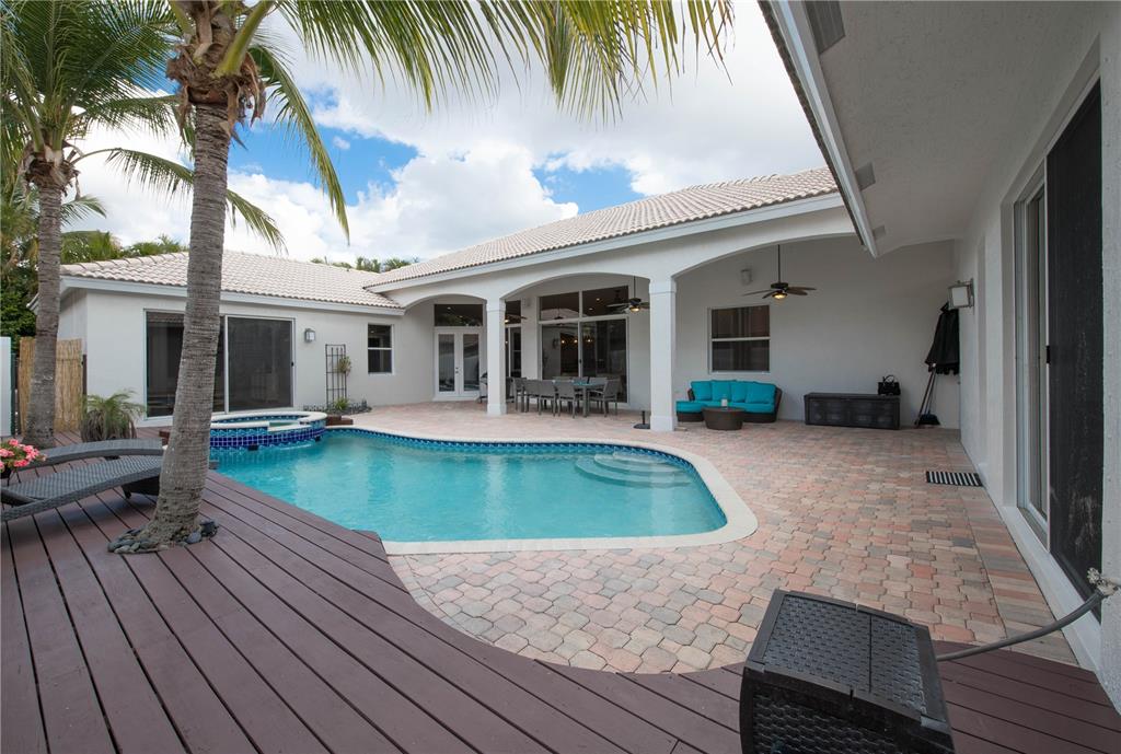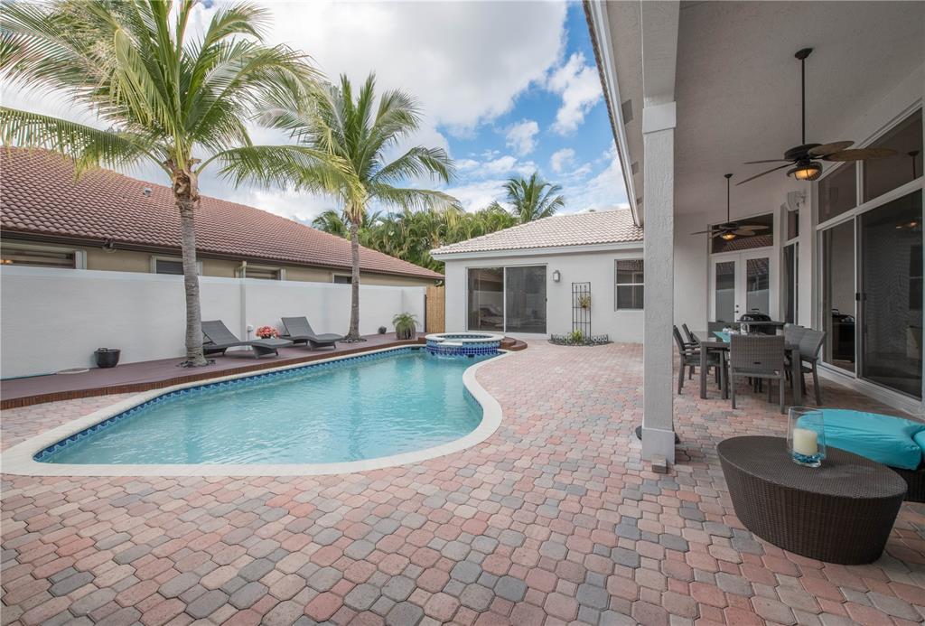 Stunning modern one-story courtyard house with 3 bedrooms and 2.5 baths in the main house and a guest house with 1bed/1bath. Beautiful upgraded kitchen and bathrooms, neutral colors, tile in the main areas and laminate wood floors in all the bedrooms, new water heater, freshly painted inside and outside. Gorgeous patio with pool/ Jacuzzi and extra privacy, excellent for entertaining.