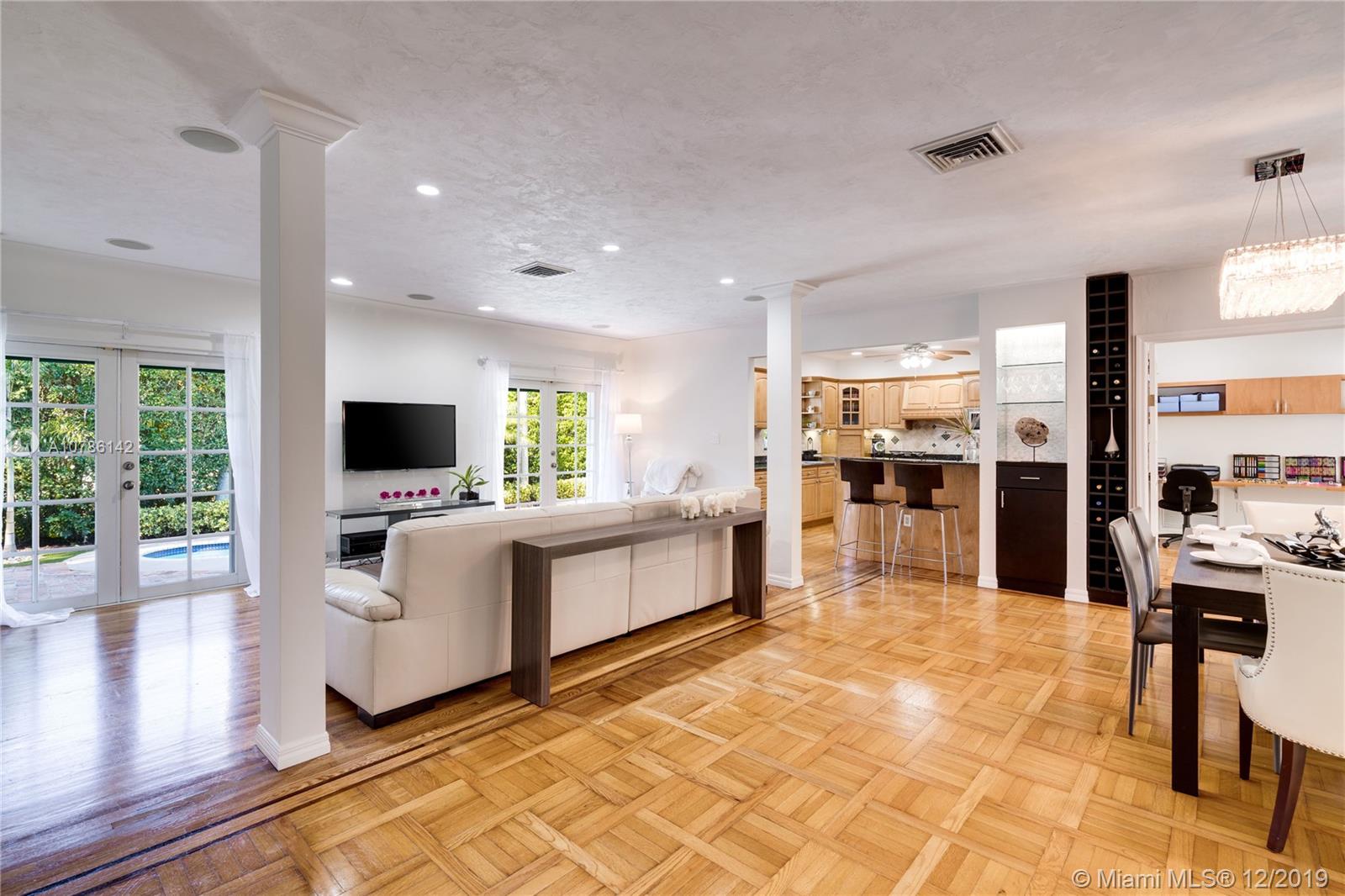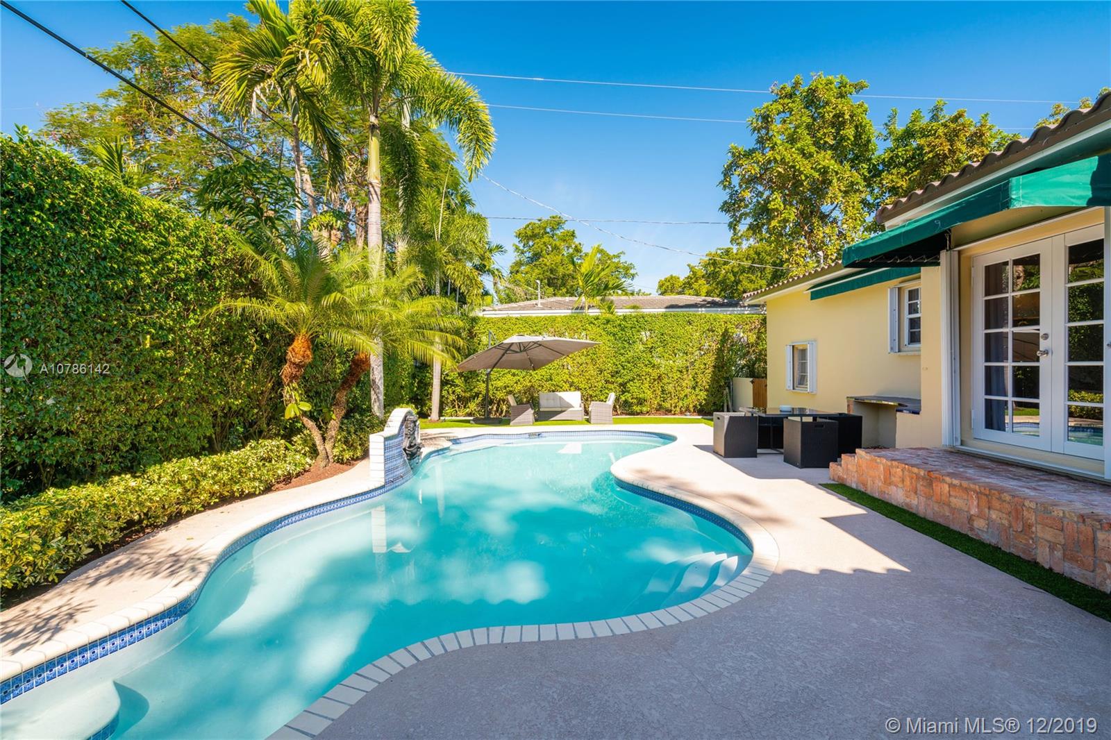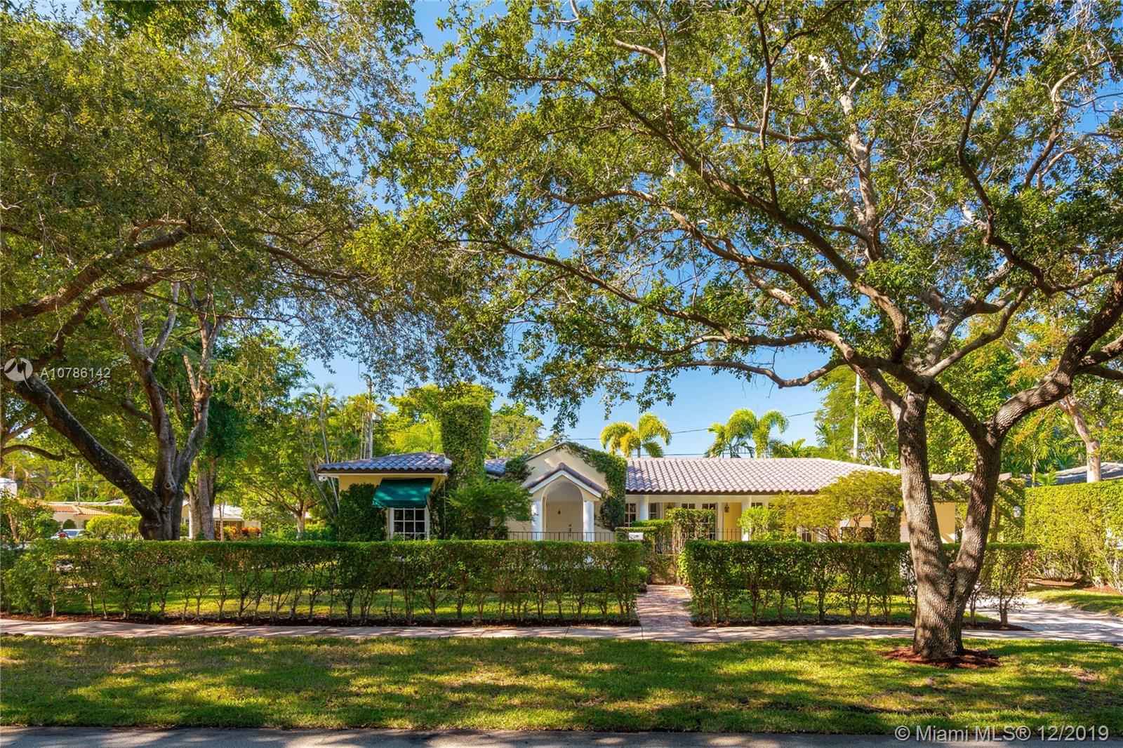South Gables charmer nestled on a 10,000 SF corner lot on a lovely street graced with mature trees. Walk through the captivating courtyard entry into a spacious open floor plan with 3 bedrooms, 2 1/2 baths and an extra room for an office or children’s play area. Sun filters through the French doors of the living room, dining room and large master bedroom with views of the glistening free form pool and private tropical gardens. Oak floors, outdoor kitchen, 1 car garage and new roof!