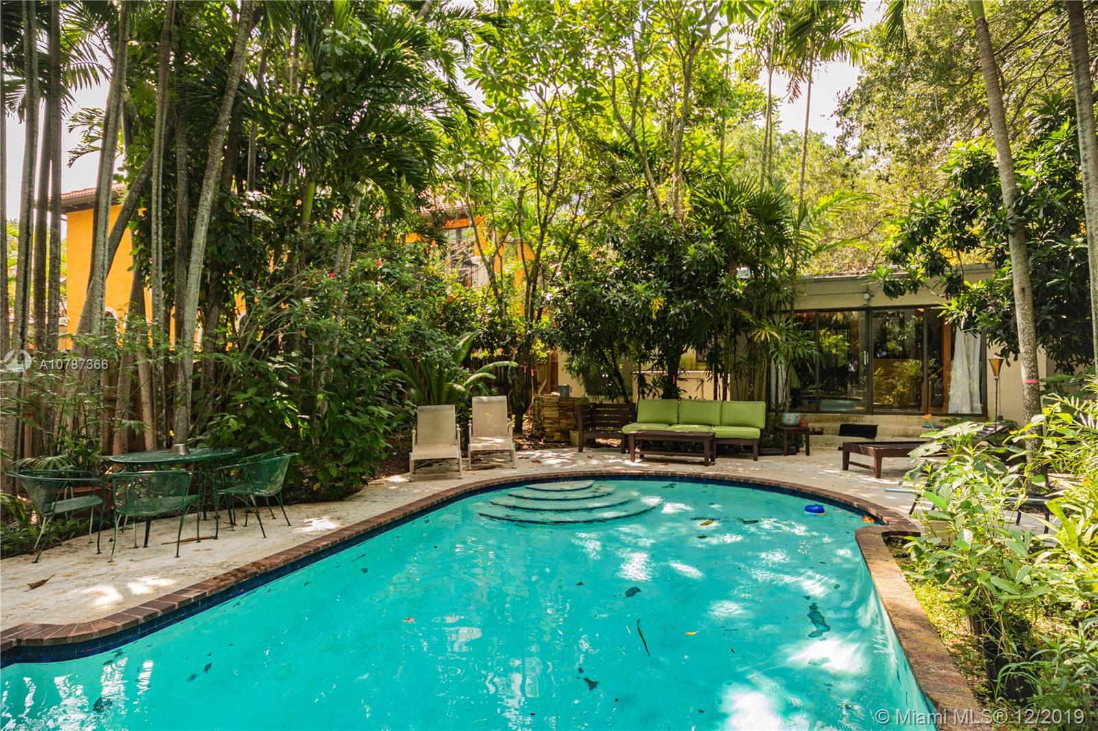 Fantastic location in Coconut Grove, in desirable cul-de-sac, quiet street. This is a charming, well distributed house, with room for expansion. It has a big, lush, tropical garden with a beautiful swimming pool.