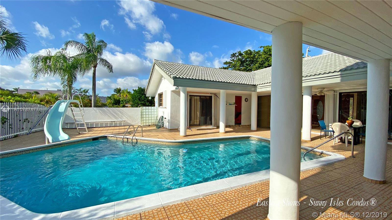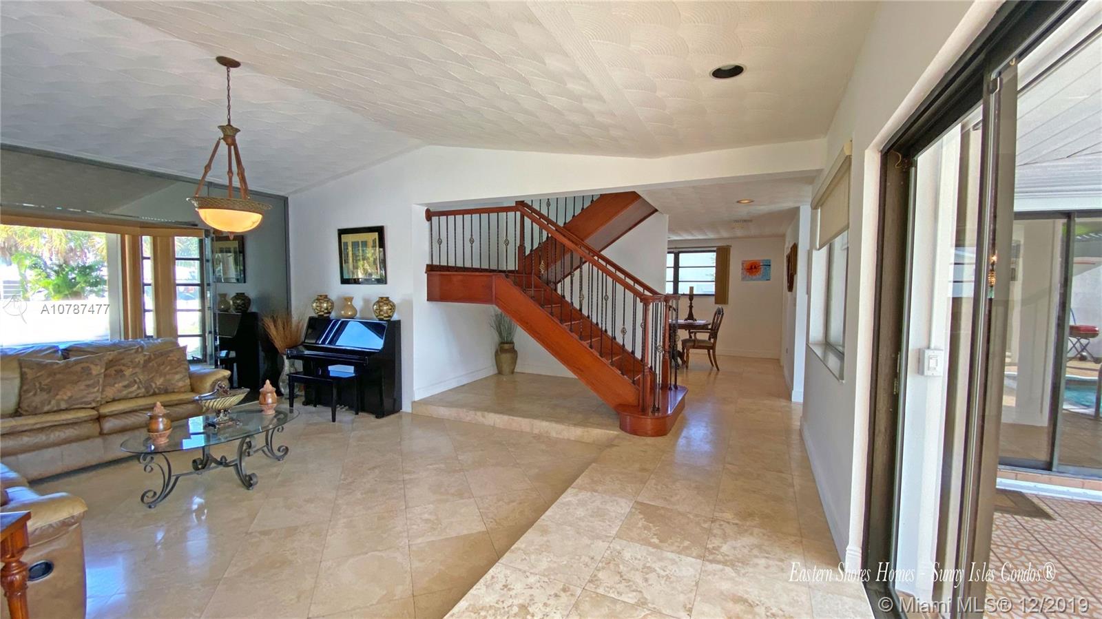 Best priced, two stories waterfront home located in the gated community of Eastern Shores. Three bedrooms, two baths upstairs, and one bedroom one bath on the ground level; large home with 3,227 SF offer 80 Ft of water frontage, with no fixed bridges to the ocean. Travertine floors throughout the living areas, & hardwood floors in the bedrooms upstairs. Kitchen with stainless steel appliances, and granite countertops. U shape floor plan with covered patio area overlooking the pool perfect for entertaining family and friends. The roof was replaced in 2019, a brand-new driveway with plenty of parking for multiple vehicles, double garage. Longtime owner is ready to move, prime location property ready for a complete renovation to build your waterfront dream home. Walking distance to the beach.