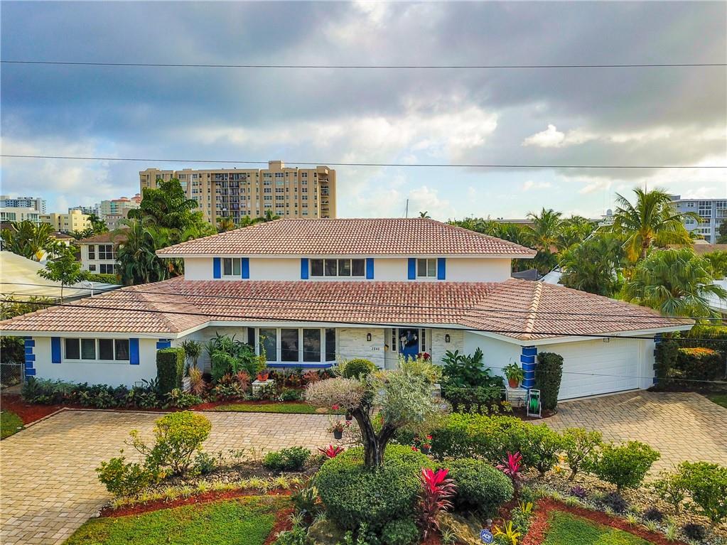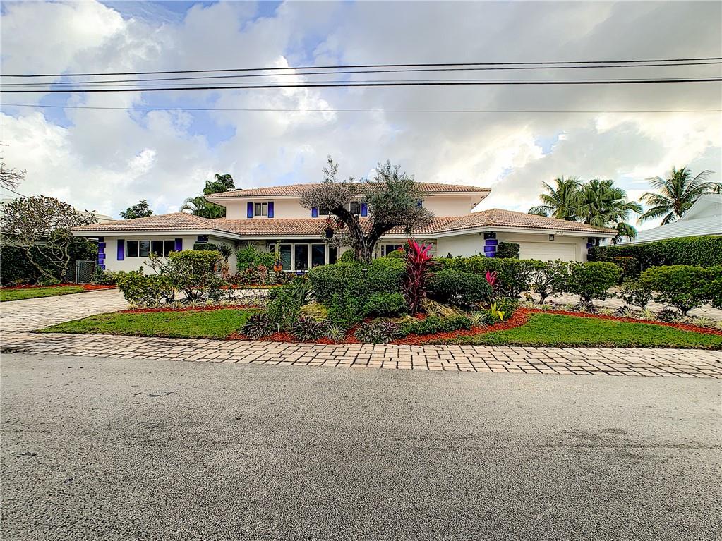 Newly Priced. This Coral Ridge Country Club Estates home has it all -- square footage in excess of 3500, five bedrooms, three bathrooms, two half bathrooms, a large 10000 square foot lot, 100 feet of deep water canal frontage six lots from the intracoastal! The pool-front family room features a wall of glass looking across the pool and pool deck to the your private dock. High ceilings take full advantage of the abundant natural light, creating an airiness square footage alone can't give. There is a 50 foot dock for parking your boat in the back and a circular driveway for parking up to ten cars in front. The first floor is open and perfect for entertaining by the pool, or for just living the elegant lifestyle. Information pulled from tax roll believed to be correct but not warranted