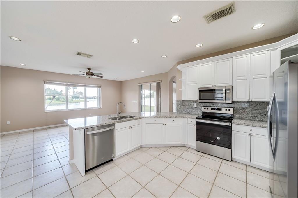 Gorgeous two story nicely updated home in gated Keystone Lake. Large model on the wide LAKE with breathtaking views from most of the house. Walk to A+ schools/park. Real wood 42 inch cabinets, Gorgeous new granite counters island and back splash, New SS appliances. New designer waterproof flooring most of the house. Foryer opens into a living room that is opened through second story.. Open kitchen. New flat roof, Spacious screened patio. Nice new fixtures through out. One bedroom with cabana bath downstairs. Large master suite plus 3 bedrooms upstairs. Large backyard space for pool or entertaining/playground. Enjoy the lake life with beautiful sunsets. Great location close for A+ School system, I-75/shopping and restaurant. Hurricane ready. Do not wait make this beautiful house your home!