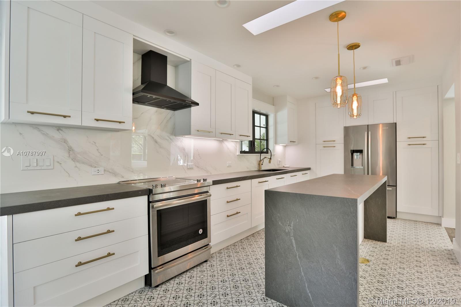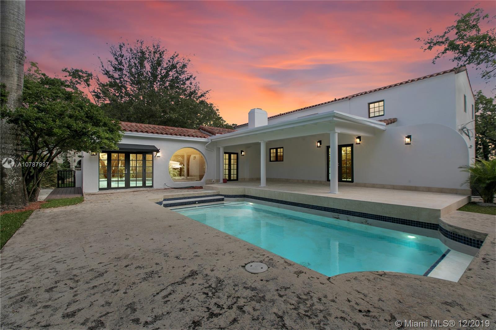 **$300K PRICE ADJUSTMENT**Spectacular 4/3.5 modern chic pool home on historic, tree-lined Alhambra Cir & steps from Country Club Prado! Elegant wrought-iron gates open to brick-paved driveway into this 2,825 SF masterpiece! 2018 gut-reno with magnificent vaulted ceilings, Italian porcelain floors, ItalKraft kitchen, high-end fixtures, Italian bathrooms w/custom flooring, impact windows, & more! 1st flr features corner 1 BD w/en-suite bath, open living/family flanked by circular picture windows, stylish powder room, 1-car garage w/modern auto door, kitchen w/breakfast nook leading to entertainer's covered/open deck & heated salt-water pool on corner double lot (11K SF). 2nd flr boasts light-infused, 3 BD/2 BT w/top-tier finishes/fixtures- ref floor plans on listing.