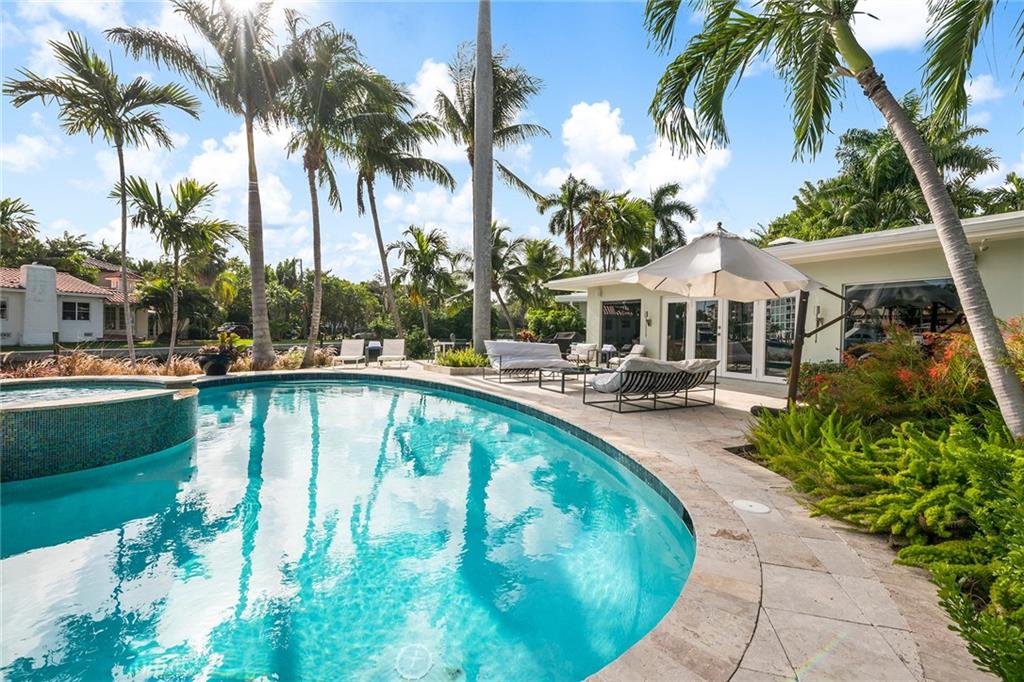 "Villa Palmas" is a secluded, tropical paradise estate home situated on an 18,607 SF point lot in the enviable exclusive island enclave of 30 waterfront homes just steps from Downtown Fort Lauderdale and the fashionable Las Olas shopping and entertainment district. Enjoy resort living at it's finest in this one story 4 BR/4.5BA open floor plan home - truly designed for entertaining!! With 2 master suites, gracious living areas, vaulted ceilings, chef's kitchen, fireplace and an amazing heated pool and patio area which has two docks w/270 total linear feet. Extensively upgraded in 2017 with new flooring, kitchen w/Greenfield custom cabinetry and top of the line appliances, LED lighting throughout, whole house gas generator and 2 car garage. You must see this home!!