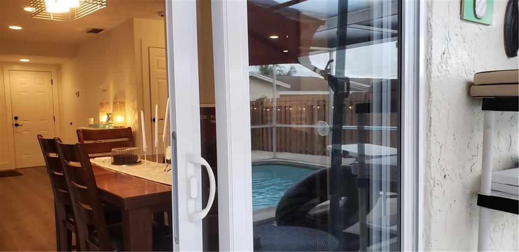 Fantastic 3/2 with 1 car garage pool home in a great family neighborhood with many features. Modern white upgraded kitchen with SS Appliances & dark counter top. Natural Gas which is used by range, water heater & dryer. Fully upgraded baths including vanities & all tiled showers with Mosaic in master / guest. Walk-in closet. Smooth ceilings with no Popcorn thru out the home. Security system already installed. Upgraded fixtures thru out & recessed lighting. Separate family / entertainment room with pool access. New Flooring & modern base boards / door trims. Impact windows. Heated pool with Cabana bath. Fenced yard for privacy. All tiled garage, paved exterior sides. Circular drive way. Asphalt recently re coated, No HOA, nicely painted inside and out. Home is clean & in great conditions