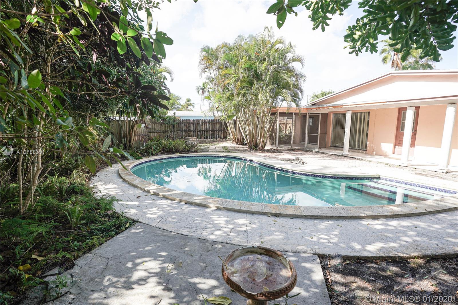 HOME SWEET HOME! Here is a rarely-available vintage pool home in the quiet subdivision of Rickey Estates. Remodel and modernize to your own taste. House appraised for 256k. Brand new roof installed in July!! New floor board. Sprinkler system installed. Pool-side there is a long, covered back porch, screened-in room, and access to the bathroom. Washer/dryer hookups are in the room by the carport which offers covered parking on rainy days and easily bring in your groceries to the kitchen from carport entrance. Spacious front porch from which you can watch 4th of July fireworks from the Hard Rock Casino about a mile and a half away. This home is close to I-95 and the Turnpike for those needing to commute to work and is 20 minutes from Hollywood Beach Boardwalk. By appointment only.