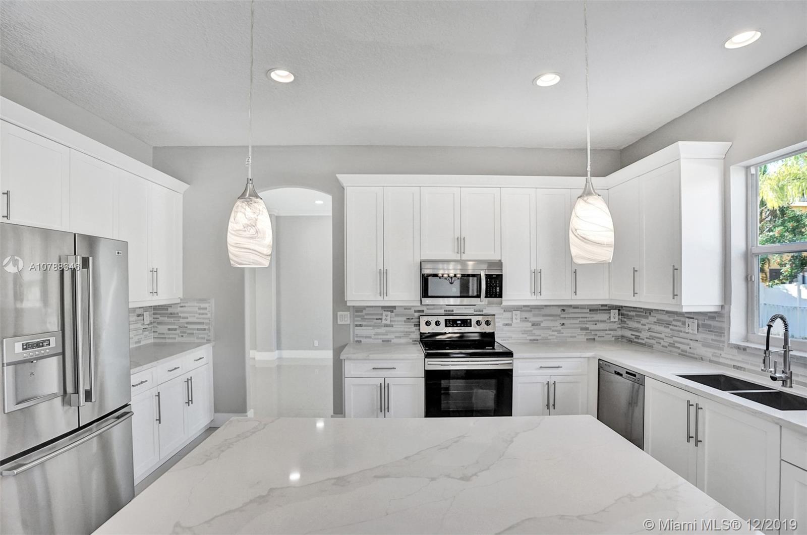 Beautifully renovated modern designer home, in prestigious Harborside Estates in Pembroke Shores. Tremendous home, triple split floor plan, high ceilings, 6 bedrooms, 5 walk in closets, 4 baths, a loft & 3 car garage. Oversized eat in kitchen, perfect for cooking & entertaining, featuring wood cabinets, Calacatta quartz countertops, glass & stone backsplash, & stainless steel appliances. Massive master suite w/ sitting area, 2 walk in closets, and a huge European inspired master bath w/ freestanding tub, waterfall shower, water closet, 2 linen closets, porcelain, wood cabinets, & quartz counters. Sizeable fenced in backyard ready for drinks & BBQs pool side. Polished porcelain 1st fl & Oak Laminate 2nd fl. European design bathrooms. A schools Bring your offer as the property will not last!