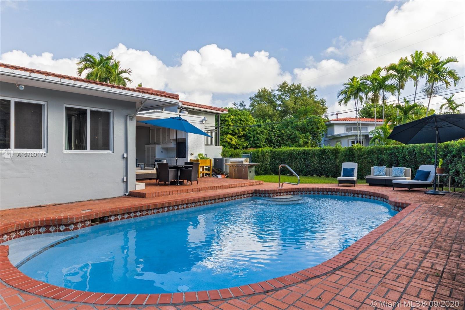 4 bedrooms and 3 full baths East of US-1. Two story home with attached over sized 2 car garage, big fenced private yard, pool and covered patio. Open floor plan great for entertaining and easy living. Big dining room open to the huge eat-in kitchen. large family room overlooking the garden and pool. Great covered patio with outdoor kitchen. Wood floors, impact windows, 2 zones a/c, alarm system. Huge master suite with giant walk-in closet and spa like bathroom. All 3 baths are updated. Move in condition.