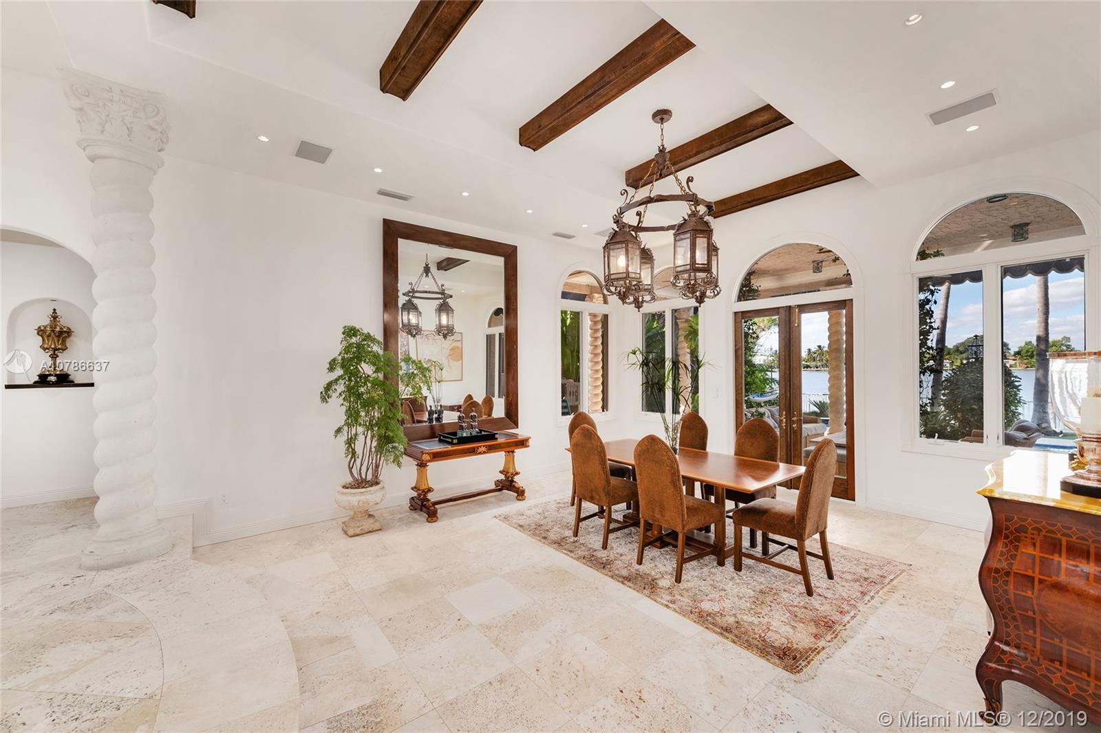 This elegant 2-Story Mediterranean waterfront Villa on prestigious guard-gated La Gorce Island exemplifies luxury living. The residence sits on a lush manicured 18,000 sf lot featuring exquisite natural stone & rich hardwood floors, interior elevator, soaring ceilings, stunning double-sided staircase, formal living & dining areas, gym & an amazing family room. Open gourmet kitchen sports top-of-the-line appliances, granite counter tops/center island & breakfast area. The 2nd story principal suite has an office space, private balcony facing the waterway & bathroom w/voluminous dual closets. 100 FT on the Intracoastal Waterway, large pool w/Jacuzzi, covered terrace, cabana/bar, summer kitchen, double jet-ski lifts, private dock & industrial generator complete this amazing residence.