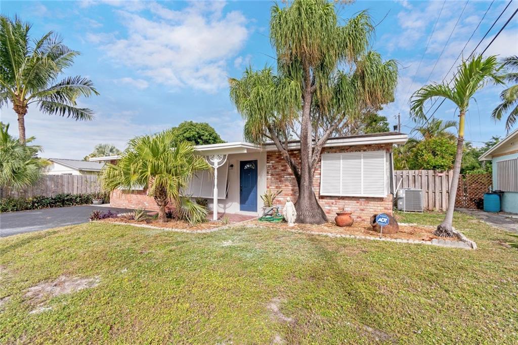 East of 95, Pompano Beach Highlands Mid Century Ranch with magnificent pool and huge Florida room. 3BR/1BA, well maintained property with lots of space. Lush tropical back yard, with heated pool, large paver patio, gazebo, and extra storage sheds. Freshly painted inside and out and ready to move in. Walking distance to local park and elementary school. Close to the Pompano mall and all the shopping and restaurants on US-1 and the beach. High elevation. No flood insurance required. This is a must-see!