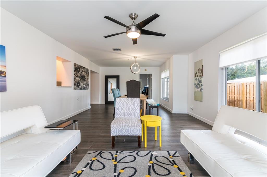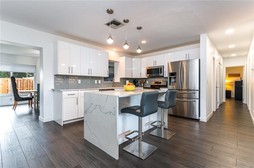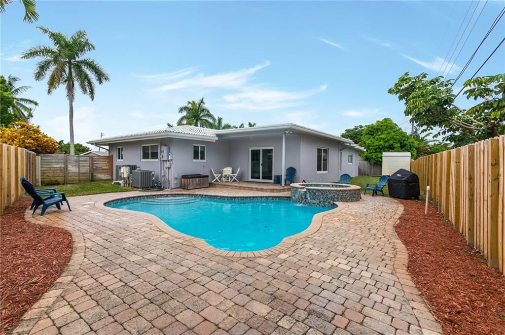 You will be impressed with the amount of space in this 4 bedroom 3 bath home with split bedroom floor plan. It has been nicely updated with new tile floors throughout as well as the kitchen with stainless steel appliances, double-oven, beautiful glass tile back-splash, quartz counter-tops and hurricane impact windows and doors. The master bath has double sinks, and access to the backyard with heated saltwater pool and hot tub. Enjoy the spacious fenced in backyard with a paver patio perfect for entertaining. This home is located on a quiet street with a park-like setting in the A-rated Floranada school district.