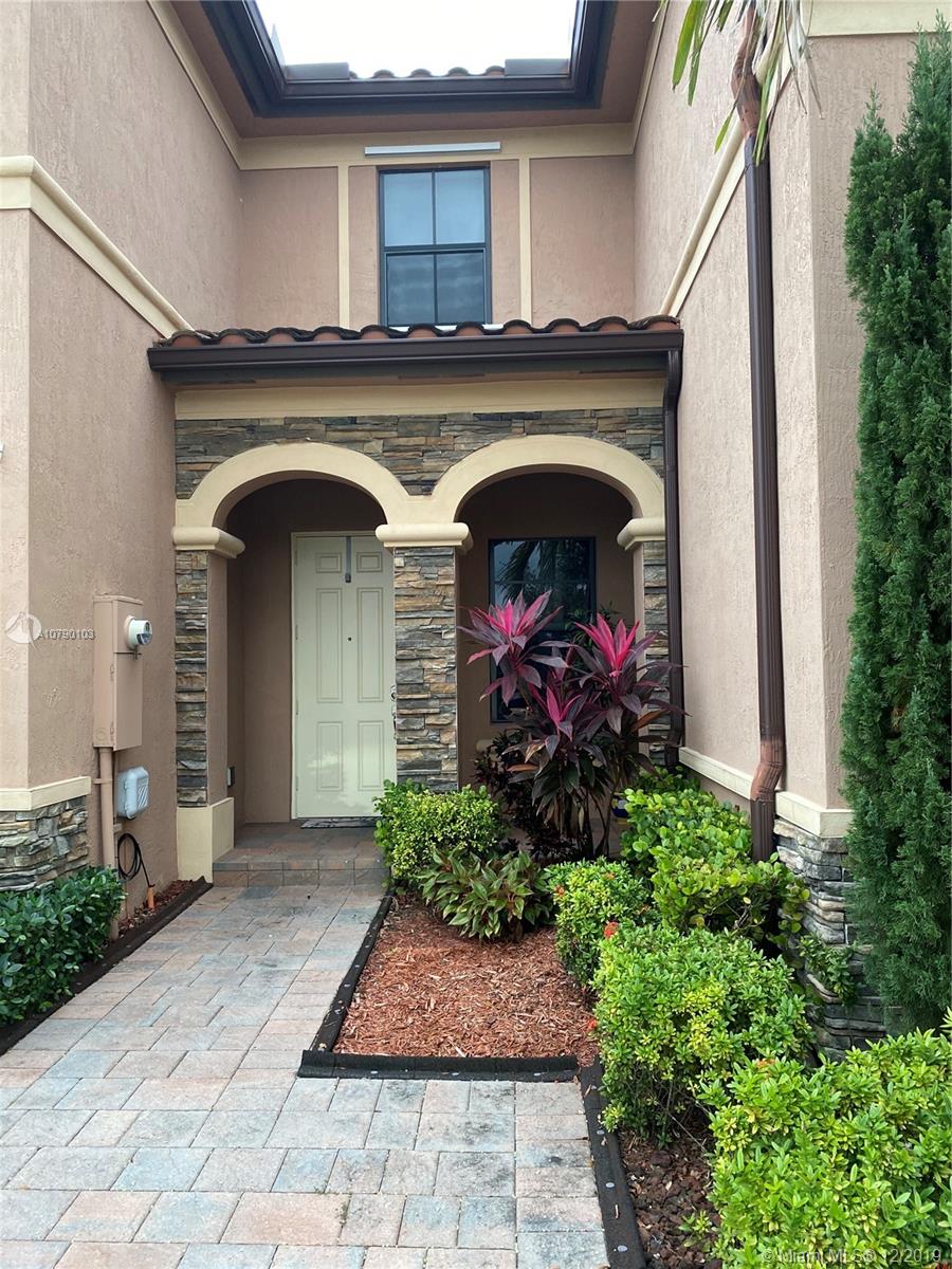 Great opportunity. Beautiful and cozy townhouse in pristine conditions, 3 bd 2.5 bth, 1 car garage. Beautiful upgraded laminate floors throughout the house with flush stairnose steps. SS appliances. Amazing patio for entertainment with pavers, fake grass, Pergola with electricity, ceiling fan, all done with permits. Spacious bedrooms, walking closets, W/D conveniently upstairs. Gated community, amazing Clubhouse with resort pool, gym and playgrounds. Close to shopping centers, highways and great schools. Don't miss this opportunity!!! Curtains are not par of the sale
