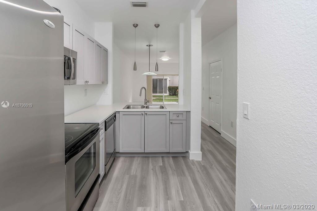 COMPLETELY REMODELED, ONE OF A KIND 2/2.5 TH WITH STUNNING NEW KITCHEN THAT FEATURES GORGEOUS COUNTERTOPS, STAINLESS STEEL APPLIANCES, NEW CABINETS. LOTS OF CLOSET SPACES, EASY ACCESS TO A LARGE ATTIC FOR MORE STORAGE. RECESSED LED LIGHTING THROUGHOUT AND IN FRONT OF THE UNIT. LUXURY, MODERN PLANK FLOORS IMITATING WOOD. ELECTRICAL COMPLETELY REDONE, 2 FRONT PARKING SPACES PLUS GUEST PARKING. MASTER BEDROOM OFFERS A WALK IN, LINEN CLOSET AND A GORGEOUS MASTER BATHROOM. POPCORN CEILINGS HAVE BEEN REMOVED AND REPLACED WITH SMOOTH MODERN CEILING. GUARD GATED COMMUNITY, AMENITIES INCLUDES SWIMMING POOLS, GYM, PLAYGROUND, CLUBHOUSE, ETC. THERE IS MORE ... AN INSTALLED RING SECURITY SYSTEM TO COMPLETE THIS TOTALLY RENOVATED TOWNHOUSE.