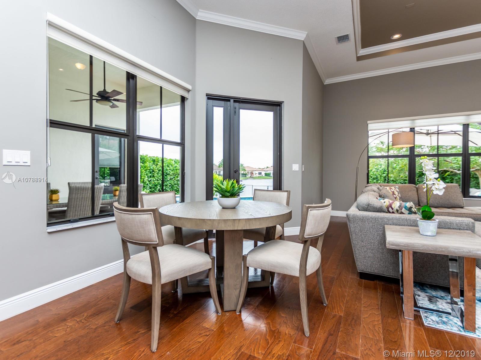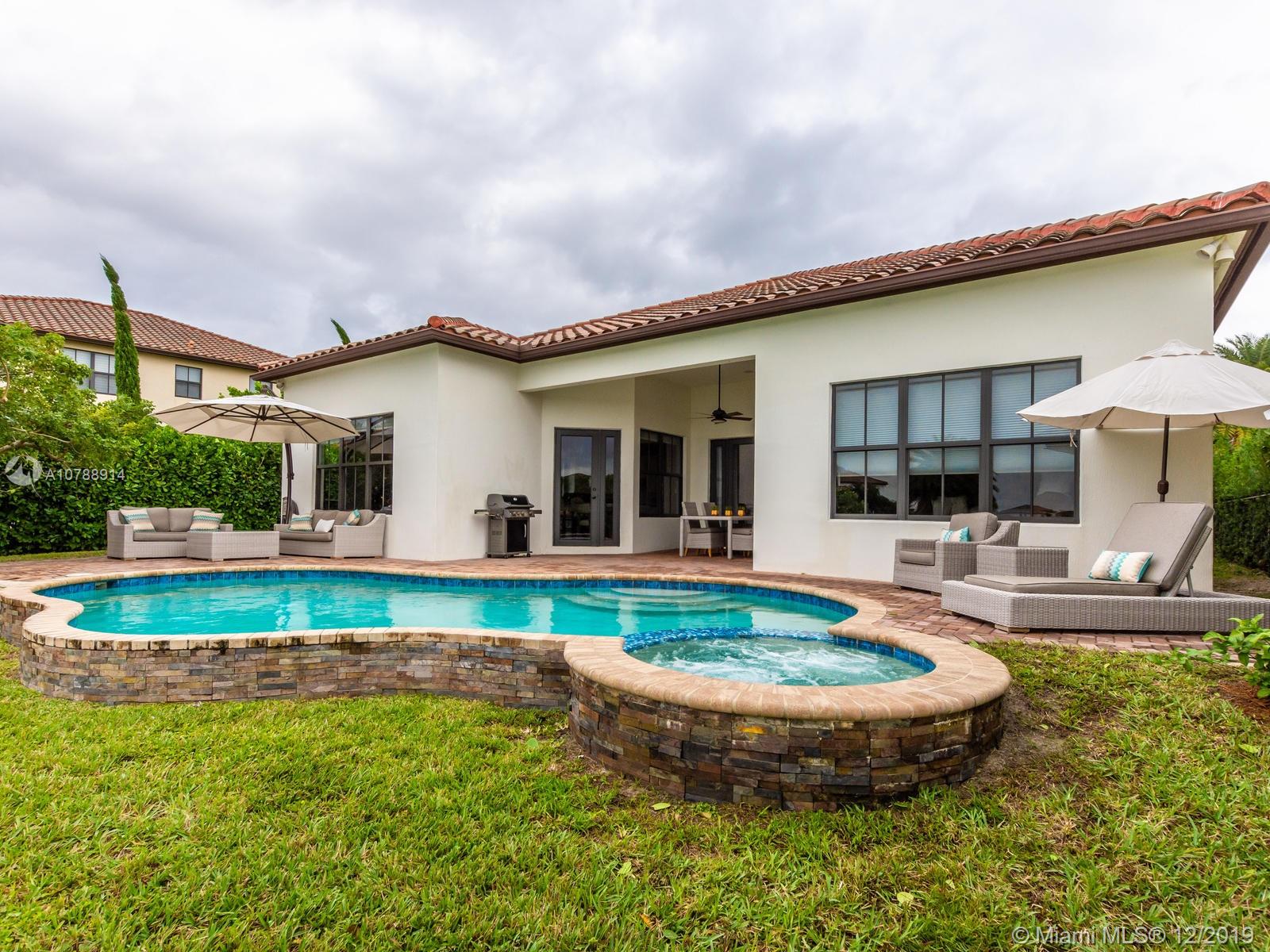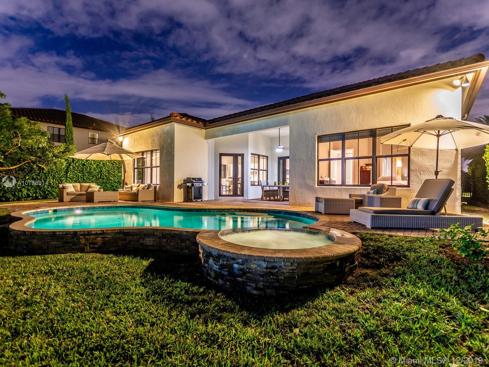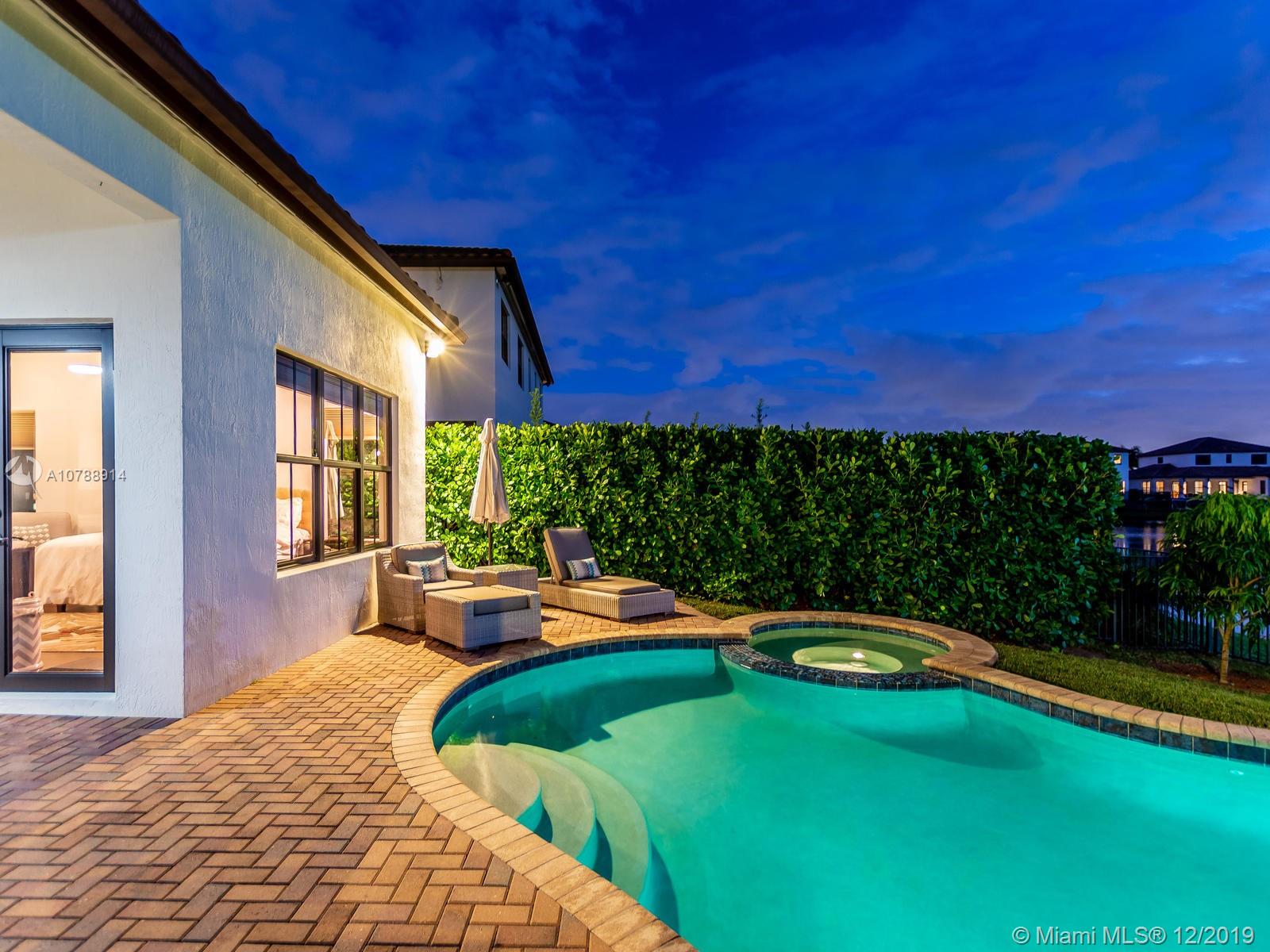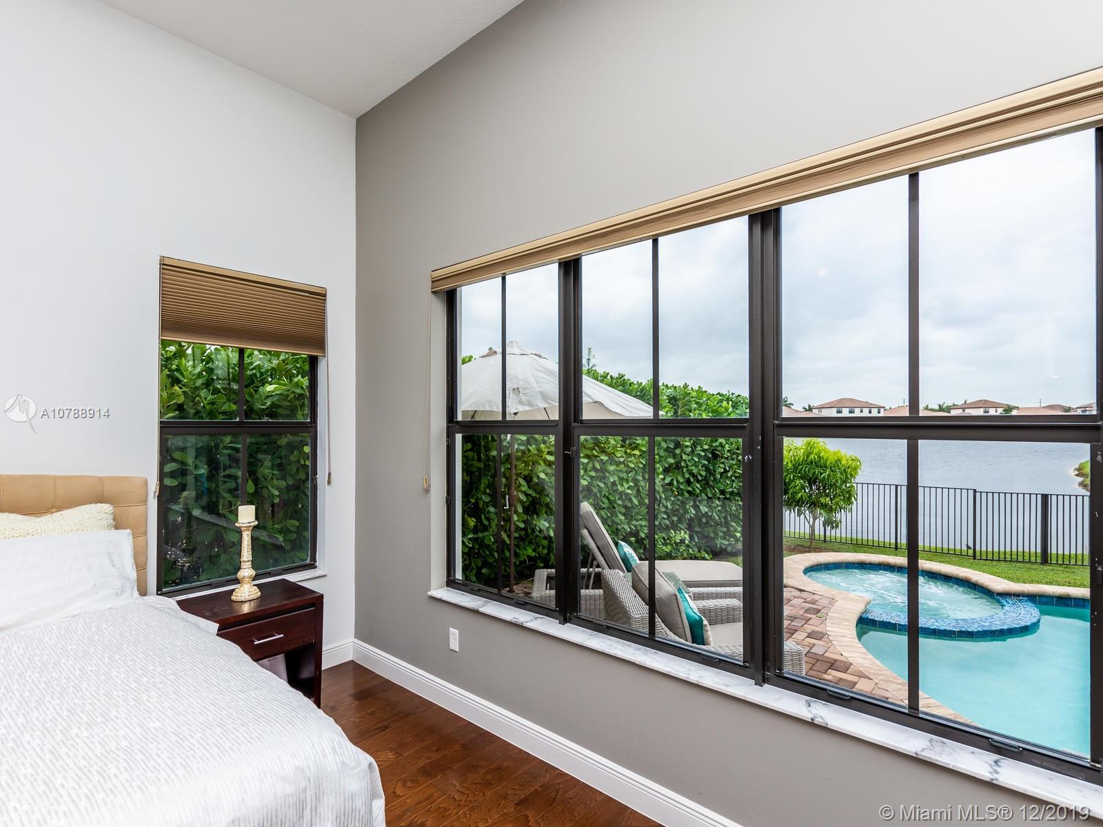 Rarely available and highly desirable waterfront Escondido model home with pool! This 5 bedroom 3.5 bath home boasts high ceilings and open floor plan and is situated on a premium oversized lot with spectacular long lake water views. Additional upgrades include impact hurricane windows and doors, highly upgraded kitchen and bathrooms, Wood flooring, sound system, Hunter Douglas blinds and much more. The Escondido model features an In-Law Suite with Wet Bar and Separate Private Entrance. Located in sought after Monterra, the community offers resort style amenities such as fitness center, basketball and tennis courts, free form pool and clubhouse, Tot lot and dog park. A+ schools and Just minutes from shopping and Fort Lauderdale and Miami international airports.