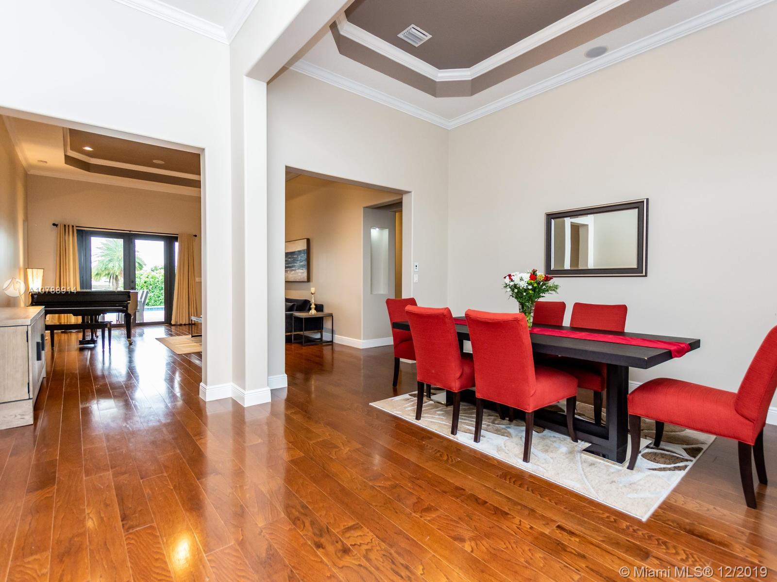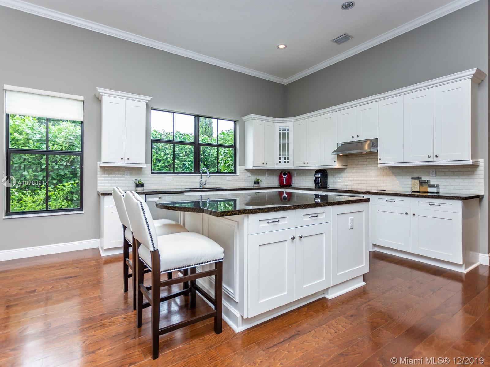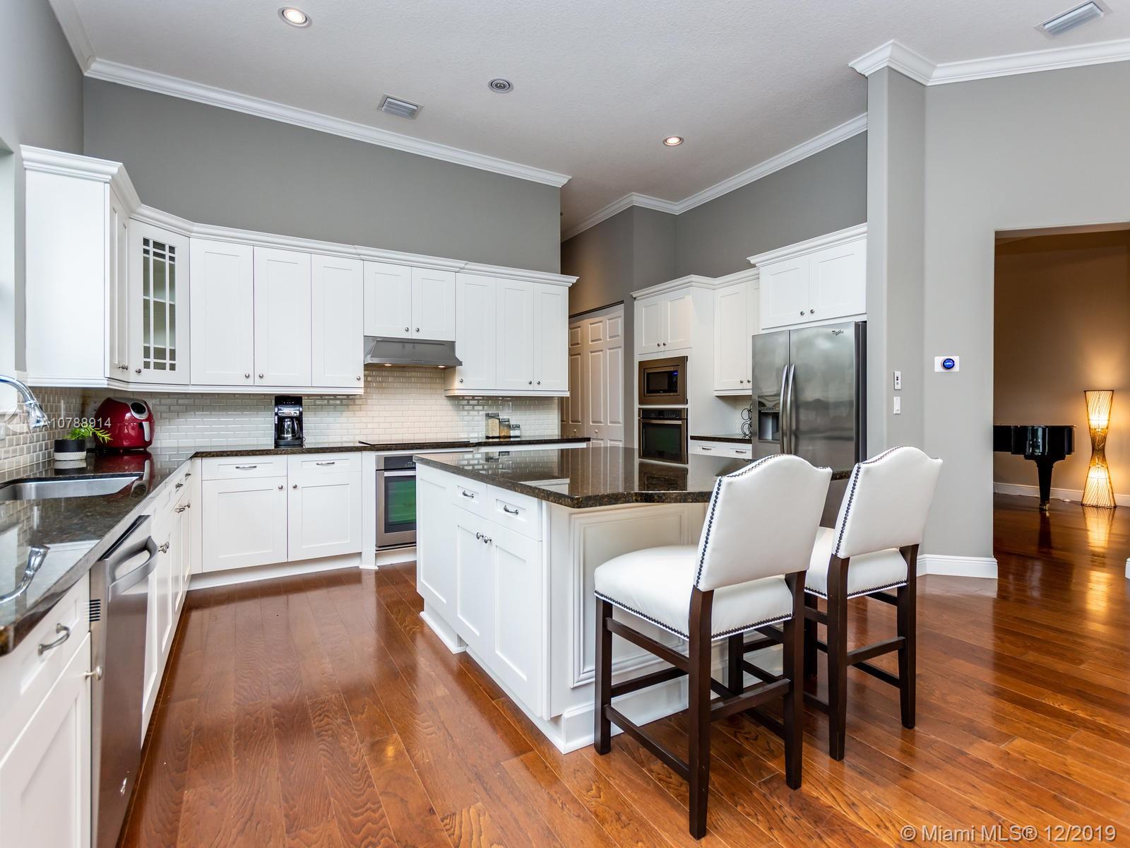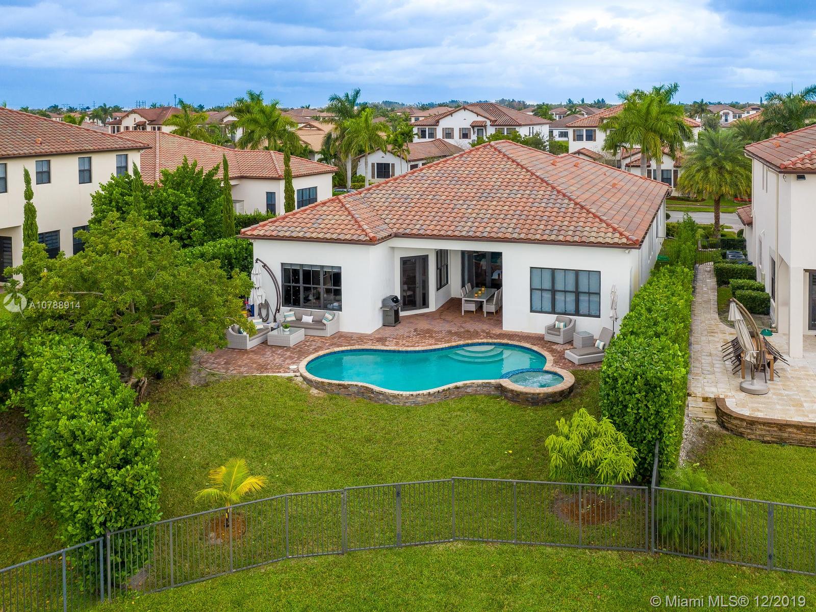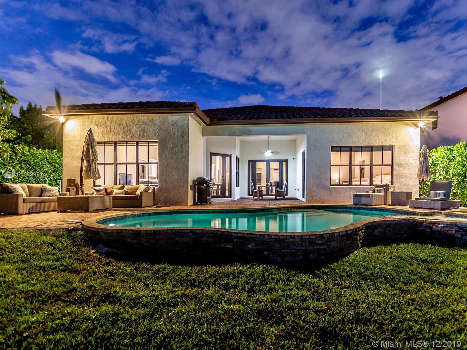 Rarely available and highly desirable waterfront Escondido model home with pool! This 5 bedroom 3.5 bath home boasts high ceilings and open floor plan and is situated on a premium oversized lot with spectacular long lake water views. Additional upgrades include impact hurricane windows and doors, highly upgraded kitchen and bathrooms, Wood flooring, sound system, Hunter Douglas blinds and much more. The Escondido model features an In-Law Suite with Wet Bar and Separate Private Entrance. Located in sought after Monterra, the community offers resort style amenities such as fitness center, basketball and tennis courts, free form pool and clubhouse, Tot lot and dog park. A+ schools and Just minutes from shopping and Fort Lauderdale and Miami international airports.