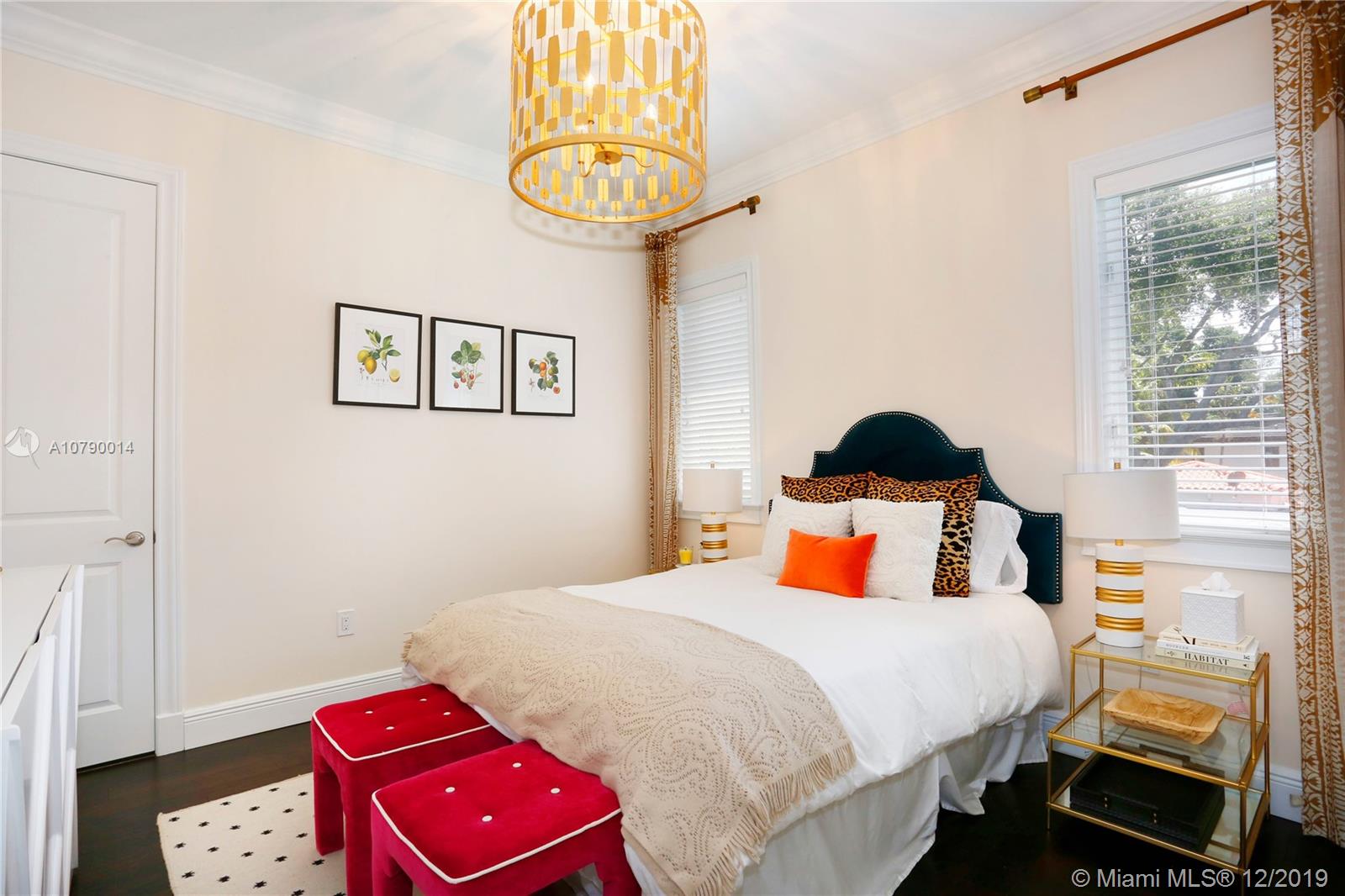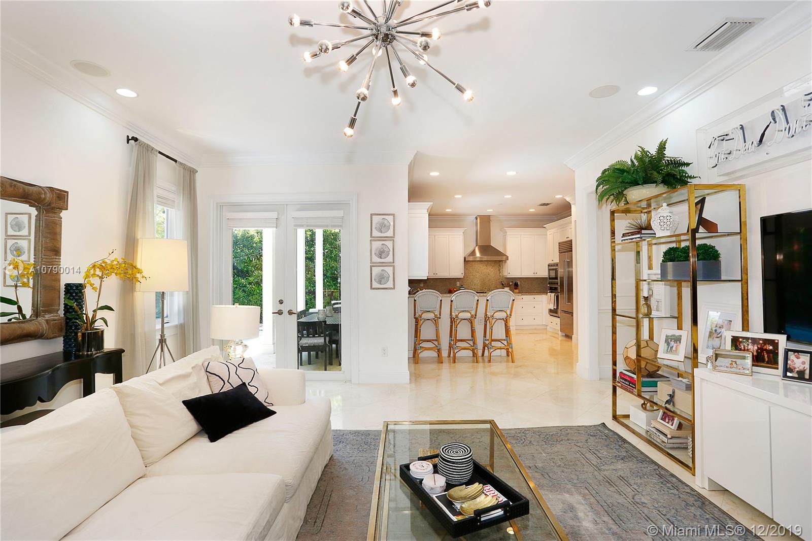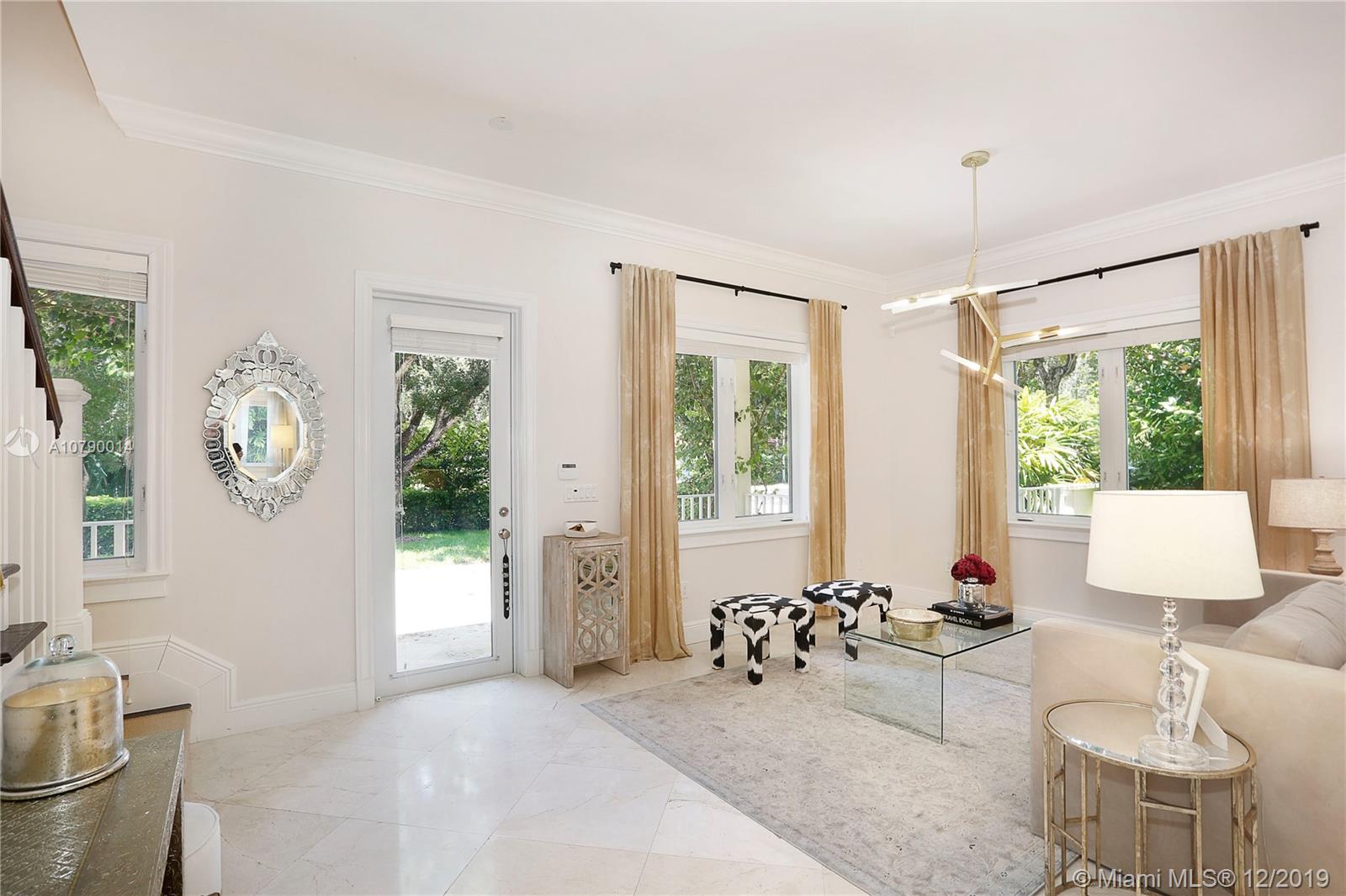 This well-located, plantation style property on a corner lot in the South Grove breaks the mold. Clean, contemporary and magazine quality with chic, designer finishes and styling. Custom woodwork, high ceilings, magnificent fixtures, and incredible attention to detail indoors and out. A brick driveway, front porch, and blooming bougainvillea beckon you inside. Welcome guests with an oversized dining room and open kitchen with large, adjacent family room. Your master suite features a stand-alone soaking tub and generous walk-in closet. Relax on the wraparound covered terrace or plunge into the heated/cooled pool. Make the most of the Coconut Grove lifestyle by taking a short walk to Merrie Christmas Park or enjoying nearby shopping, restaurants, and entertainment!!