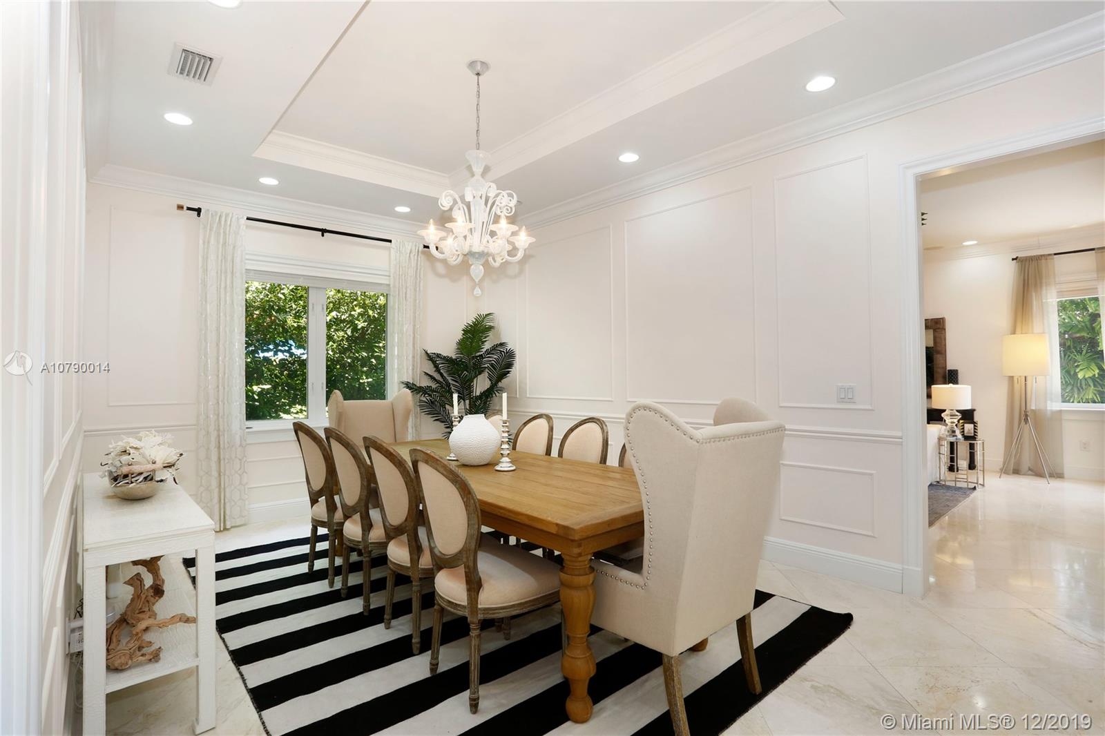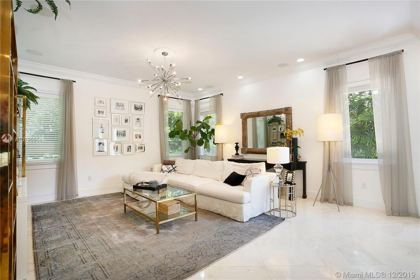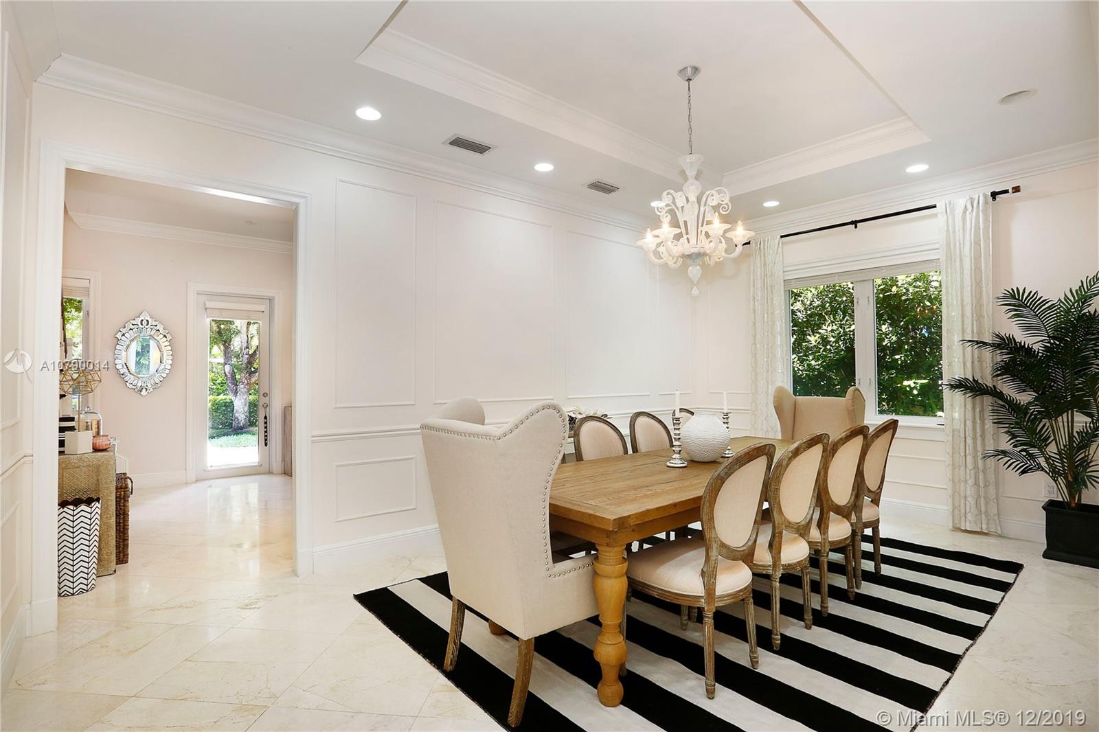 This well-located, plantation style property on a corner lot in the South Grove breaks the mold. Clean, contemporary and magazine quality with chic, designer finishes and styling. Custom woodwork, high ceilings, magnificent fixtures, and incredible attention to detail indoors and out. A brick driveway, front porch, and blooming bougainvillea beckon you inside. Welcome guests with an oversized dining room and open kitchen with large, adjacent family room. Your master suite features a stand-alone soaking tub and generous walk-in closet. Relax on the wraparound covered terrace or plunge into the heated/cooled pool. Make the most of the Coconut Grove lifestyle by taking a short walk to Merrie Christmas Park or enjoying nearby shopping, restaurants, and entertainment!!
