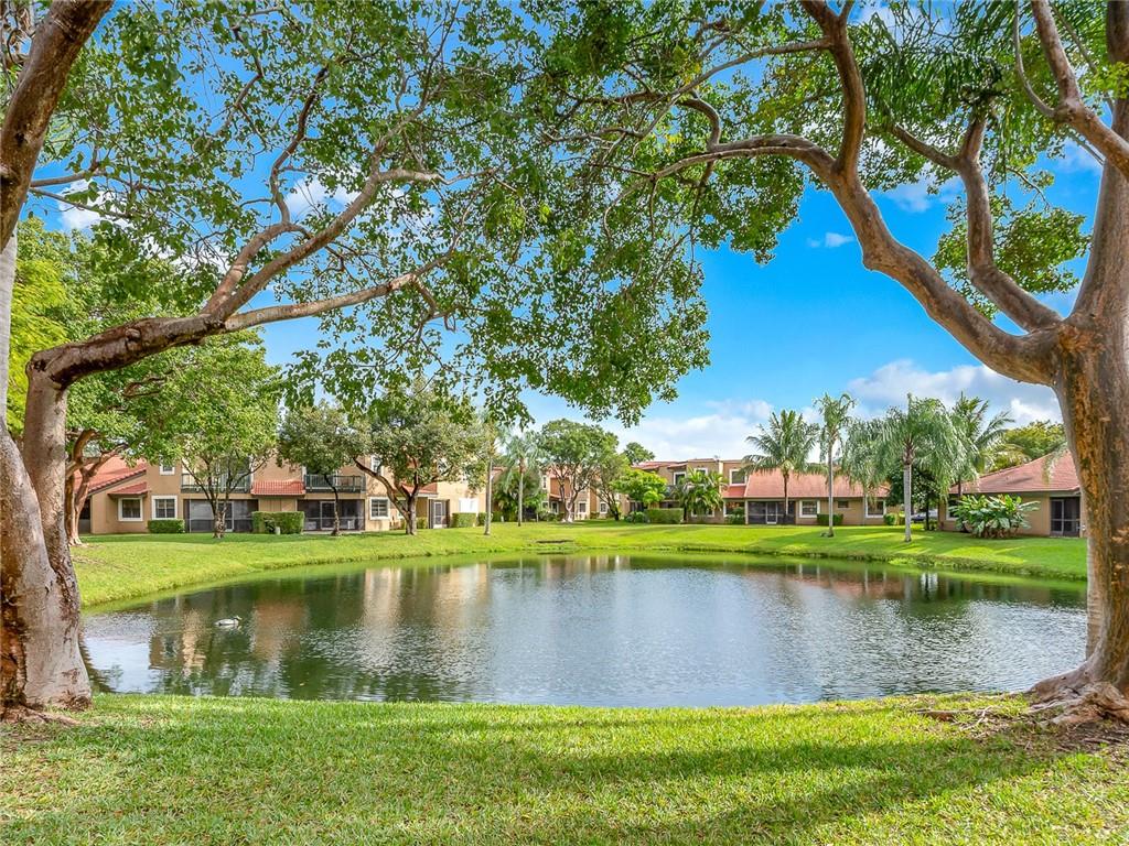 WATCH THE SLIDESHOW. Amazing waterfront Townhouse in a beautiful gated community. This is a bigger unit with a prime corner location and 2 deeded parking spots right outside your front door. 1 bedroom and full bath located on the entry level. The entire townhouse was recently renovated. New gourmet kitchen with extended 3” granite countertops, tiled backsplash, custom wood cabinetry, upgraded faucets with an oversized sink and new SS appliances. All 3 bathrooms have been tastefully remodeled. The AC & water heater are less than 2 years old. New recessed LED lighting, new fans & fixtures, new high-end front loading washer & dryer, even fresh paint throughout. Close to shopping, dining, and minutes to the Turnpike or Sawgrass Exp. Community pool, basketball courts, club house and play area