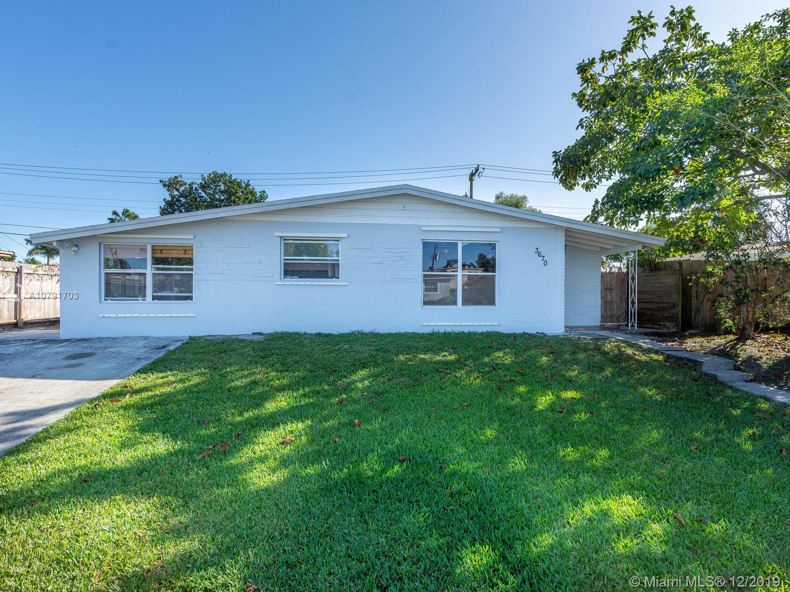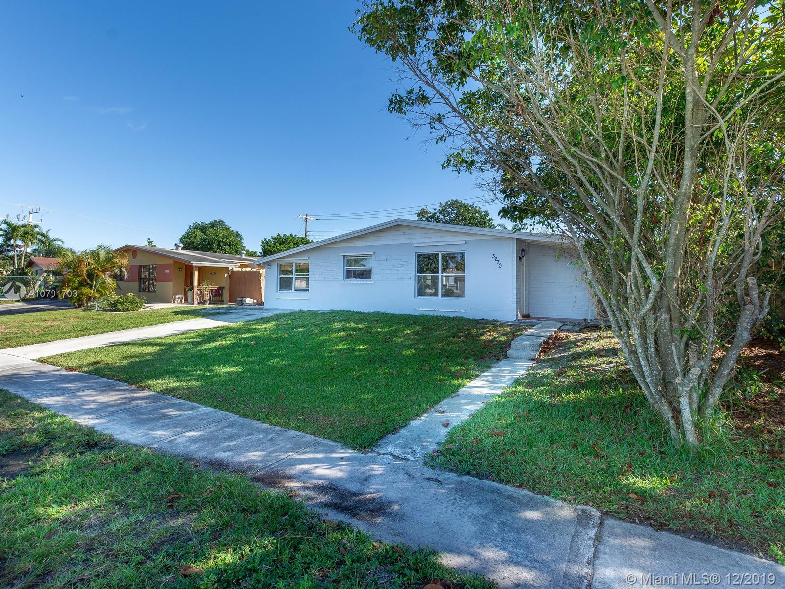 This 3 bedroom 2 bathroom home is an amazing opportunity under $300K! This property is only minutes from the brand new Hard Rock Hotel and Casino and has easy access to both 595 and the Turnpike. Additionally, property is located only blocks from the Davie Rodeo arena and the new and upcoming Town of Davie Downtown. Property has been recently renovated to include bathrooms, floors, newer A/C and new roof. The backyard is completely fenced. Don't miss this opportunity to be right near the action!