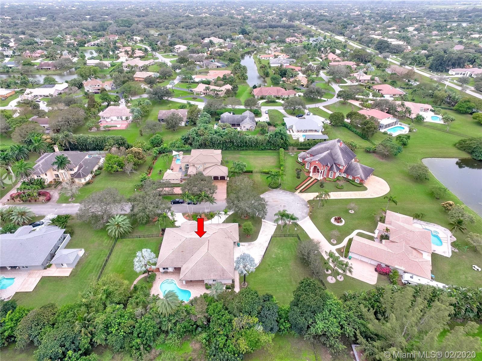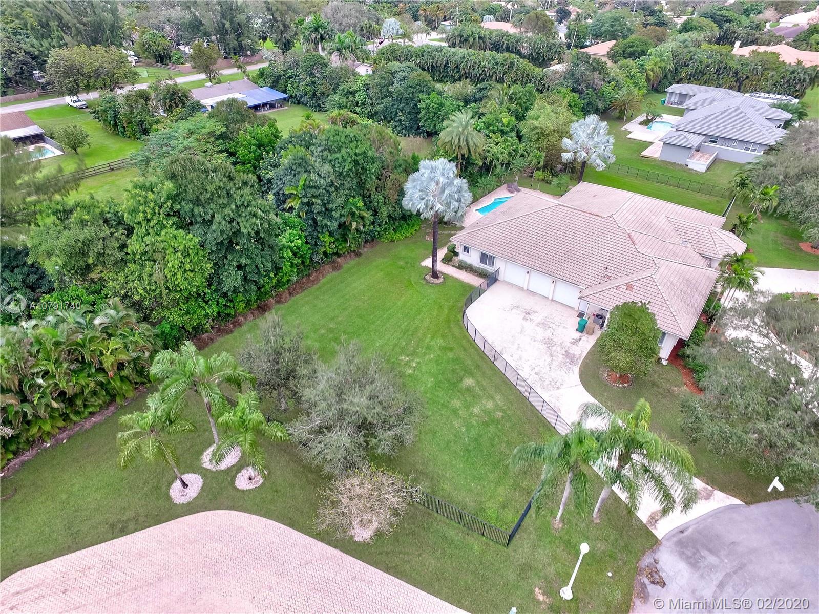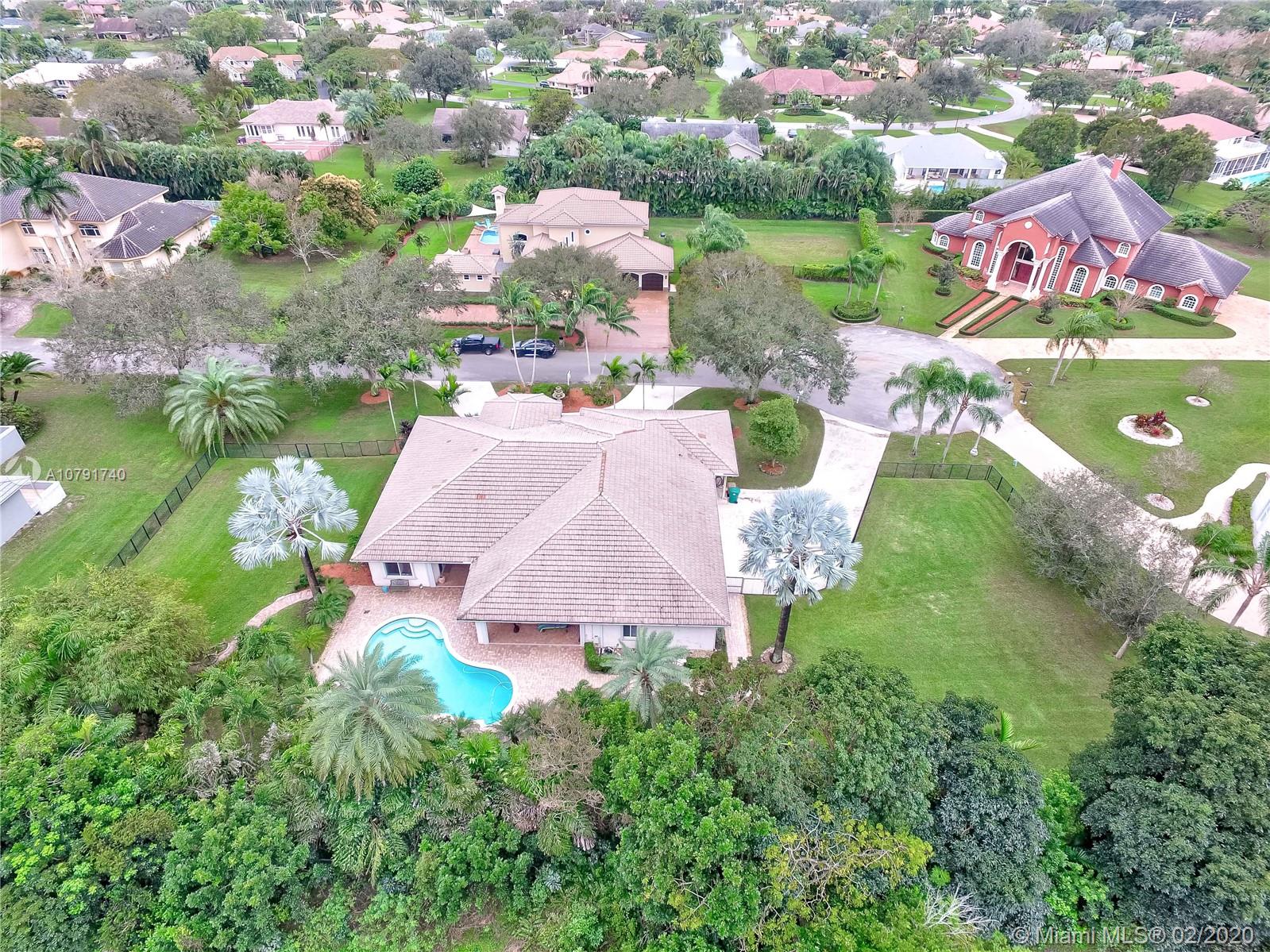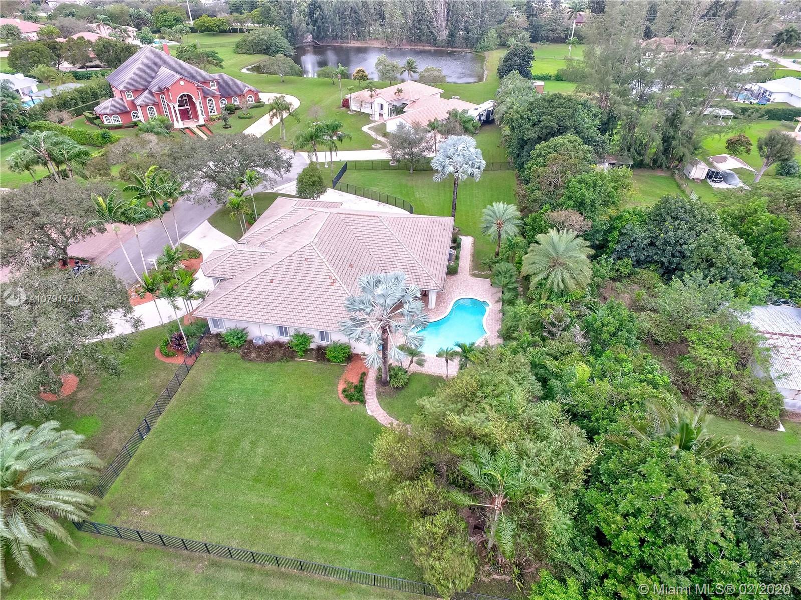 HUGE PRICE REDUCTION! $40K. A Spacious Expertly laid out custom pool home built in 2002, nestled on a quiet cul-de-sac, in the family safe neighborhood of Oakwood Estates in Davie. The home features freshly landscaped gardens with a cove, walking path, and lush tropical trees surrounding close to an acre of land. The four bedrooms are split, Master has own wing w/ extra bonus room for office, nursery or gym, expansive master bath w/dual sinks, tub, shower, lots of light. The guest room is private, with en suite bath, and is situated separate from the main bedrooms. The last 2 bedrooms are perfect for the children, with a Jack and Jill spacious bathroom. Additional features include custom closets, separate bar area, security system w/ cameras, landscape lights, 3 HVAC units, laundry room.