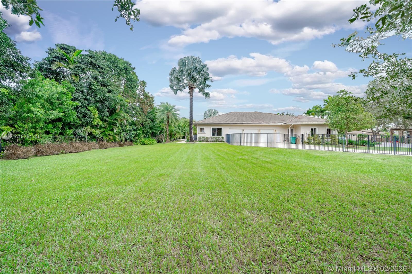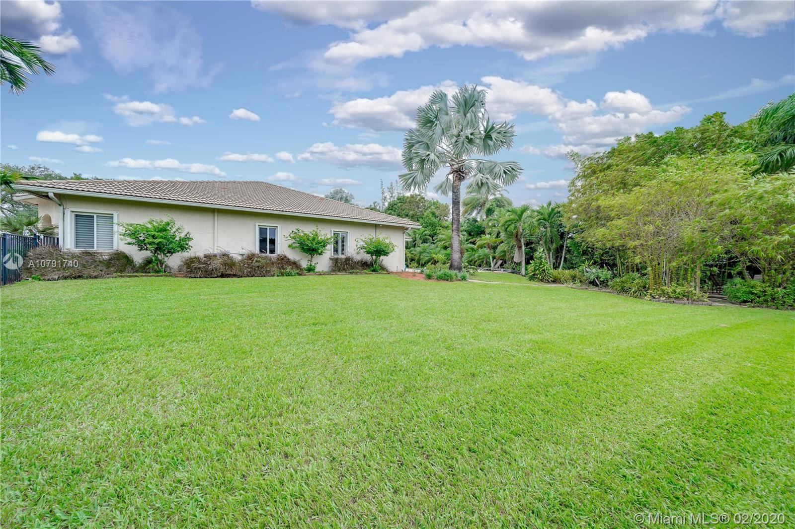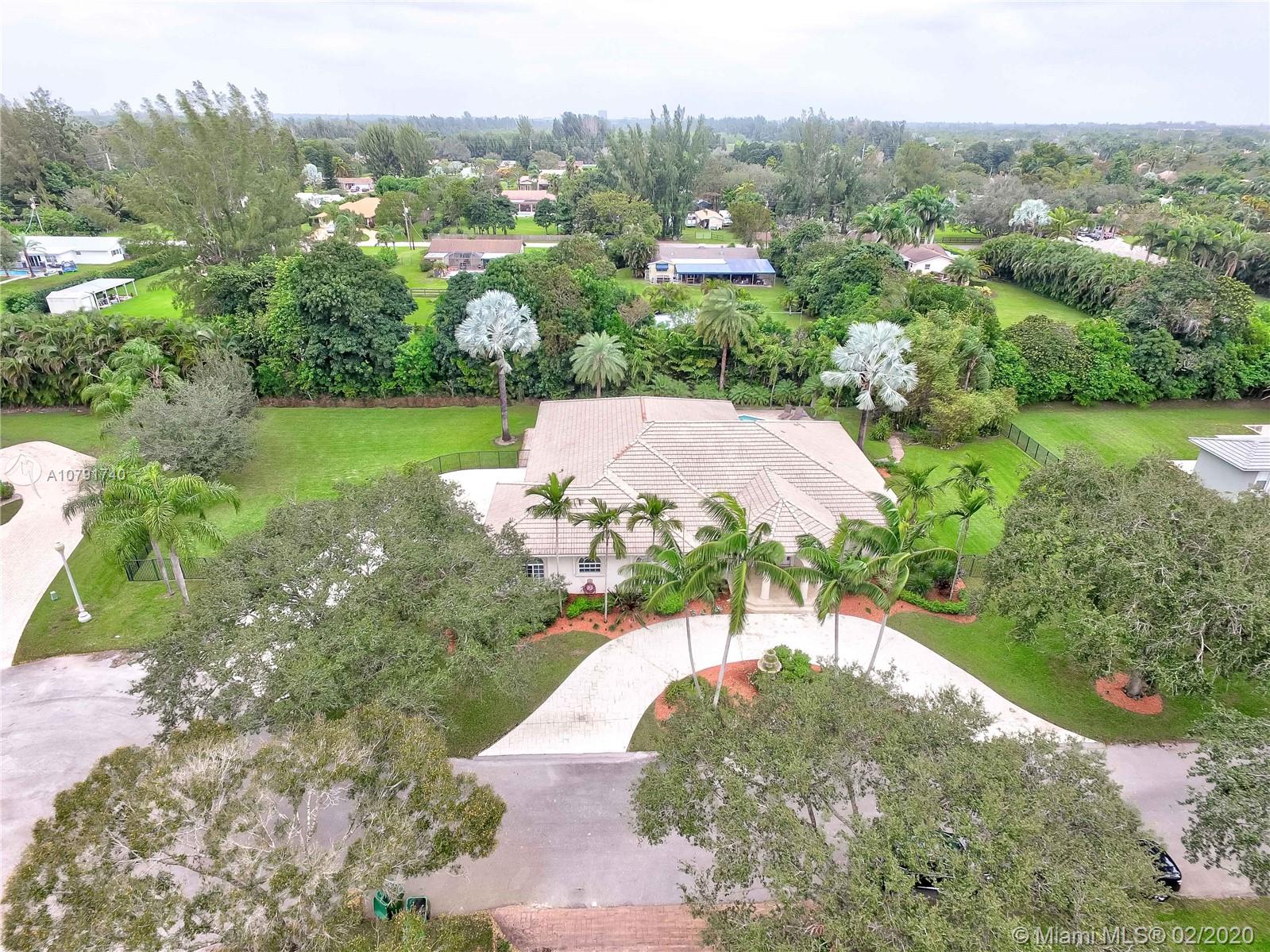 HUGE PRICE REDUCTION! $40K. A Spacious Expertly laid out custom pool home built in 2002, nestled on a quiet cul-de-sac, in the family safe neighborhood of Oakwood Estates in Davie. The home features freshly landscaped gardens with a cove, walking path, and lush tropical trees surrounding close to an acre of land. The four bedrooms are split, Master has own wing w/ extra bonus room for office, nursery or gym, expansive master bath w/dual sinks, tub, shower, lots of light. The guest room is private, with en suite bath, and is situated separate from the main bedrooms. The last 2 bedrooms are perfect for the children, with a Jack and Jill spacious bathroom. Additional features include custom closets, separate bar area, security system w/ cameras, landscape lights, 3 HVAC units, laundry room.