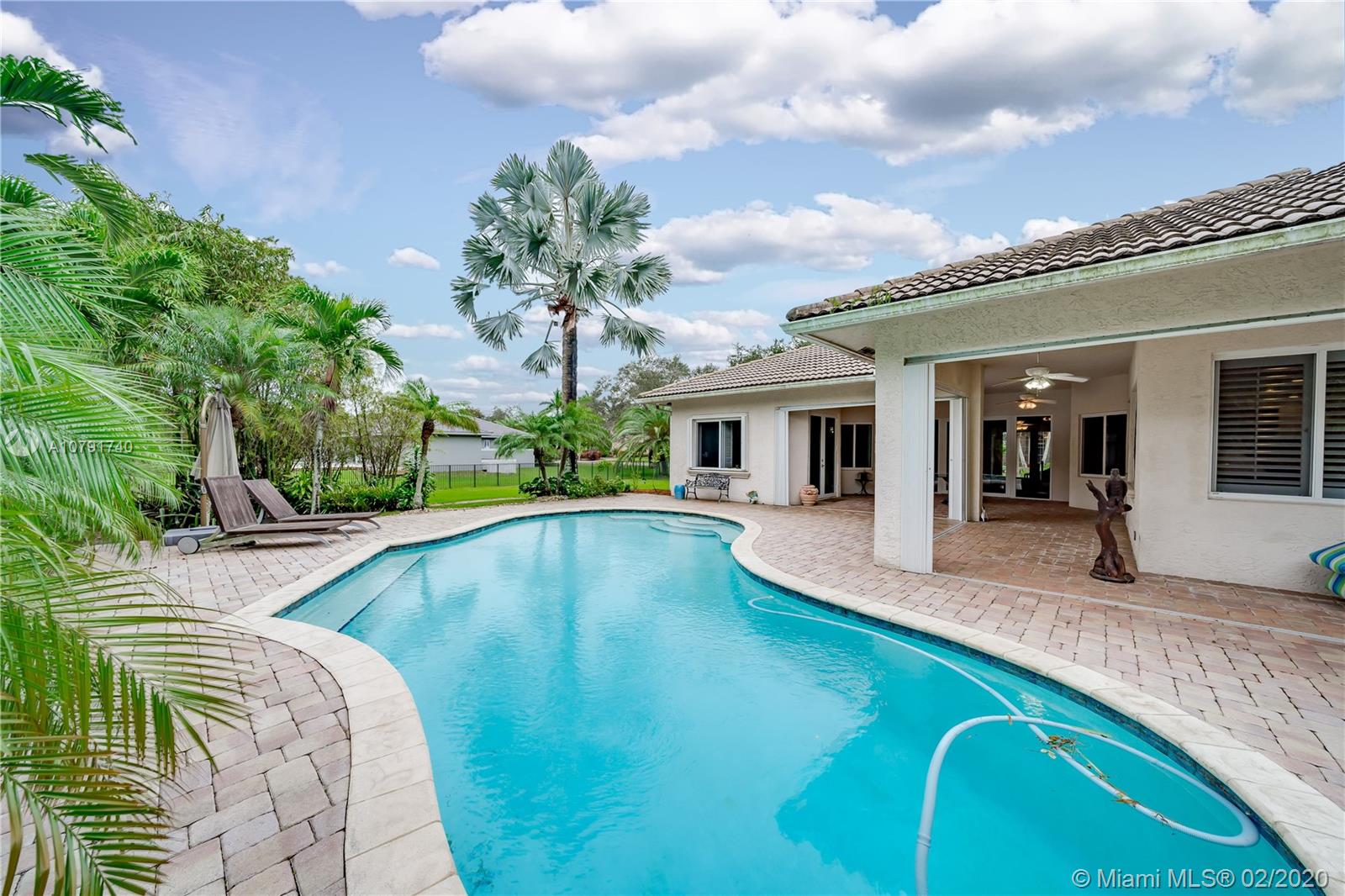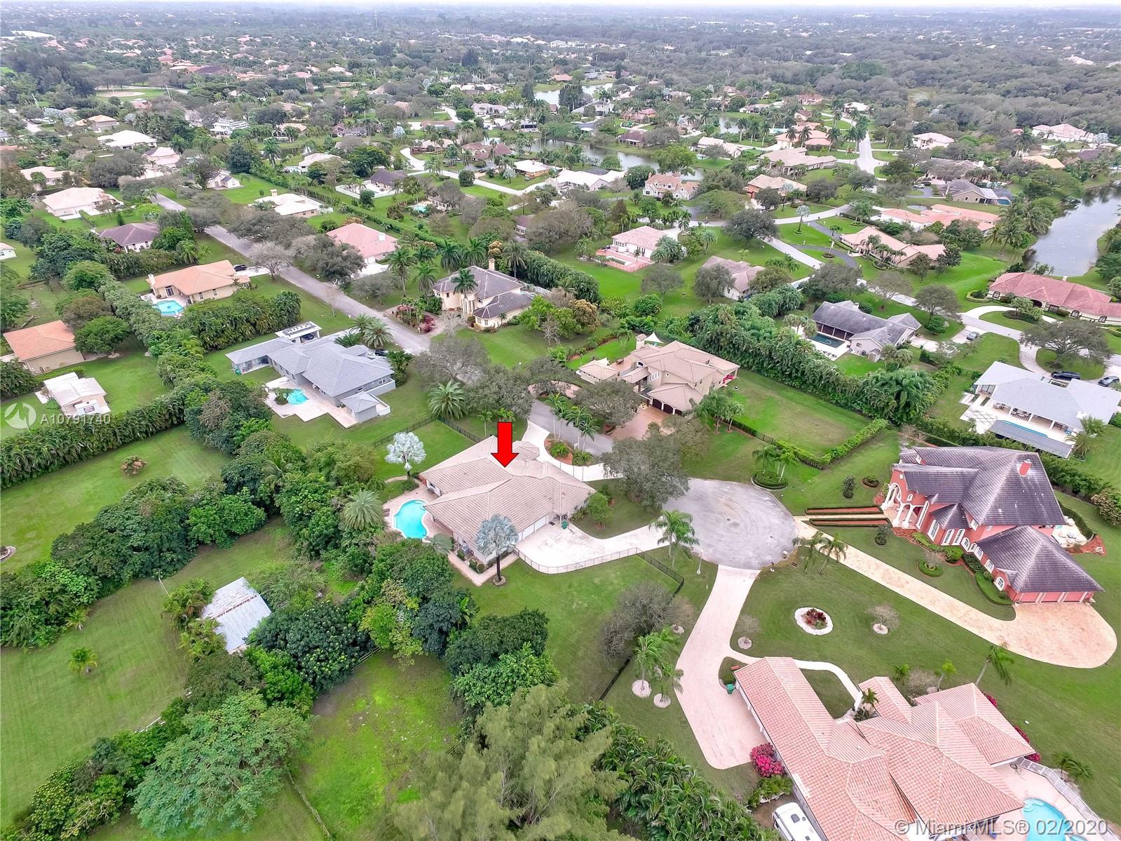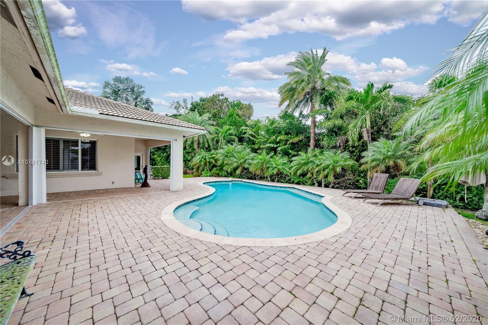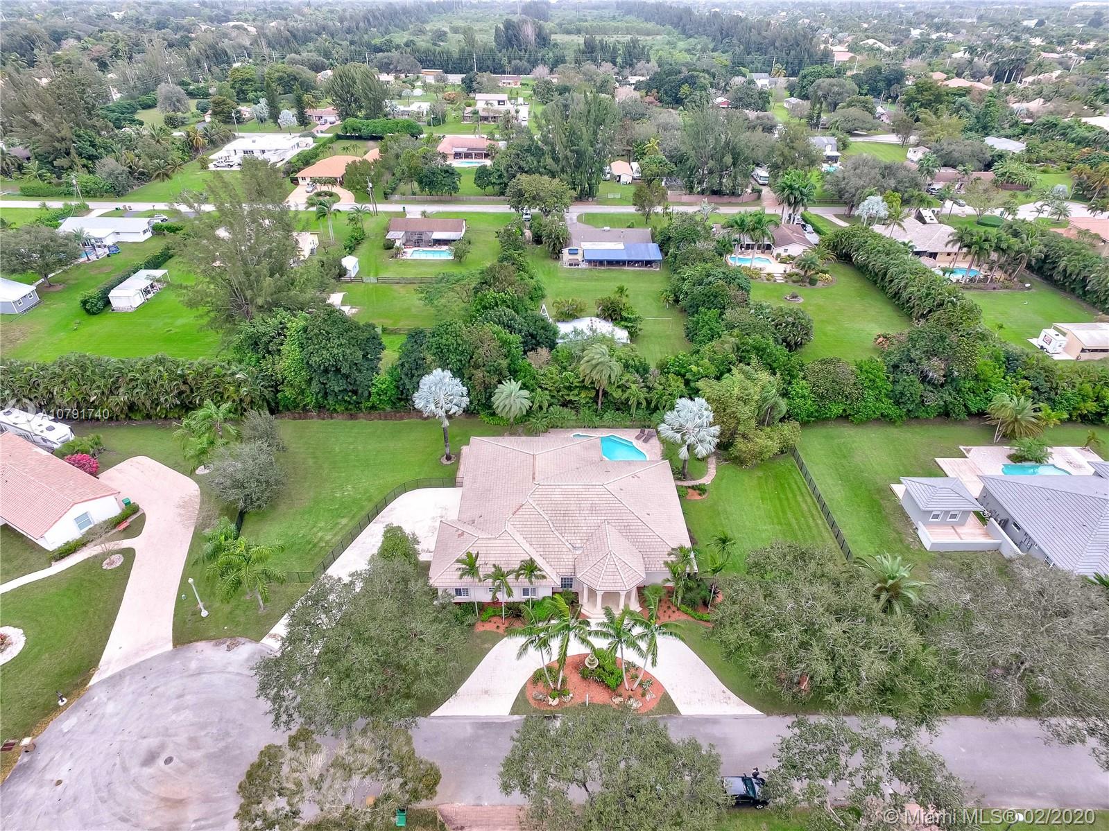 HUGE PRICE REDUCTION! $40K. A Spacious Expertly laid out custom pool home built in 2002, nestled on a quiet cul-de-sac, in the family safe neighborhood of Oakwood Estates in Davie. The home features freshly landscaped gardens with a cove, walking path, and lush tropical trees surrounding close to an acre of land. The four bedrooms are split, Master has own wing w/ extra bonus room for office, nursery or gym, expansive master bath w/dual sinks, tub, shower, lots of light. The guest room is private, with en suite bath, and is situated separate from the main bedrooms. The last 2 bedrooms are perfect for the children, with a Jack and Jill spacious bathroom. Additional features include custom closets, separate bar area, security system w/ cameras, landscape lights, 3 HVAC units, laundry room.