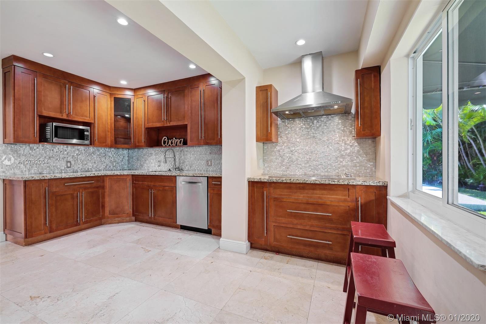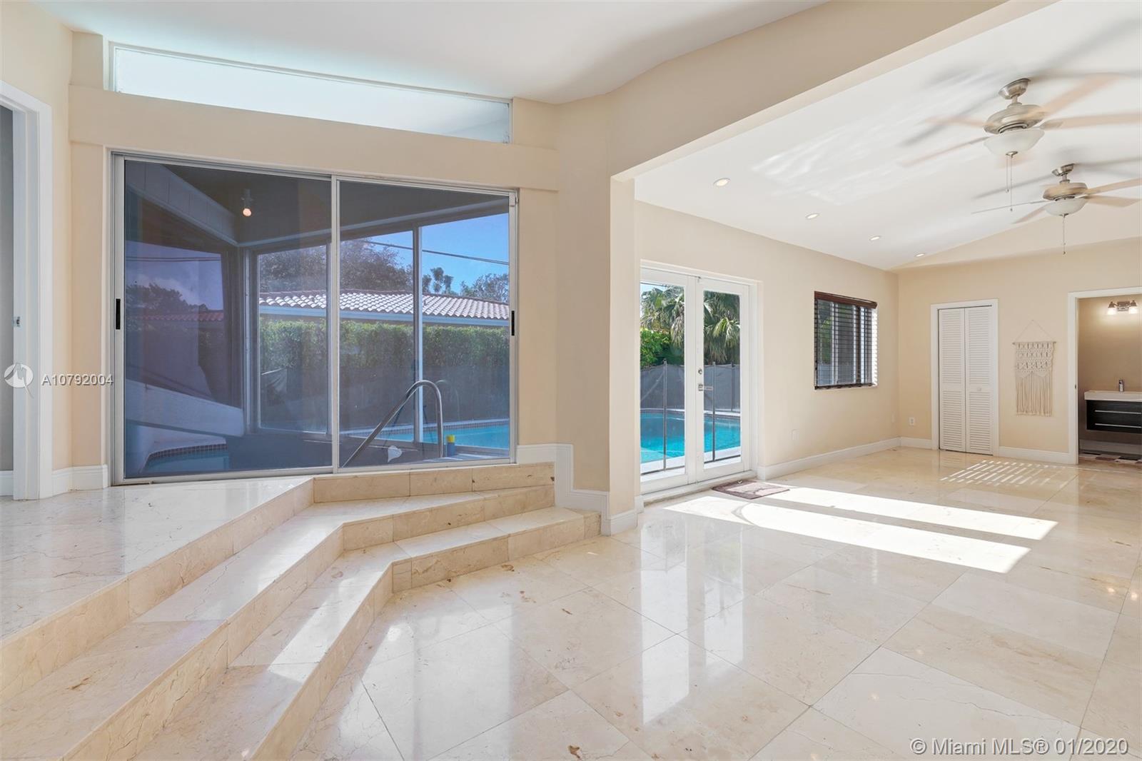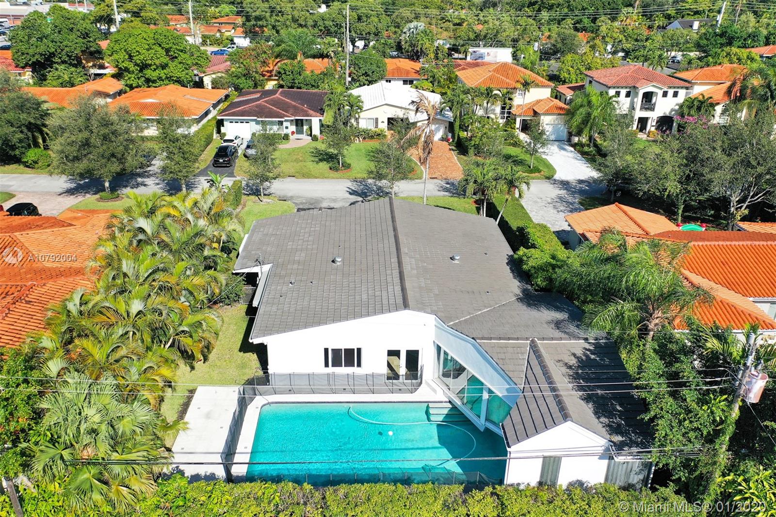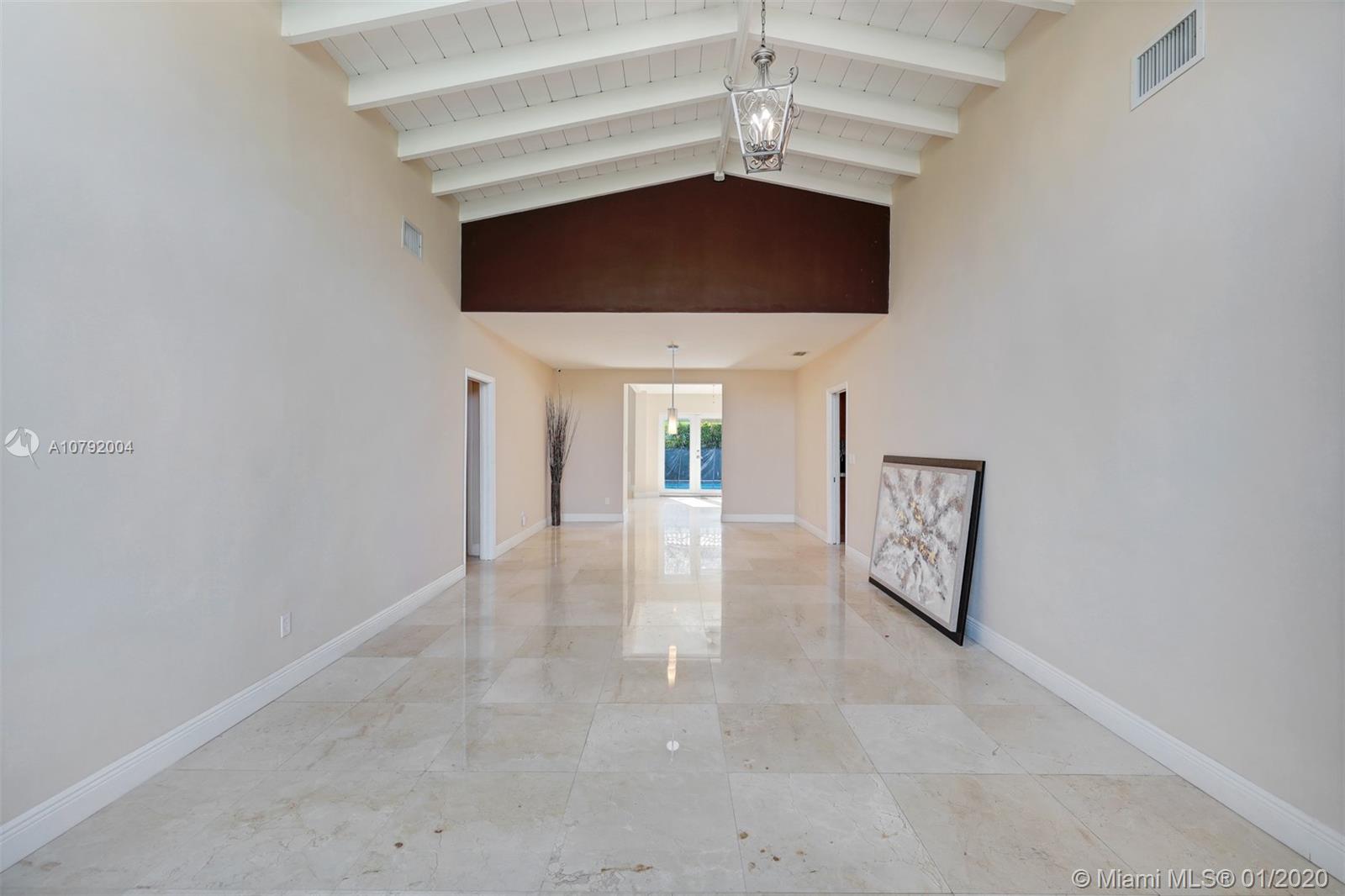 Charming Mid-Century home. This home features 3 bedrooms /3 baths and a floor plan that is fluid and functional for great entertainment. Enter to exposed wood beam vaulted ceilings in the living/dining room area. Beautiful upgraded kitchen with top of the line appliances. Marble floors, Bathrooms tastefully remodeled. Master bedroom is very spacious and it has " his and hers walk-in closet". Family room with adjacent bar area. Beautiful pool to enjoy Florida living where fun and sun go hand in hand! Mostly impact windows and doors, some hurricane shutters. 2 car garage, Large pantry. Close to University of Miami, Restaurants, Hospitals and shopping centers. As per appraisal living space is 2292 sq.ft.