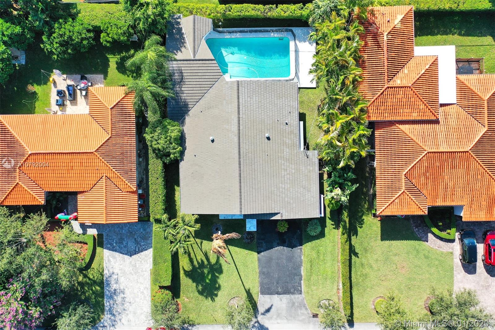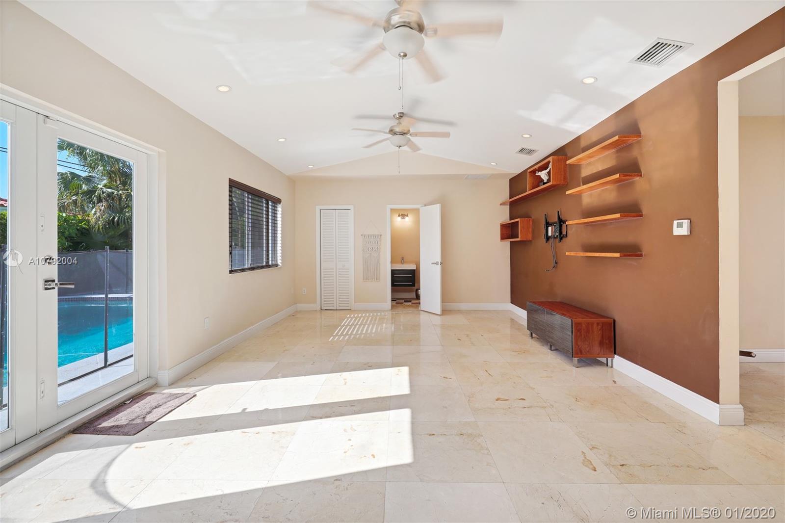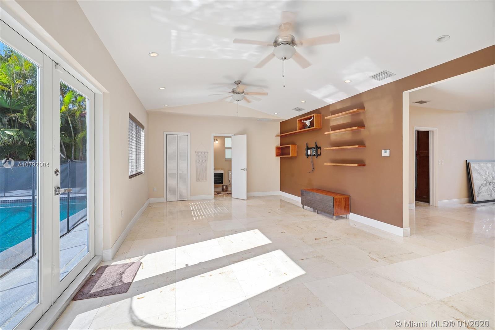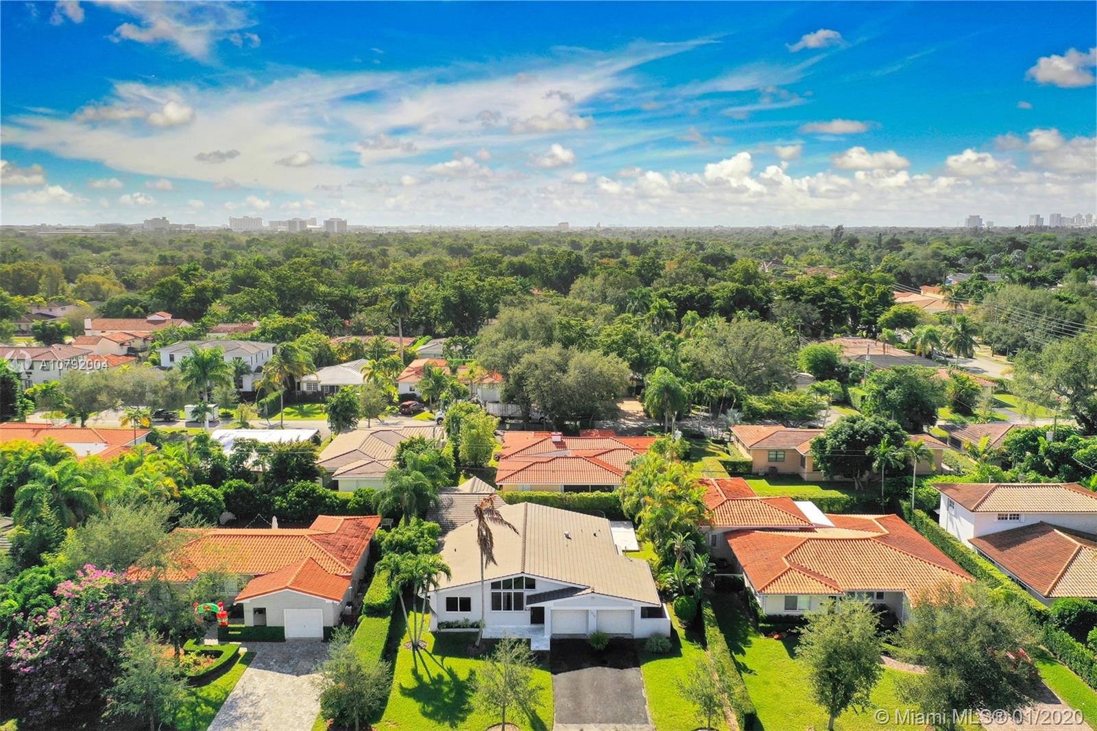 Charming Mid-Century home. This home features 3 bedrooms /3 baths and a floor plan that is fluid and functional for great entertainment. Enter to exposed wood beam vaulted ceilings in the living/dining room area. Beautiful upgraded kitchen with top of the line appliances. Marble floors, Bathrooms tastefully remodeled. Master bedroom is very spacious and it has " his and hers walk-in closet". Family room with adjacent bar area. Beautiful pool to enjoy Florida living where fun and sun go hand in hand! Mostly impact windows and doors, some hurricane shutters. 2 car garage, Large pantry. Close to University of Miami, Restaurants, Hospitals and shopping centers. As per appraisal living space is 2292 sq.ft.