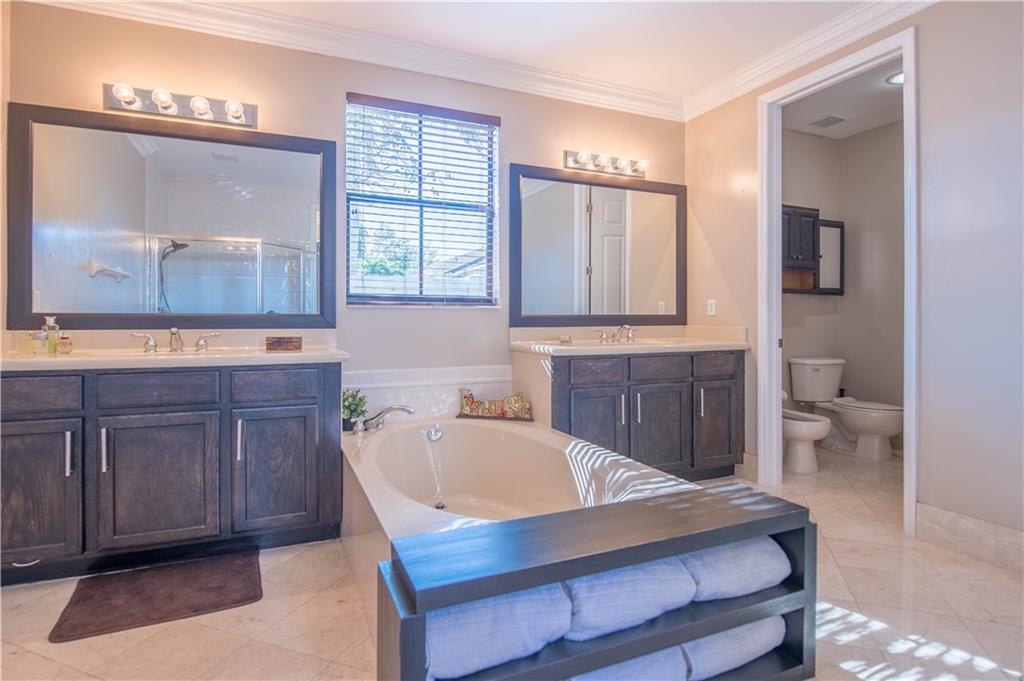 Spacious one-story courtyard house with 4 bedrooms and 2.5 baths in the main house and a guest house with 1bed/1bath. Beautiful upgraded kitchen and bathrooms, neutral colors, tile in the main areas and wood floors in all the bedrooms. Gorgeous extended and fenced patio with new travertine marble floors with extra privacy, excellent for entertaining.