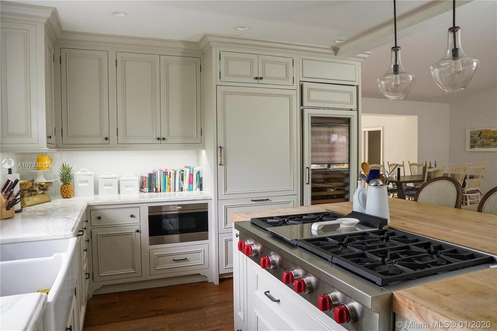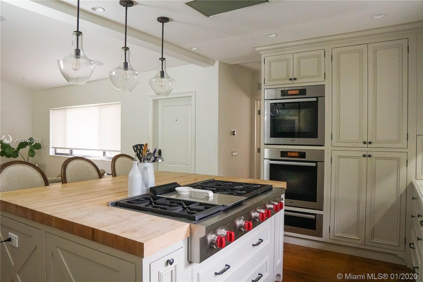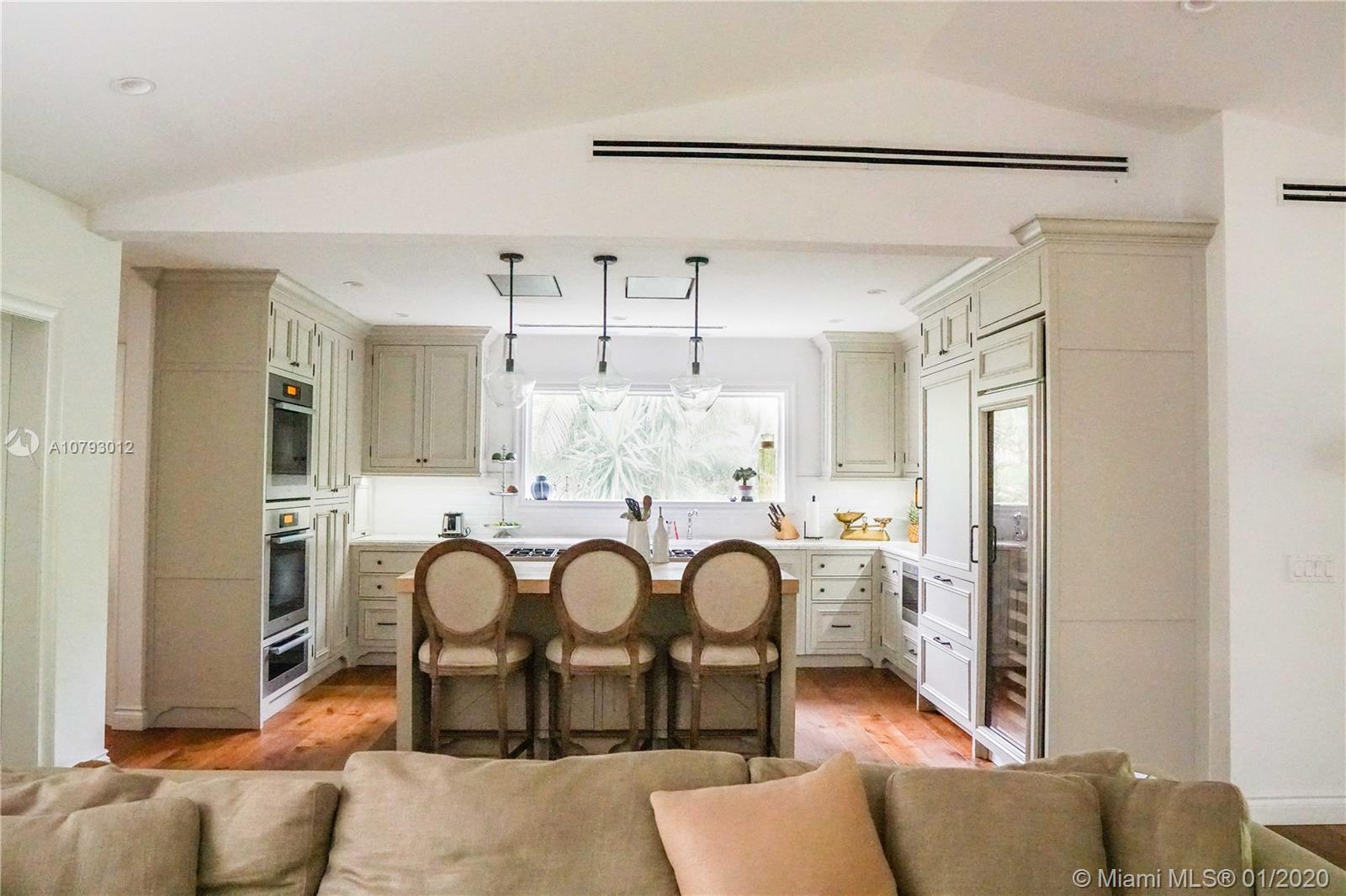 Completely remodeled in 2015, this spacious home in sought out Miami Shores neighborhood is east of Biscayne Blvd. This 1930 Sq. Ft. house offers 4 bedrooms,2 ½ bathrooms.The 4th bedroom is currently being used as an office/den. The home includes a custom, state of the art kitchen with 2 Miele wall ovens plus warming drawer, Sub-Zero refrigerator,150 bottle wine-fridge,Wolf 6-burner gas stove and griddle on a large cooking island with seating, Rohl Faucets, and tons of cabinet space.Solid oak wood floors throughout.The home has complete impact windows and doors,1 year old aluminum roof, Whirlpool washer and dryer, Dual A/C,All LED lighting,Toto toilets, and many more upgrades.Completely fenced in. QUIET STREET! All electrical and plumbing was replaced during the 2015 remodel.
