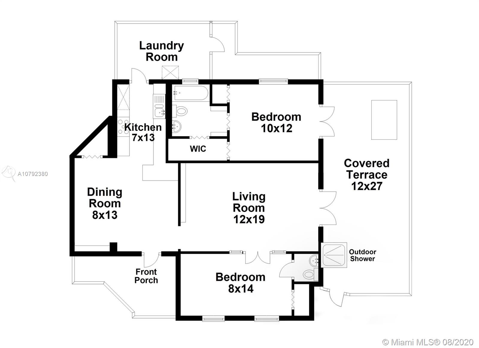 In the heart of the quiet South Grove, this 2 bed / 1 1/2 bath is one of 8 free-standing bungalows that share the surrounding gardens and community pool. It boasts vaulted ceilings, hardwood and tile flooring, new roof, new impact windows, new washer/dryer unit and new stainless steel appliances. A private outdoor hot tub and shower highlight the enclosed patio space. Walk or bike to the Grove's village center cafes and boutique shopping. Two assigned parking spaces.