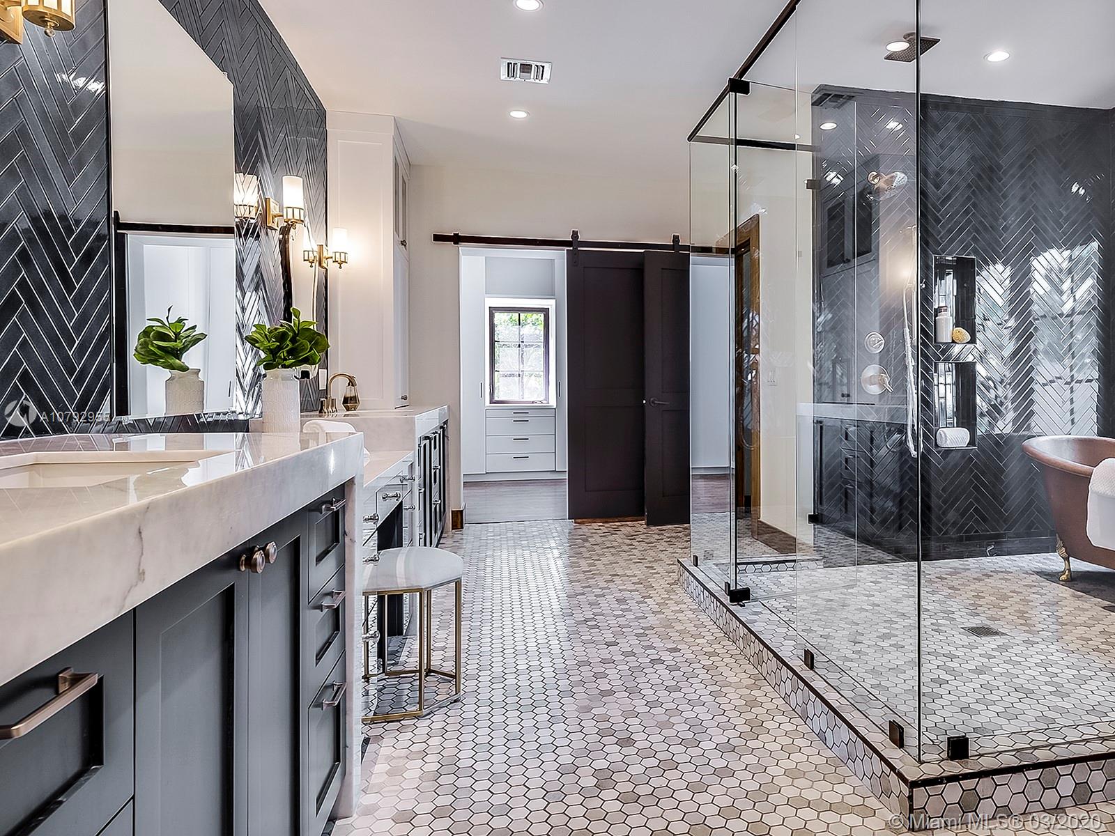 Located on an oversized triple corner lot in the prestigious Golden Triangle, this tastefully remodeled Coral Gables estate offers elegant living with Spanish style architecture! The 29,040 sf lot is gated offering privacy; it has picturesque mature oak trees, 30-foot-long heated pool & jacuzzi. Inside, the fully updated home was re-envisioned by architect Ramon Pacheco and the interior design was completed by Errez Design. This magnificent home has 6 bedrooms, 7 full baths, +2 half baths, staff quarters, a separate 2/2 detached guest house, a 700 bottle walk-in wine cellar, butler’s pantry, outdoor kitchen & 3 car garage. The energy efficient home was brilliantly redone with numerous premium features both inside & out, plus is tech ready.