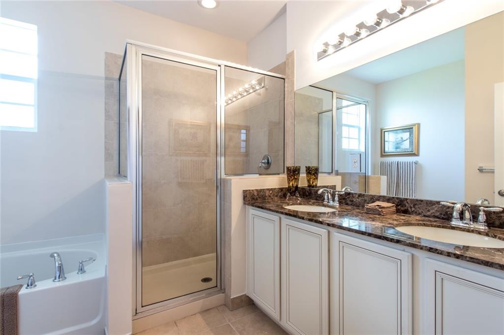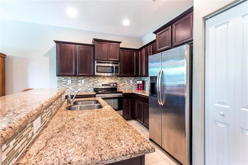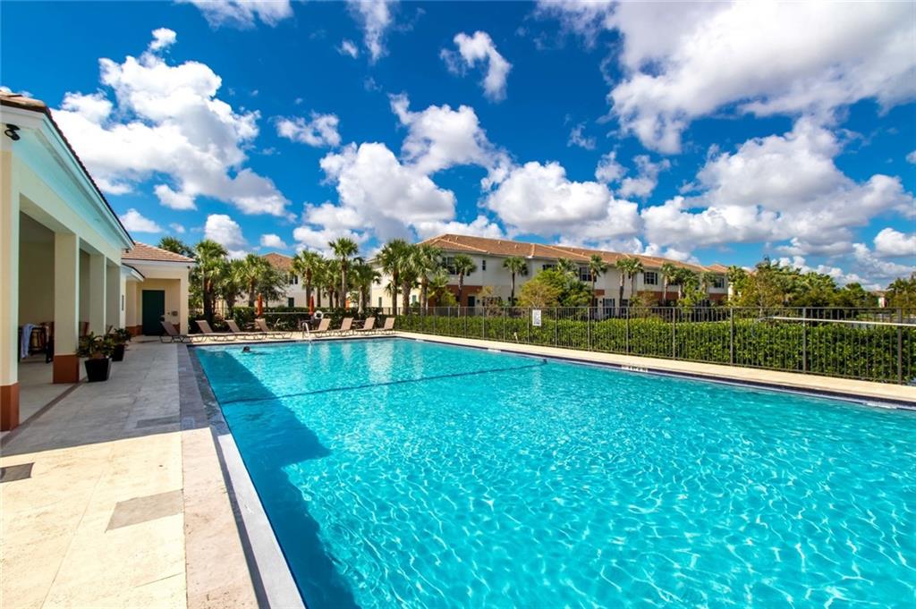 3 Bedroom 2.5 bathroom townhouse with many upgrades. First floor has tiled floors, open floor plan Kitchen with stainless steel appliances, and granite counter tops, breakfast bar, Living room, Dinning room, Den, High ceilings Impact windows. Large Master Bedroom with walk in closet and luxurious on suite bath. Full size washer and dryer on second floor . Resort style community with pool, club house, gym, bike/jog path. Room Dimensions are estimates.