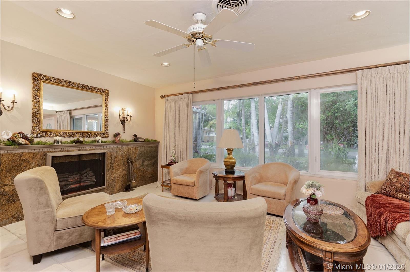 Three bedrooms and three full bathrooms East of US-1 in Miami Shores. Corner lot with koi pond, screened in pool, outdoor kitchen and attached 2-car garage with 1/2 bath. Big eat-in kitchen open to the dining room. Enormous family room overlooking the pool and garden. Great bedroom split, 2 master bedrooms. Walk-in closets and plenty of other storage space. Big living room with fireplace, bonus room can be office or 4th bedroom. Enjoy the bay breezes. Impact windows and newer roof.