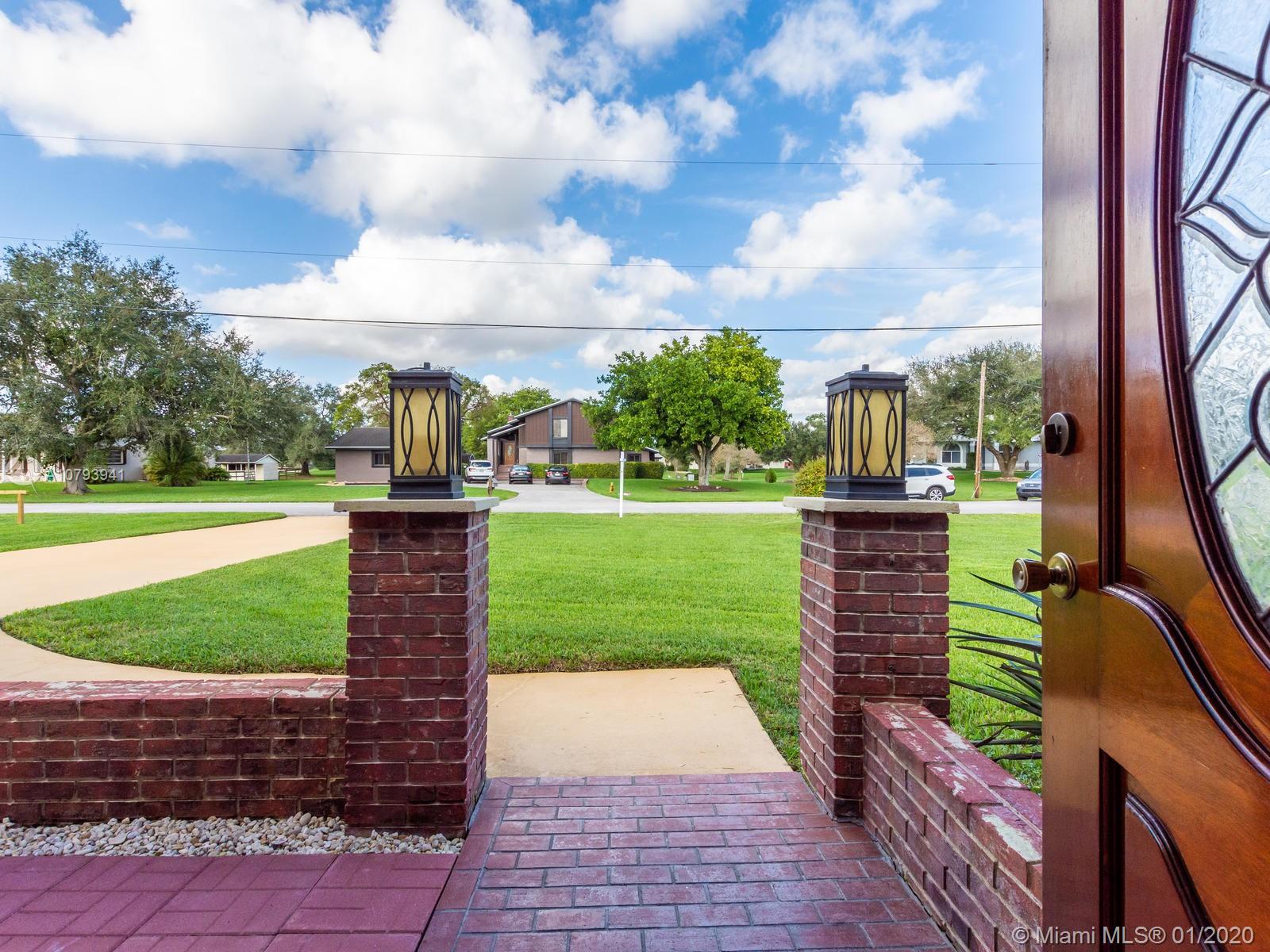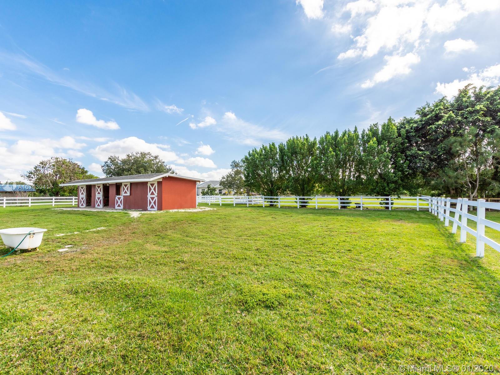 This is it! No HOA! Bring your Horses, RV's, Boat!! This ranch home is sitting on a builders acre, on a cul de sac! There is a 3 stall barn with a tack room! White PVC fencing The kitchen is remodeled with wood cabinets, marble counter tops and LED lighting. The roof was installed in 2009. Brand new waterproof wood vinyl flooring thru-out entire home. Matching mahogany doors with leaded glass on front and beveled glass on French doors. Both bathrooms have been remodeled. The master has a huge walk in shower! Fully functional brick fireplace! Accordian hurricane shutters, Portable generator rated at 15,000 watts. Capable of servicing entire house including A/C.