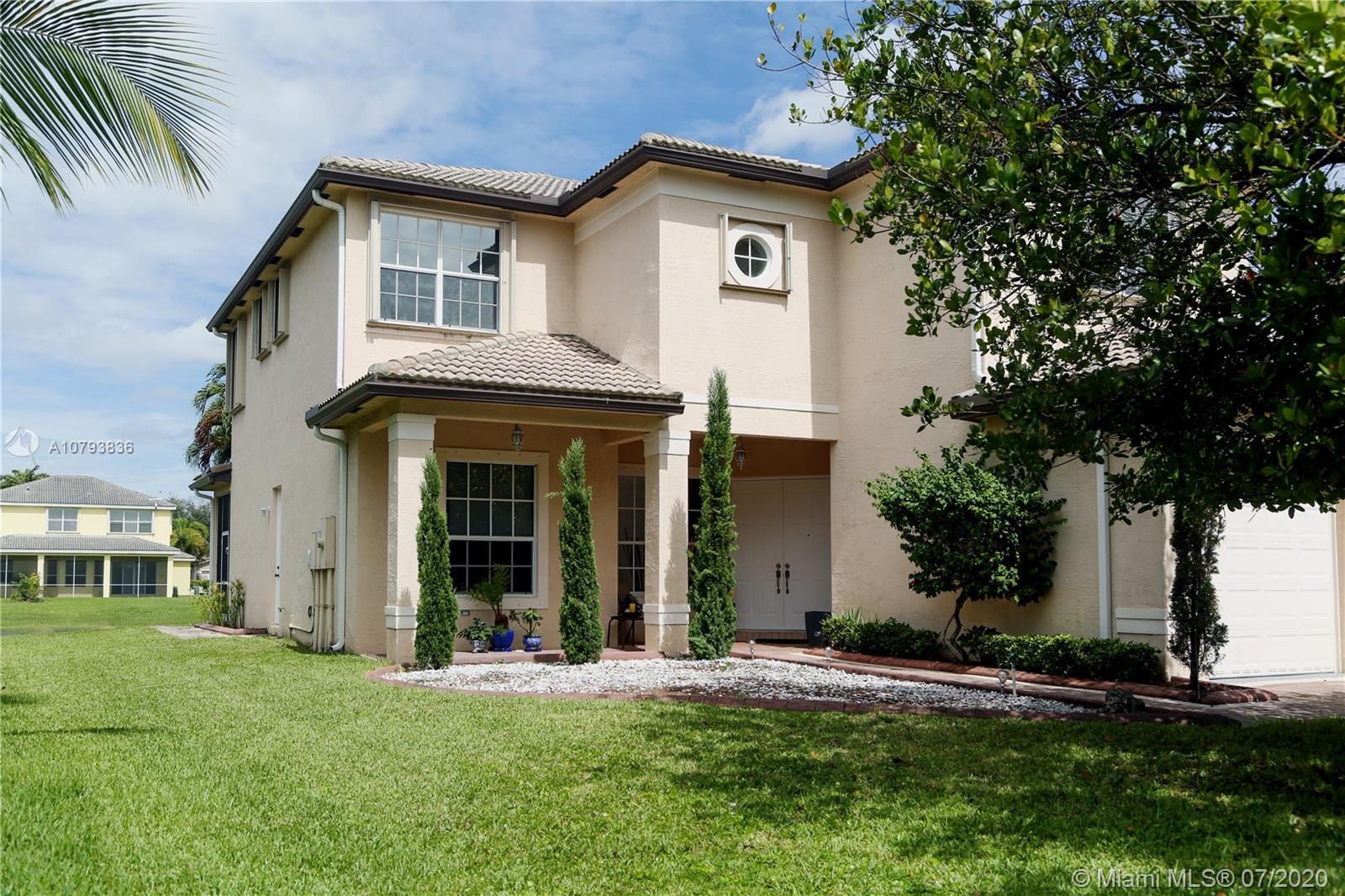 Beautiful House by the Lake, located on a cul-de-sac with a bigger than normal lot in Isles at Sunset Lakes. Owner keeps the property clean and very organized. Screened patio/pool overlooking the lake. Master Bedroom has separate his and hers bathroom. Accordion shutters on all second floor. Dishwasher, refrigerator, washer/dryer and bigger A/C unit were all replaced within the last year. Gutters were replaced by the seller as well. Laundry room is on the second floor. First floor has tile and second floor wood/carpet. Huge Clubhouse overlooking a massive lake. Very good schools within the immediate area. Easy to show as the owner keeps it pristine.