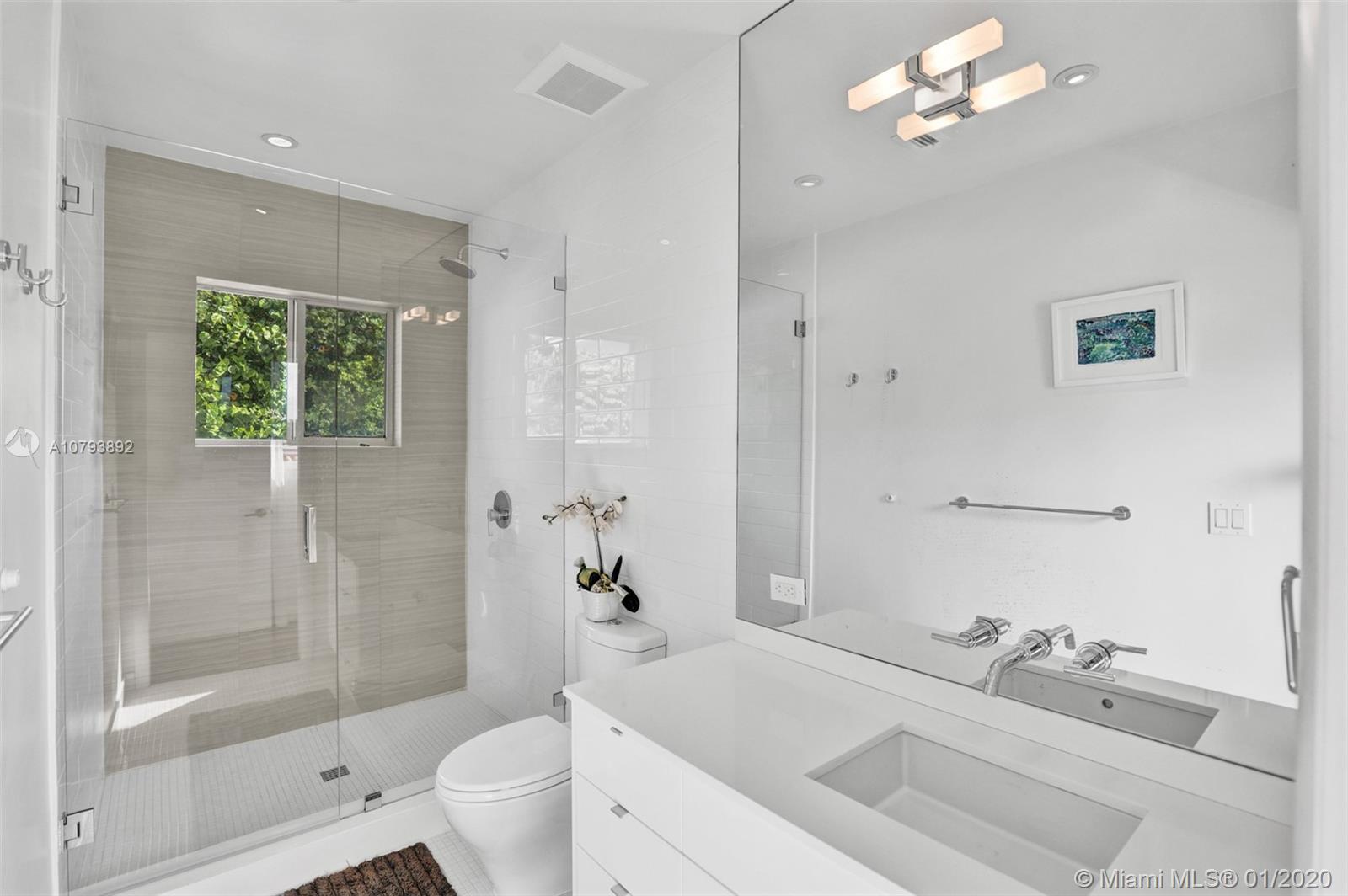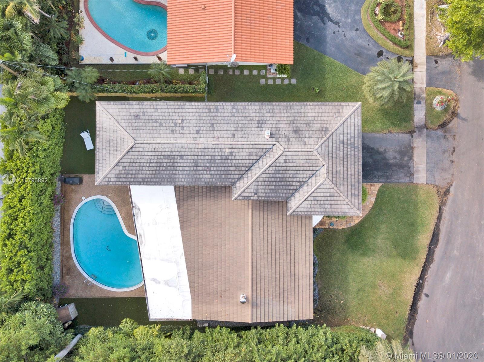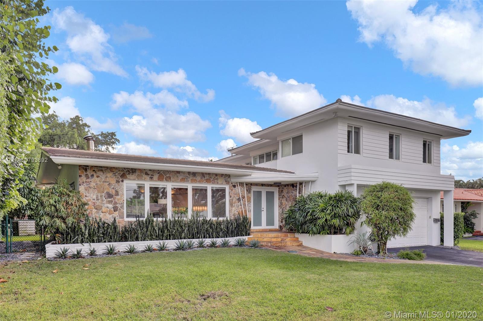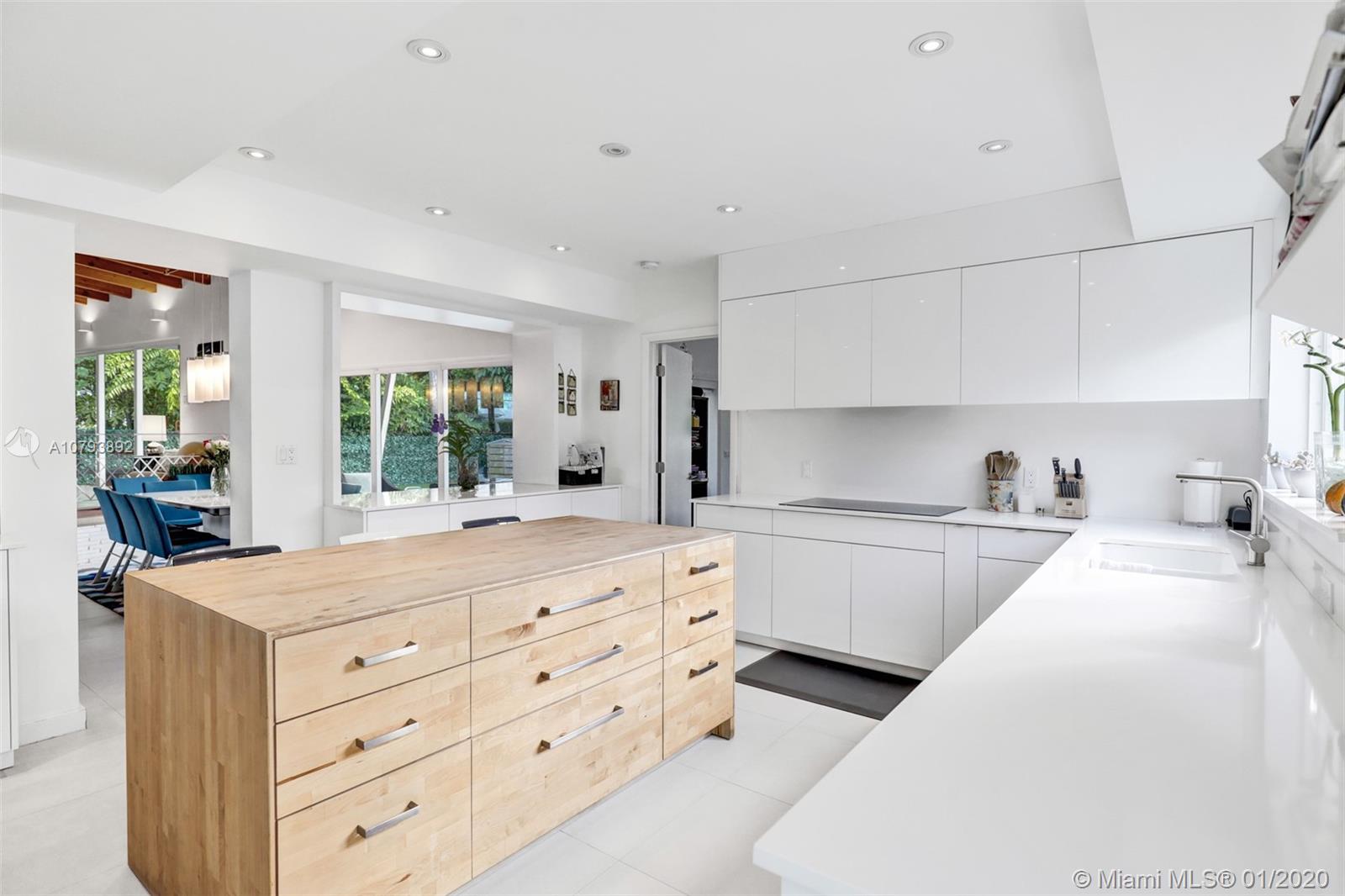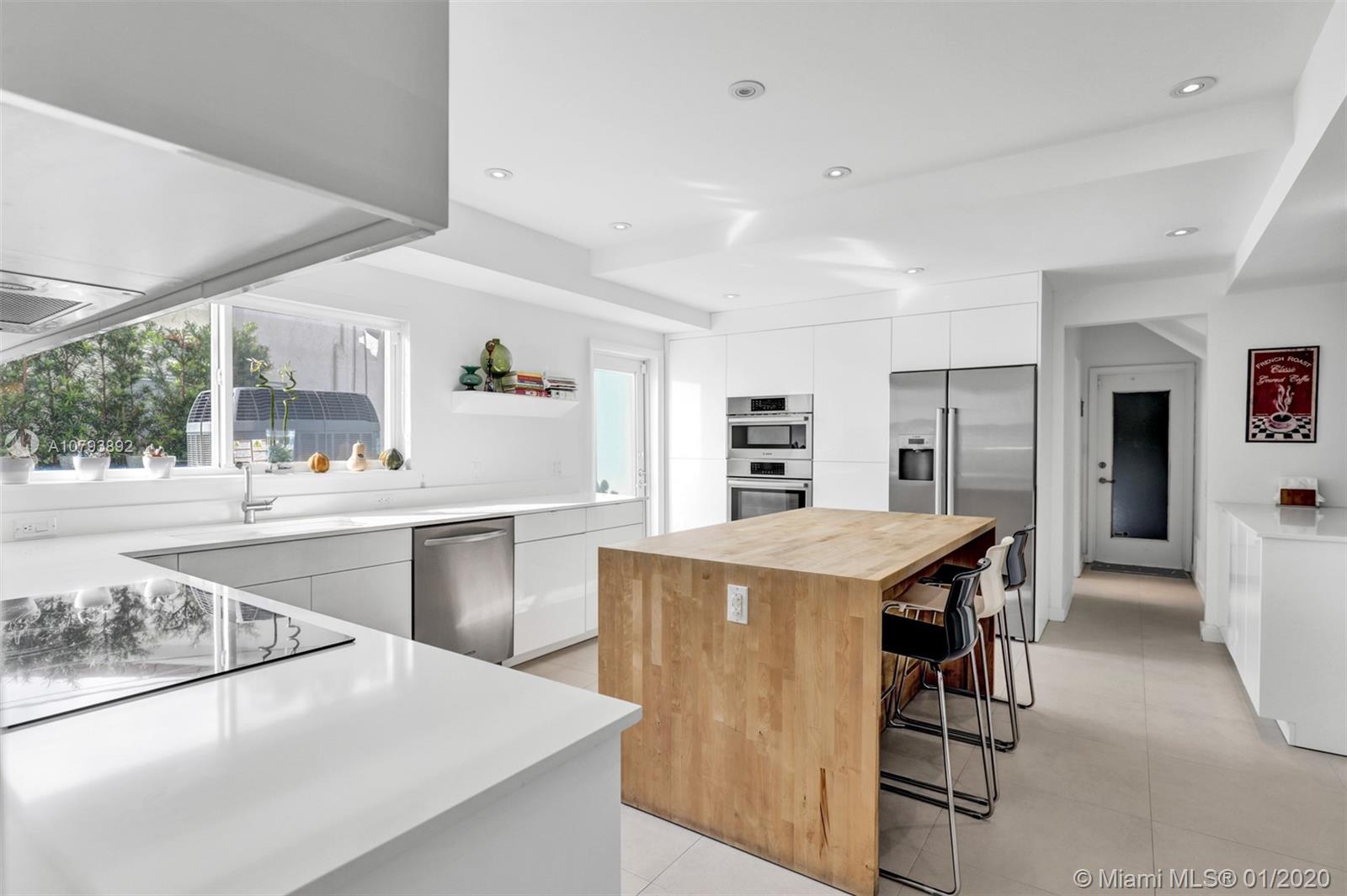 This one of a kind architectural gem is located in east Miami Shores only one house from the bay. Designed by mid century architect Robert Nordin, it boasts an impressive exposed Pine wood ceiling over a spacious living area overlooking the inviting backyard and pool. The traditional use of wood blends beautifully with modern finishes. A 1950's original working fire place adds to the mid century authenticity. Fully renovated in 2016 it has new impact windows/doors, new plumbing/electric, new roof, custom lighting, Bandalux window treatments, a high end kitchen w/custom cabinetry, Bosch appls. plus laundry room. The sumptuous master bedroom offers his/hers baths and a custom walk-in closet. A covered 2 car garage and plenty of storage space abound. This home is a must see and a great value!