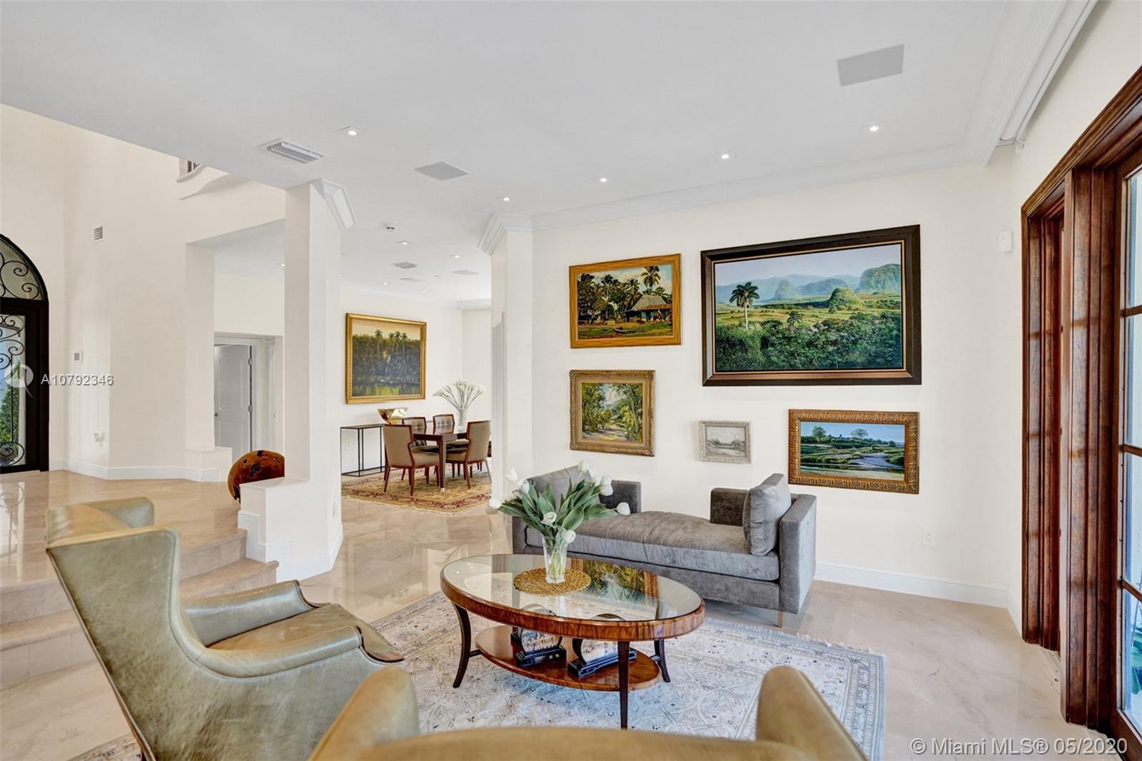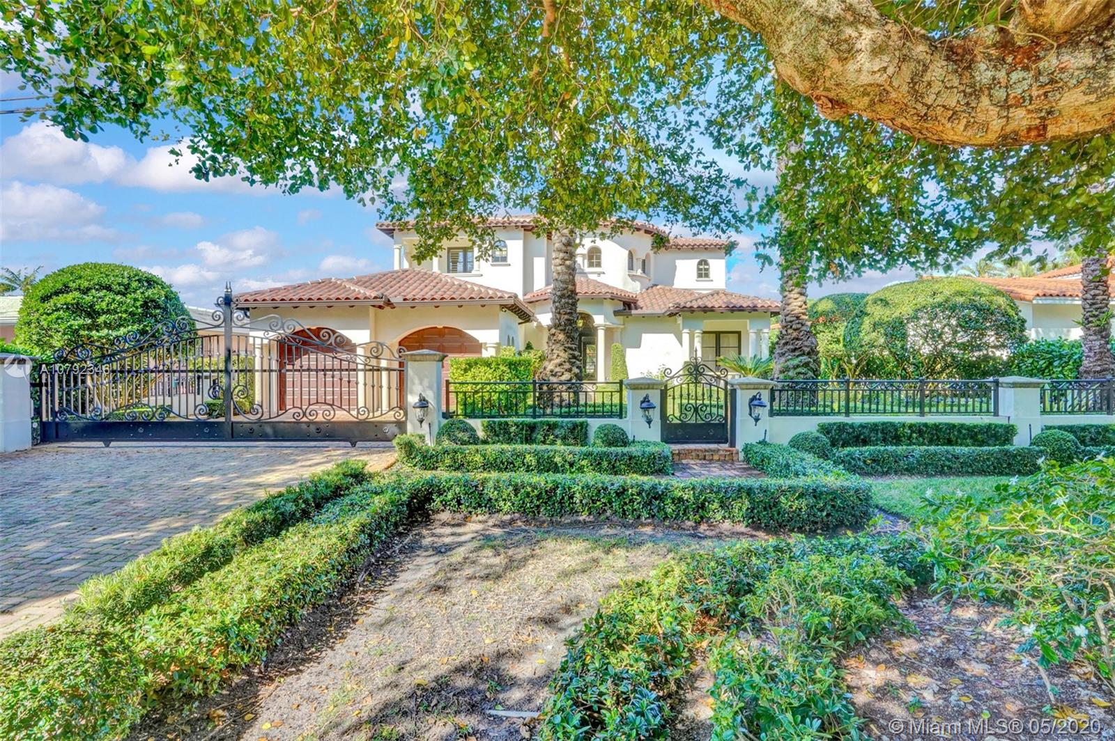 Welcome to your picture-perfect Mediterranean villa! A true boater’s paradise with a seawall, dock, and access to Biscayne Bay. Built in 2001, this move-in ready, gated home is elegantly appointed offering lush landscaping and a functional floor plan. Designed for entertaining with 2 large covered terraces, built-in grill, and a pool. The living room, kitchen and family room all open to the outdoors. A 1/1 ground floor guest suite overlooks the front garden while the 2nd ground floor 1/1 guest suite has its own private entrance. The upstairs grand master suite enjoys a large terrace with a spiral staircase to the pool, a glamorous master bath, and a spacious walk-in closet. Two additional upstairs bedrooms share a Jack/Jill bath. Live in one of Coral Gable's most prestigious neighborhoods!