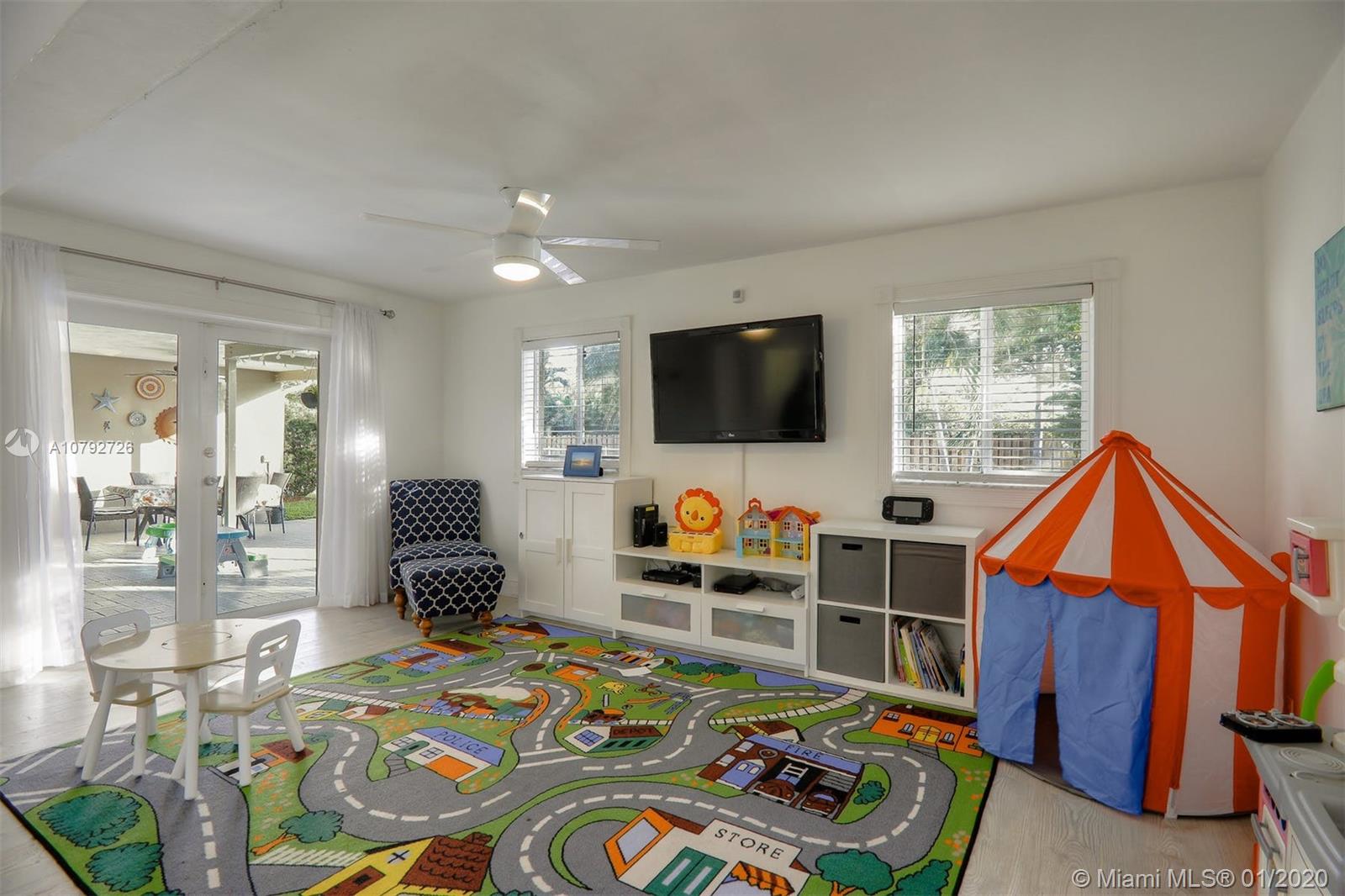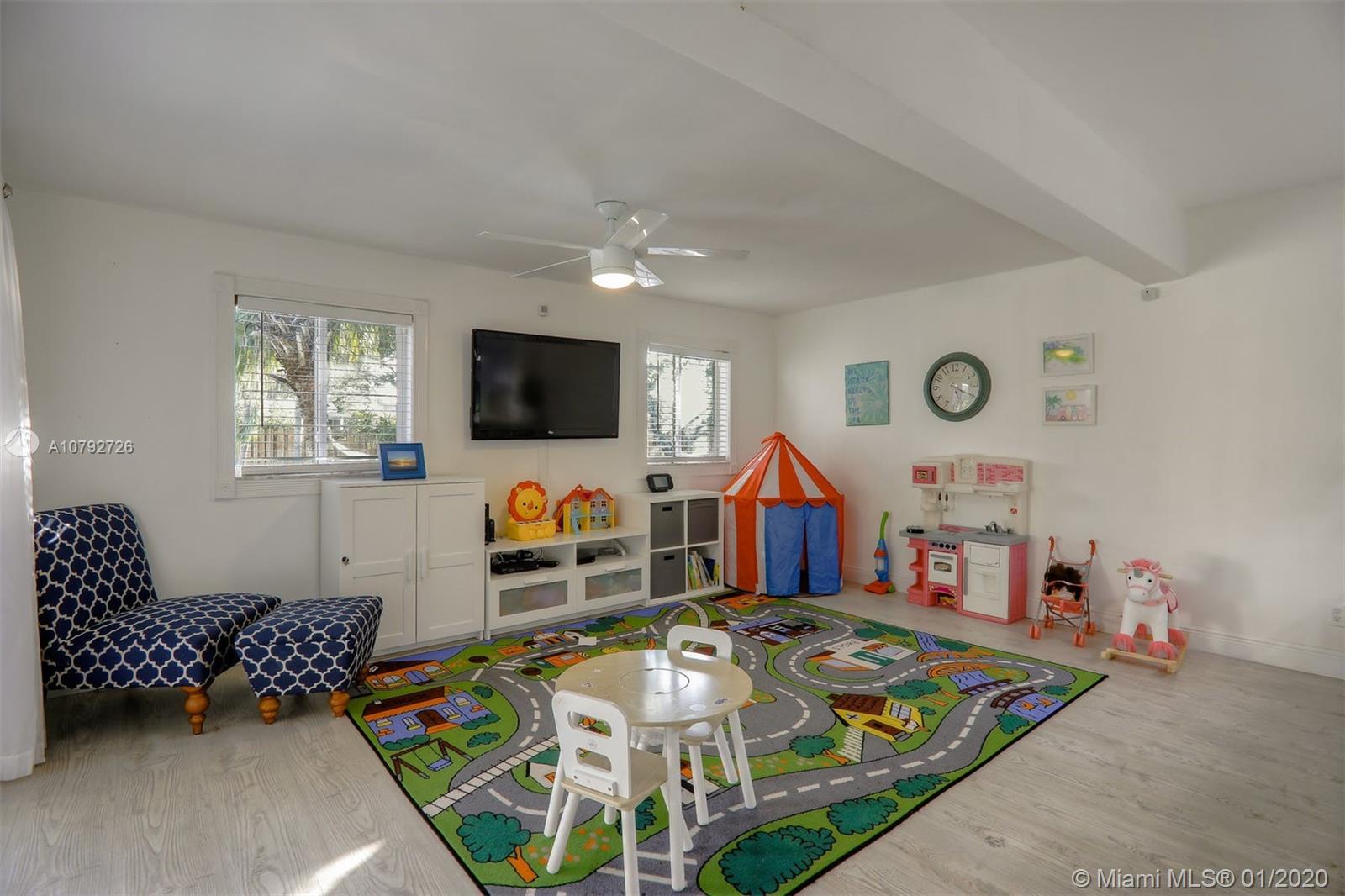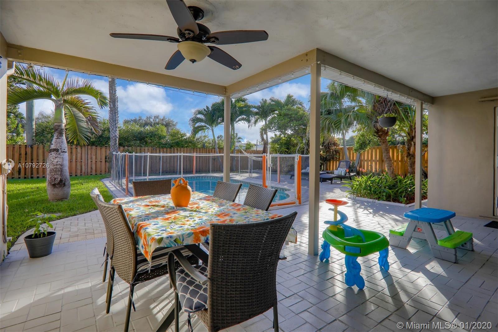 This family home is an entertainer's dream house, with plenty of in-door open areas, a large pool with plenty of outdoor seating both under the roofed area and the open sky area. A lot of work went into making this home modern but timeless at the same time, an interior designer thought of and created each inch of this beautiful home and gave it the features every family dreams of: - Plenty of space to share with an open plan kitchen and playroom/TV room area - A formal dining room area with views of the backyard and the pool - Another large space that's currently being used as another TV area and movie theater with a pre-installed screen and projector, ideal for watching movies, sports, etc - Two completely renovated bathrooms with high-end materials to give it an exquisite look.