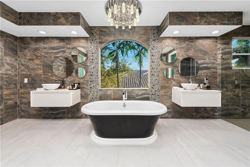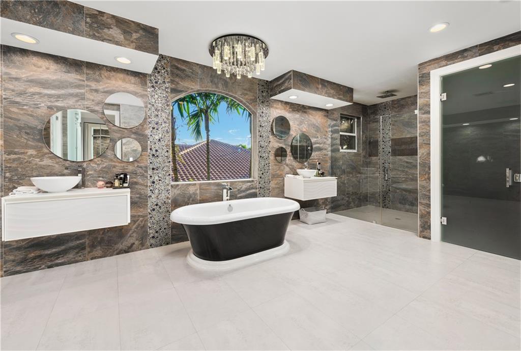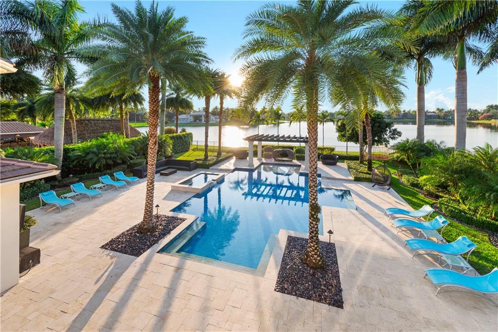 Enjoy amazing lake front, sunset views every day from your resort style pool and backyard. This home is located in the Gated Community of Long Lake Estates and is ready for it's next family. Recent upgrades include: a new roof with a transferable warranty, upgraded resort style pool with underwater speakers, summer kitchen with a full bar, full renovated master bathroom, master bedroom with porcelain tile floors, upgrades floors and bathrooms in additional bedrooms, as well as downstairs powder room and cabana bath!