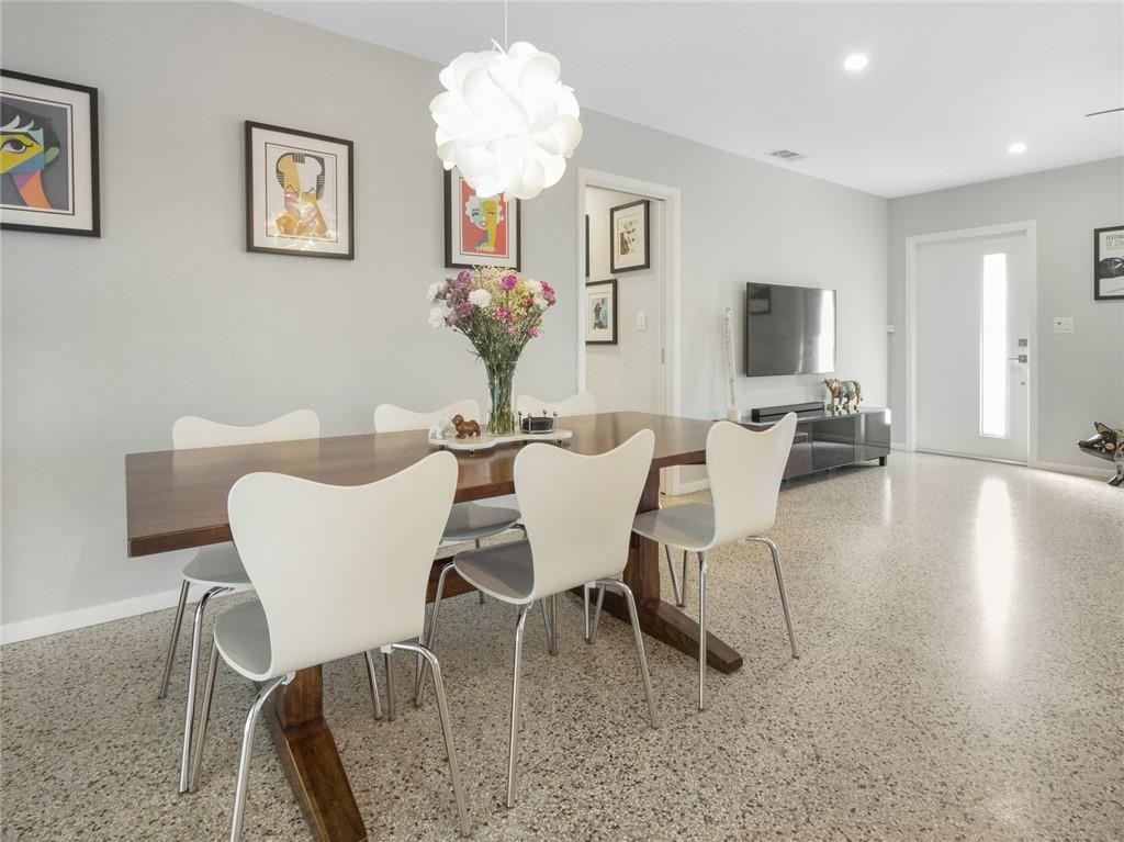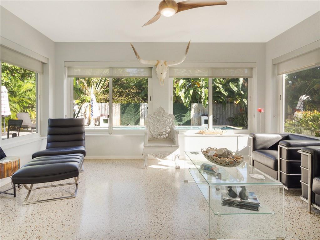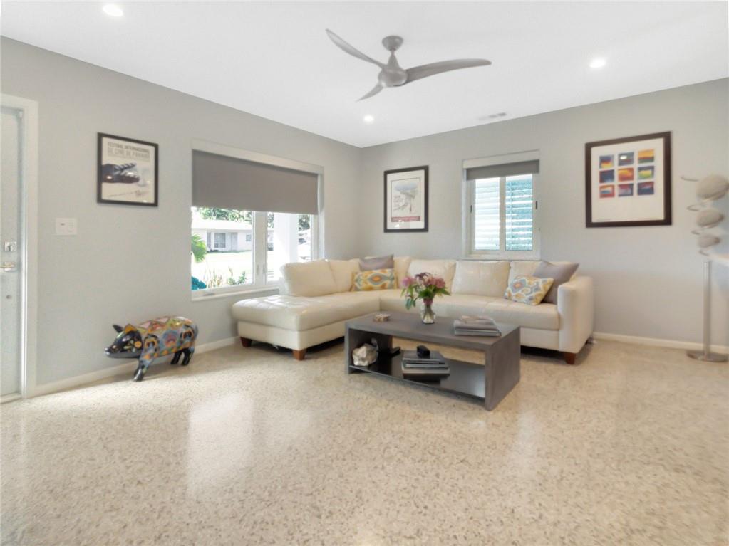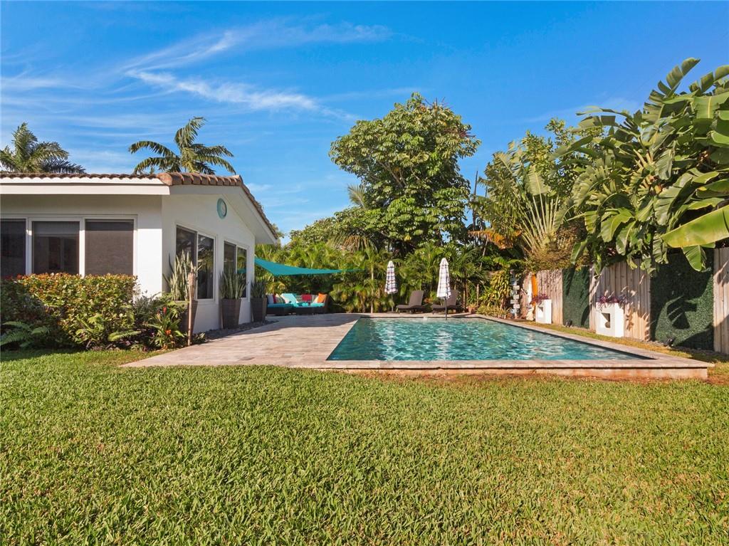 Fantastic curb appeal! As you enter this amazing home you are greeted by pristine terrazzo floors throughout, an open kitchen with SS appliances/quartz counter-tops & a fantastic view to a tropical oasis of a backyard. The home features loads of upgrades including remodeled bathrooms, fantastic saltwater pool with marble pavers, sun shelf & custom lighting, Hurricane impact windows, upgraded electric panel, gas hot-water heater, separate laundry room with new washer and dryer, charming stone pavered driveway, alarm system, newer fence & sprinkler system on a well. Location, Location, Location! This home sits on an interior lot with sidewalks and no through traffic. Don't miss the nicest home in popular Mary Knoll!