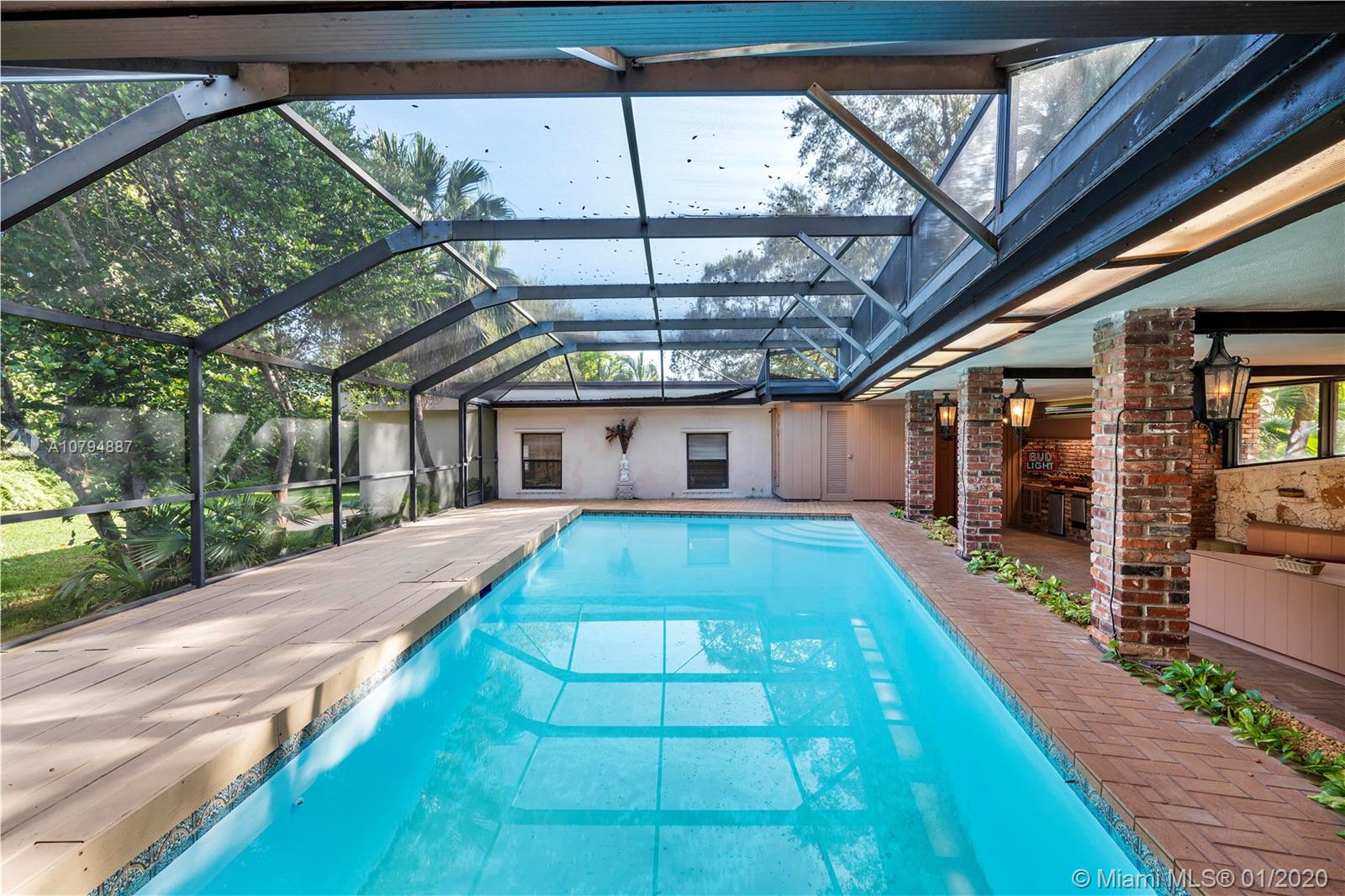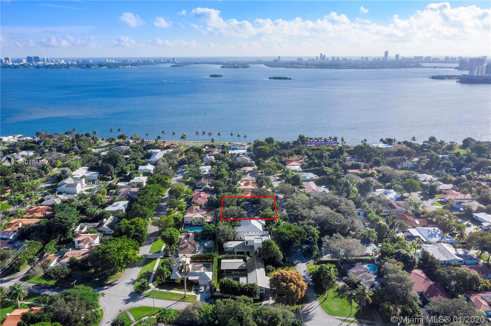 Strategically price so you make this your dream home!! House sit on almost 19,000 SF double lot on the most desirable st in Miami Shores East of Biscayne Blvd. Famous Architect Wahl Snyder’s previously owned & designed this residence just ½ block from Biscayne Bay! Scallion roof design combines ample indoor-outdoor living area. This home will never be duplicated & is reserved to lovers of architecture. All bedrooms overlook the screened-in patio/pool area. Huge master bedroom with separate his & hers walk-in closets, connects to large separate library/office/entertainment room. The house is loaded with flexible space to customize your preference. Open concept living with a formal entry, living, dining & kitchen. Pool cabana, coral wall & new deck. Combined are 7099 SF. 4 car garage.