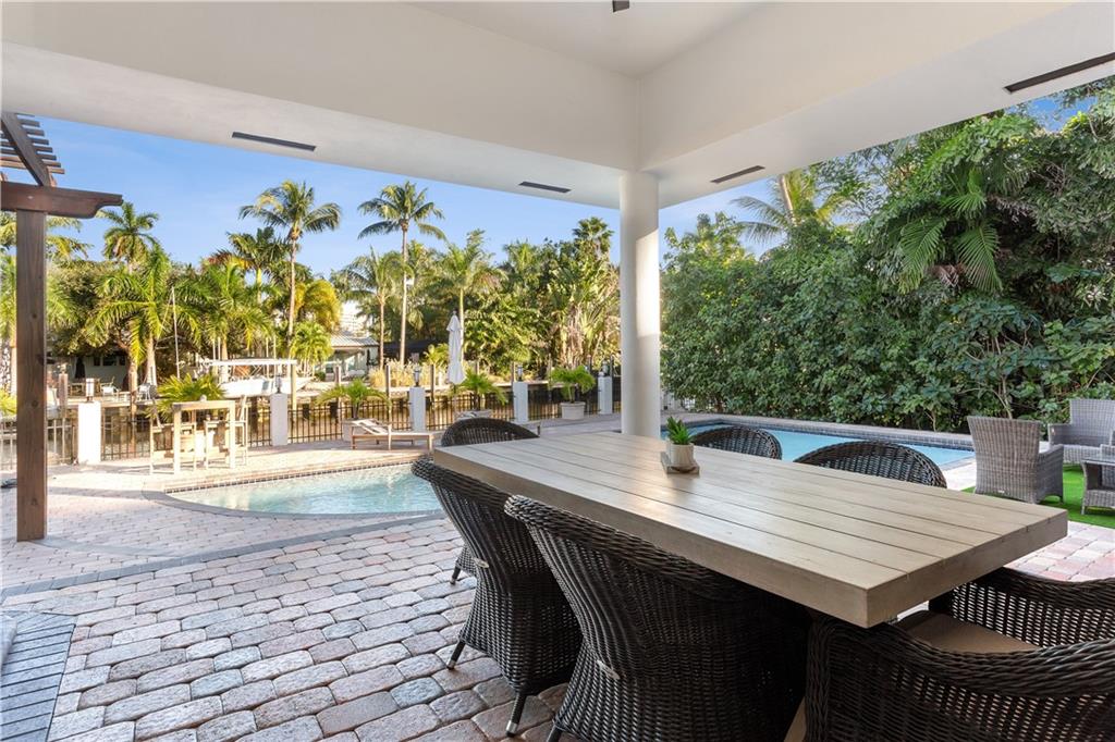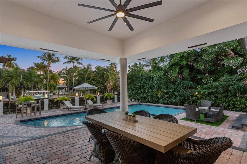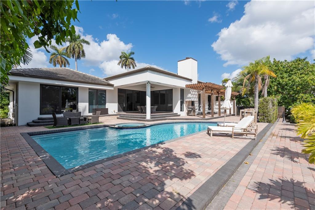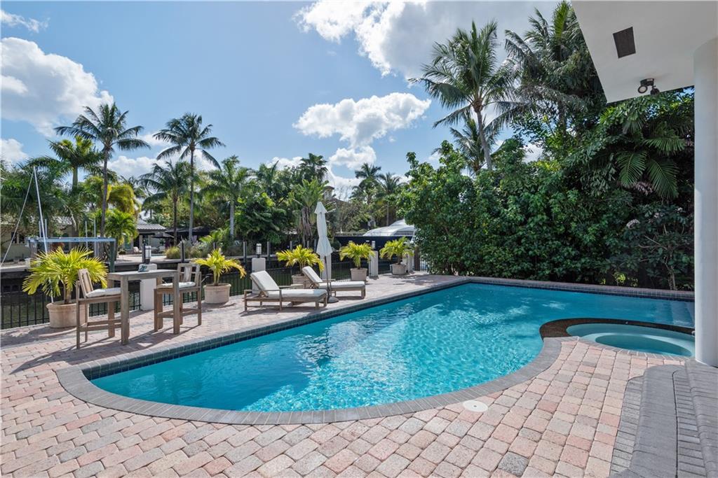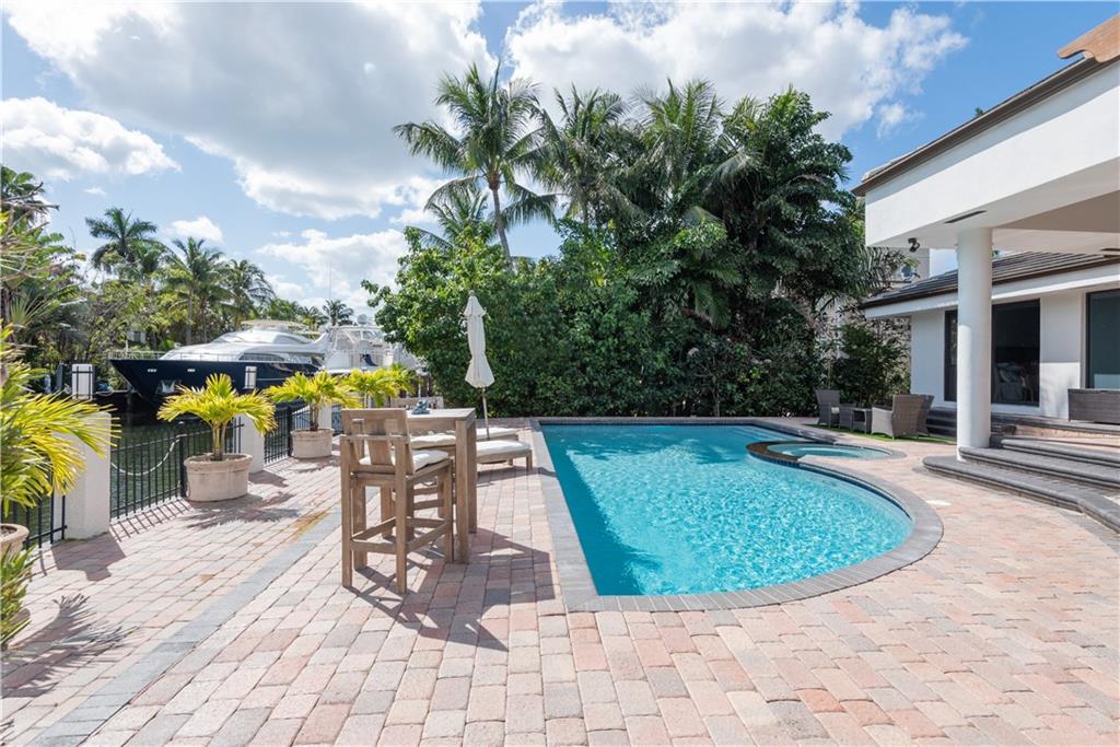 Newly updated one story Las Olas Isle home with 100' of water and an east facing backyard. A stunning double door glass entrance welcomes you into your open living area with walls of glass to enjoy the pool and water views from most rooms. This 4 bedroom + den, 5 bath home is complete with a new gourmet kitchen, updated bathrooms and impact windows and doors. The luxurious master bedroom and bath has two generous sized closets and direct access to the pool area which has a large covered lanai for outside entertainment space. Walking distance to the Shops and Restaurants on Las Olas Blvd and close proximity to the Beach. Private dock with no fixed bridges and ocean access.