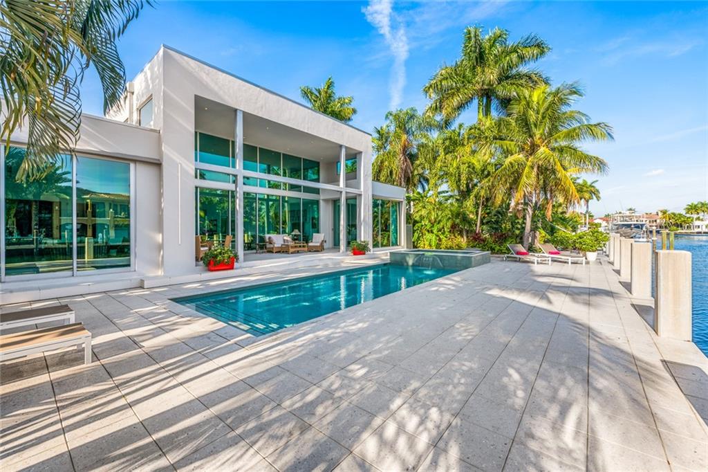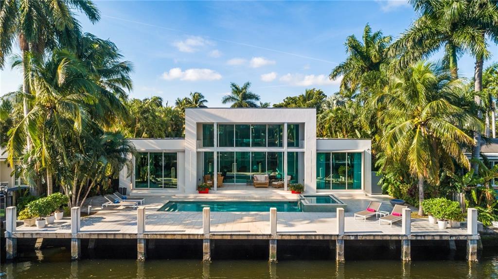 Prepare to live a life of sophisticated luxury surrounded by revolutionary architecture inspired by an ultra-modern design. This deep waterfront estate is ideal for boating boasting a concrete dock, wide canal & no fixed bridges to the Intracoastal & Ocean. The luminous open floor plan, soaring ceilings & walls of glass are conducive to today's lifestyle. The custom culinary kitchen features a large center island, upgraded appliances, gas cooktop, 78 bottle wine cooler & tremendous storage. Multiple stacking doorways integrate indoor & outdoor living spaces that overlook the heated pool, spa & tropical waterway. Additional details included: 2 tankless gas water heaters, whole house water filter, Creston & sound systems, motorized window treatments, back-up generator. Sq Ft from IMAPP.