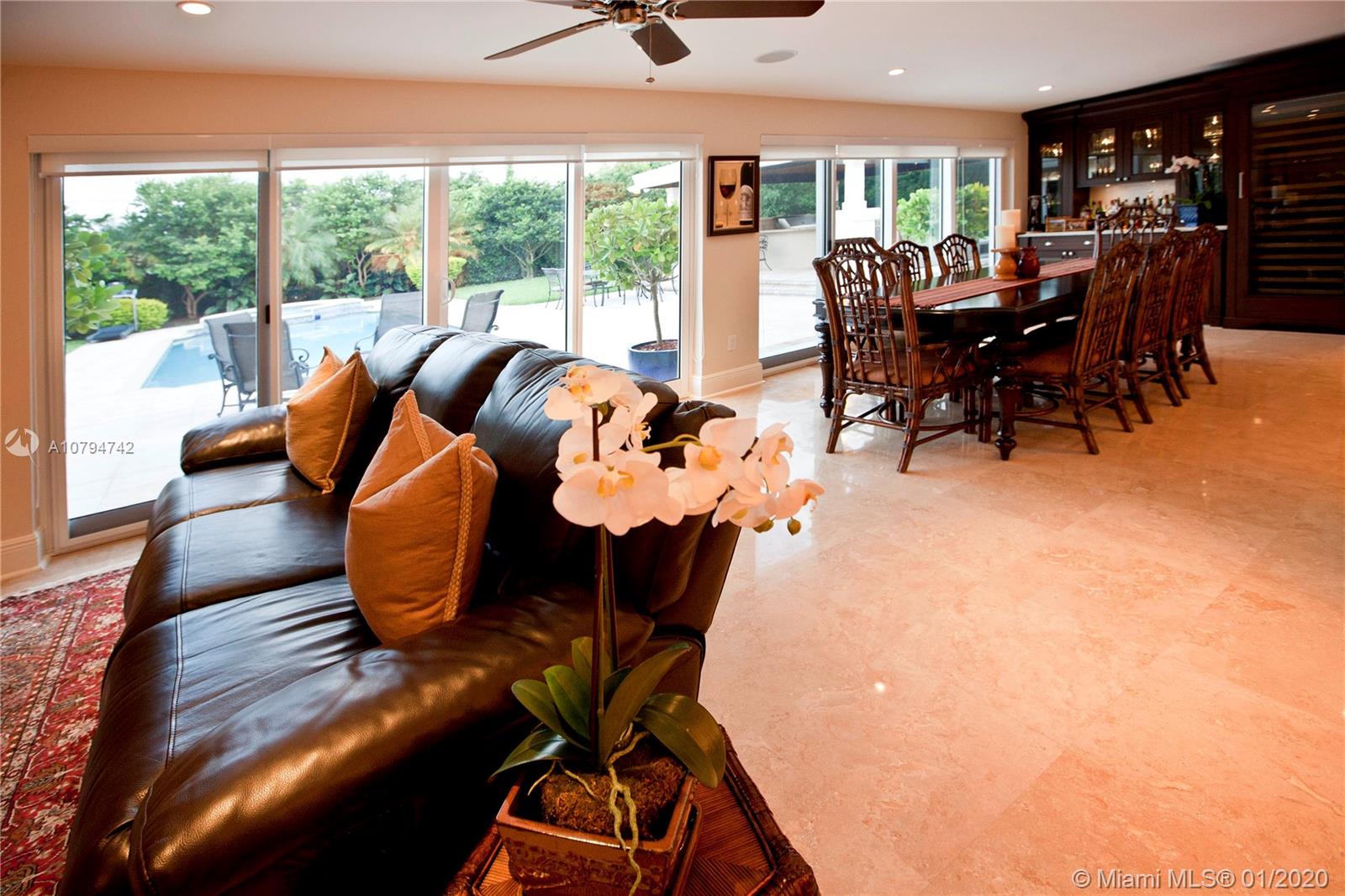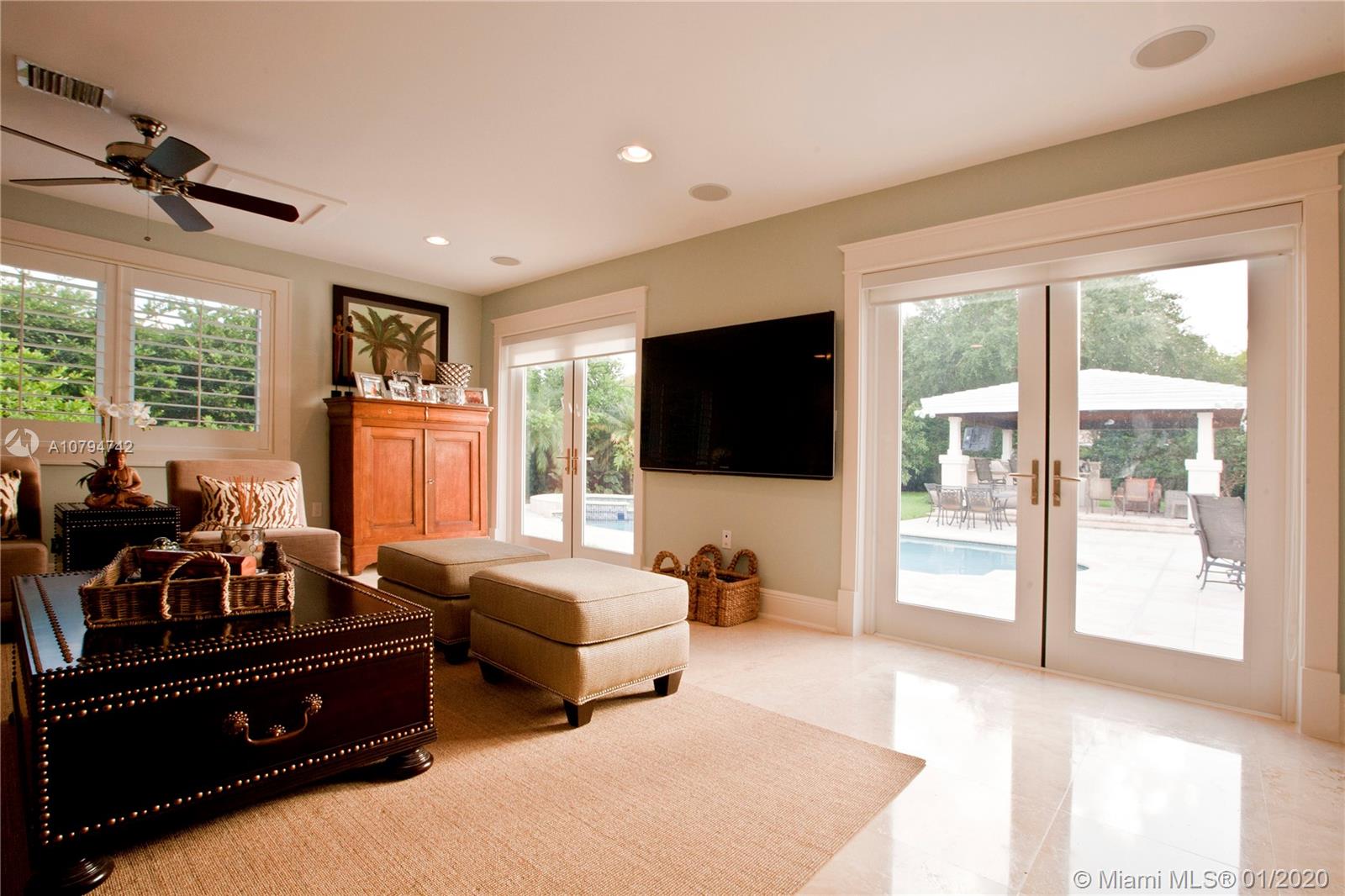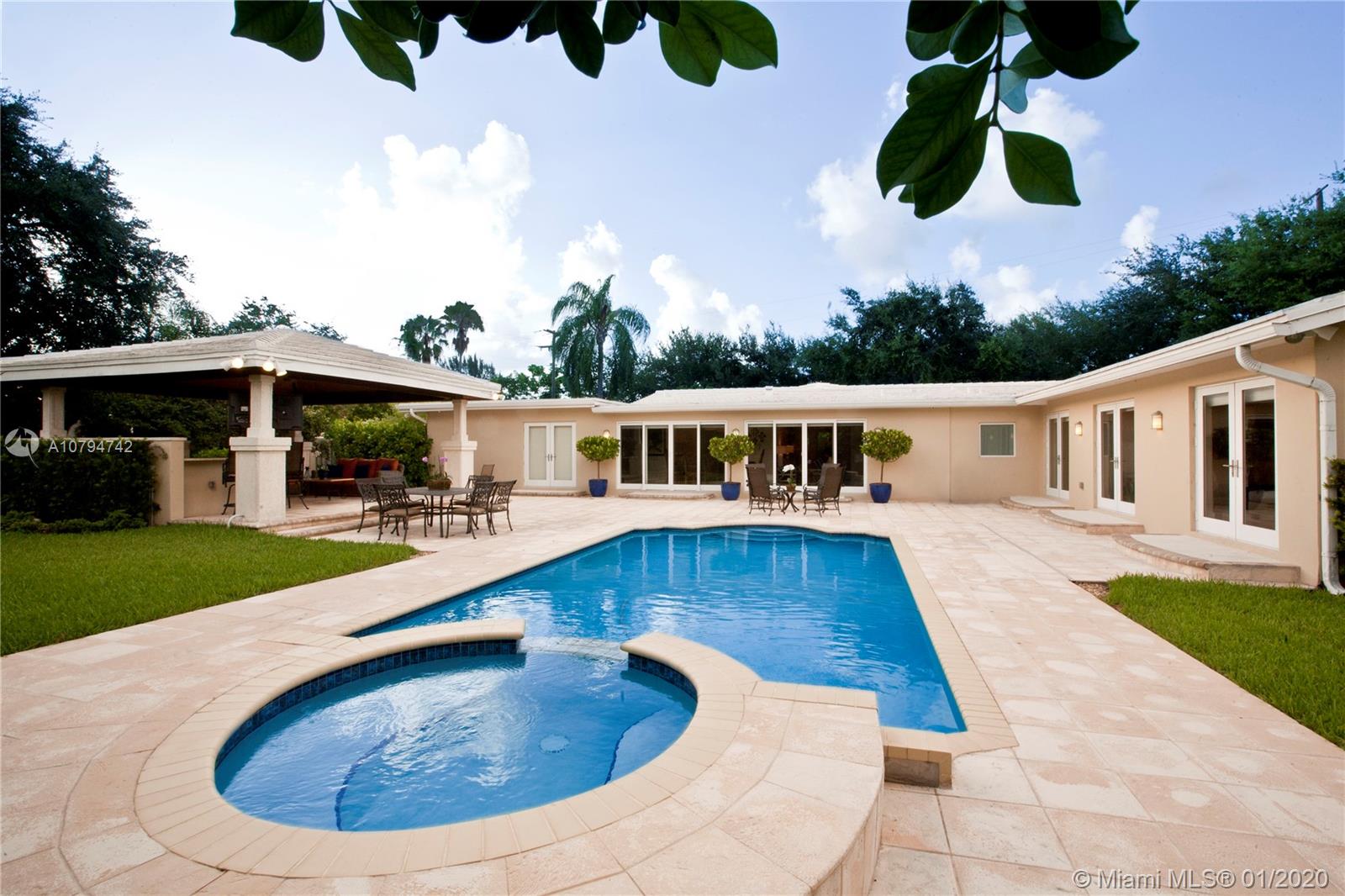 Immaculate and beautifully appointed half-acre home in Pinecrest. This lovely 4 bedroom 3 baths home offers 3723 sqft. of resort like living. The large kitchen is a chef's dream; two islands with top-quality cabinetry, high end appliances and finishes. Huge Master bedroom with its own sitting room overlooking the sparkling blue pool, Jacuzzi and gazebo. This home was fully renovated and updated with impact windows and doors. Beautiful marble floors throughout and hardwood cabinetry in all bathrooms.